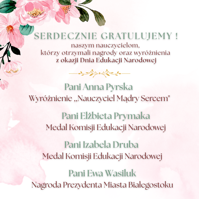 Wszystkim pracownikom przedszkola życzymy wielu radosnych chwil w pracy i satysfakcji z codziennych osiągnięć. Niech każde dziecko chętnie przychodzi do przedszkola, z radością odkrywa nowe rzeczy, a jego uśmiech niech zawsze rozgrzewa Wasze serca i dodaje Wam sił do dalszej pracy. 💛