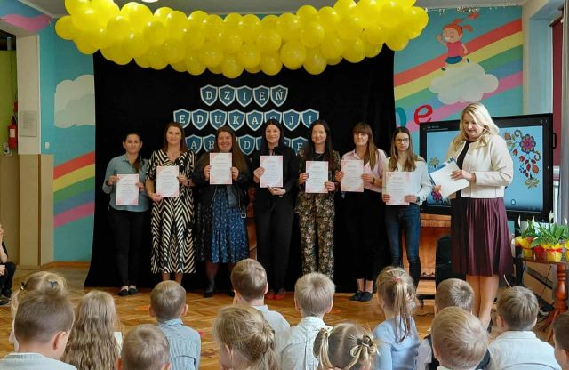 Każdy z pracowników przedszkola otrzymał pamiątkową różę jako symbol wdzięczności i uznania za codzienny trud i zaangażowanie w pracę z dziećmi. Pani dyrektor podziękowała wszystkim za ich pracę i oddanie, a zasłużonym pracownikom wręczyła dyplomy. Byli pracownicy otrzymali drobne upominki w postaci kwiatów jako wyraz pamięci i szacunku.