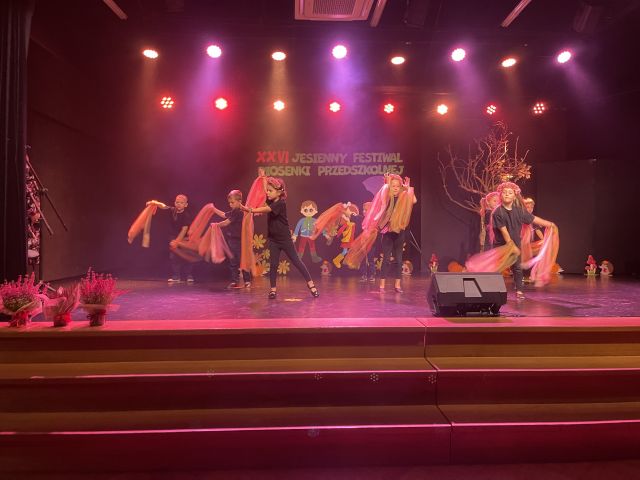W dniu 23 października 2025 r. w Domu Kultury przy ul. Warszawskiej w Białymstoku odbył się XXVI Festiwal Piosenki Jesiennej, organizowany przez nasze przedszkole. W wydarzeniu wzięły udział dzieci z białostockich przedszkoli – zarówno soliści, jak i zespoły. Łącznie zaprezentowało się 32 uczestników, którzy przygotowali różnorodne utwory o tematyce jesiennej.