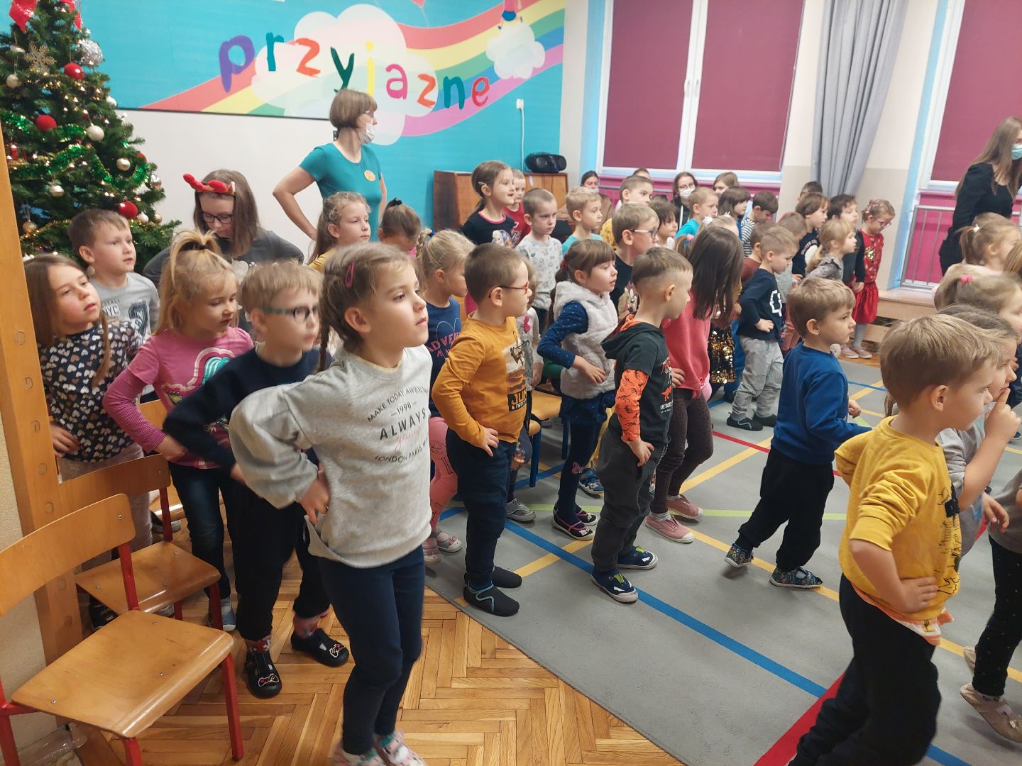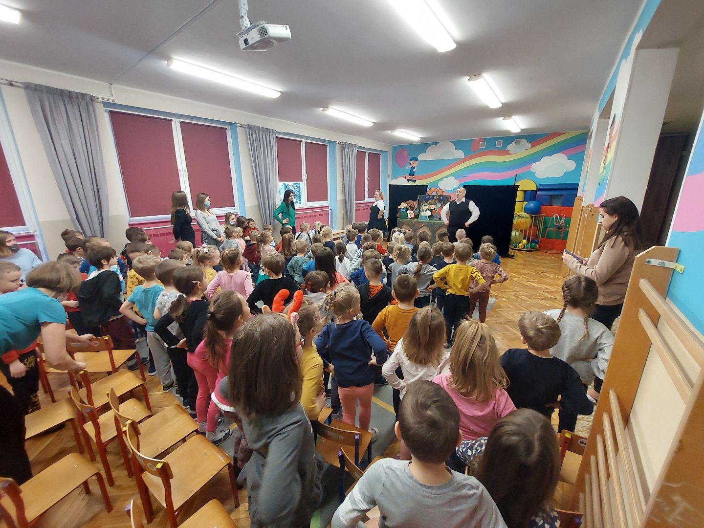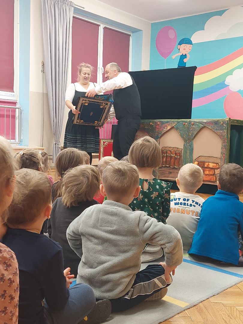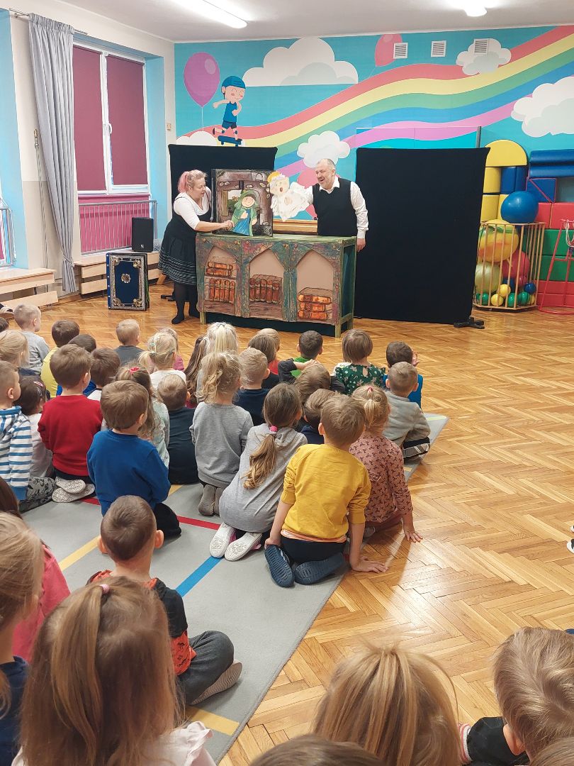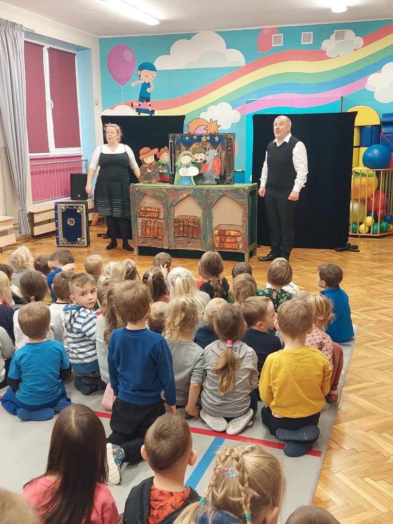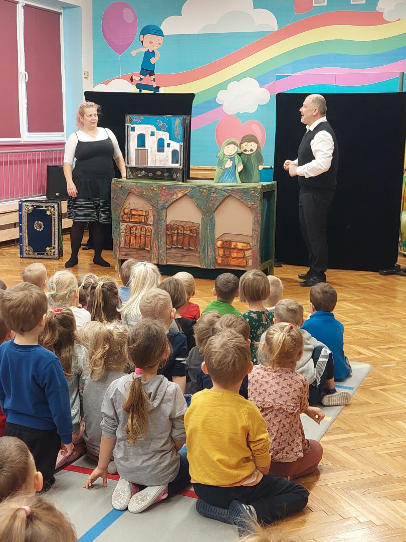 Przedstawienie aktorów, które wprowadziło dzieci w świąteczny nastrój.