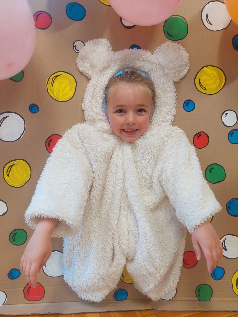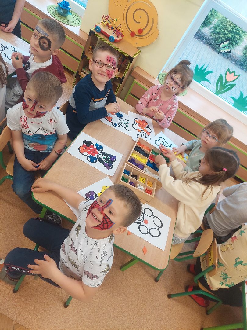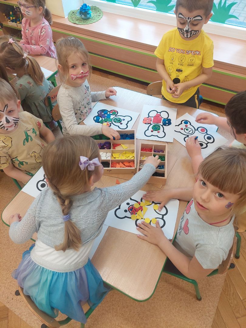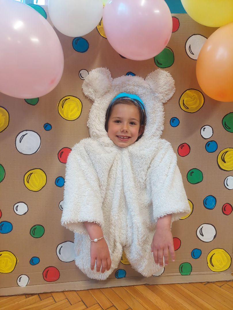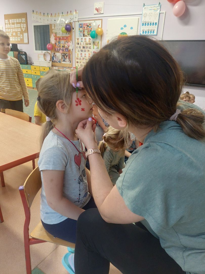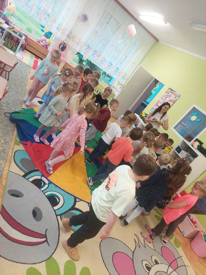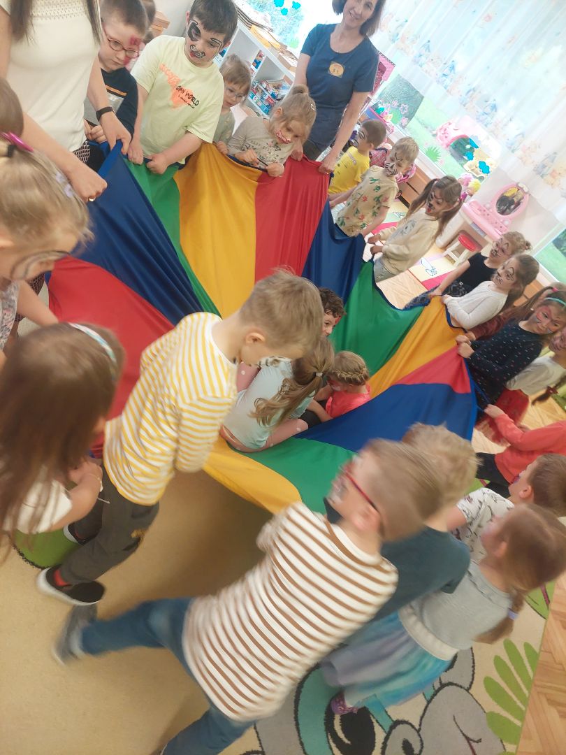 Dzień 1. Dzieci odwiedziła straż miejska z psem. Dzieci dowiedziały się jak należy zachować się w obecności psa oraz oglądały pokaż psich komend. Kolejna atrakcją były zabawy zorganizowane w przedszkolu: dyskoteka, dmuchaniec, trampolina, fotobudka, zabawy z chusta animacyjna i Darami Froebla, malowanie twarzy oraz konkurencję sportowe.