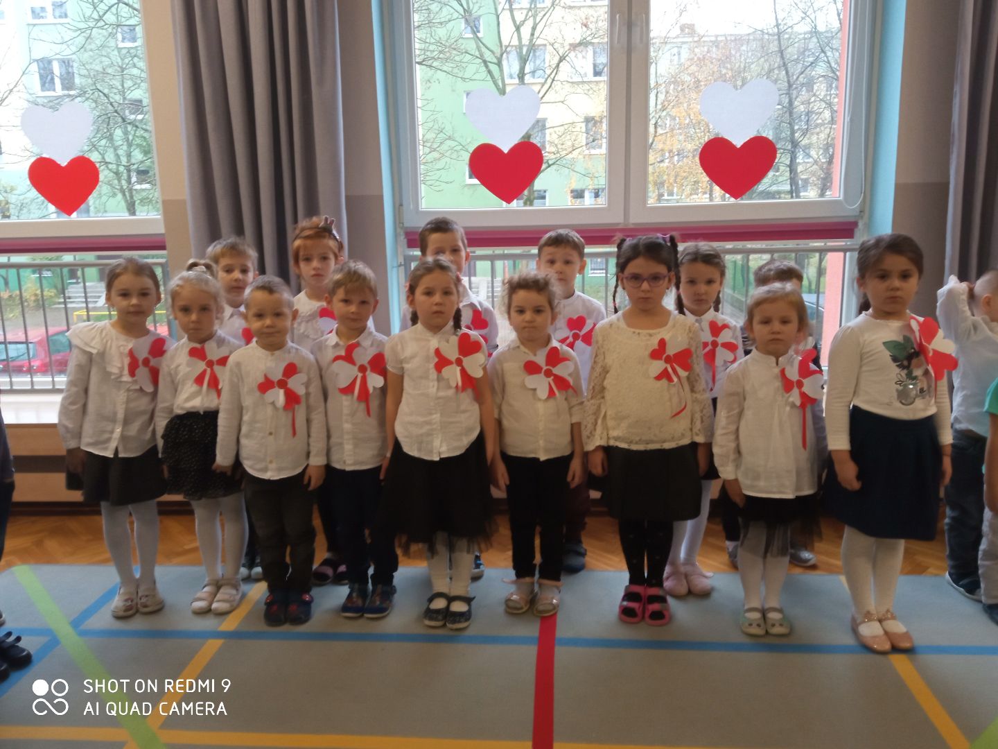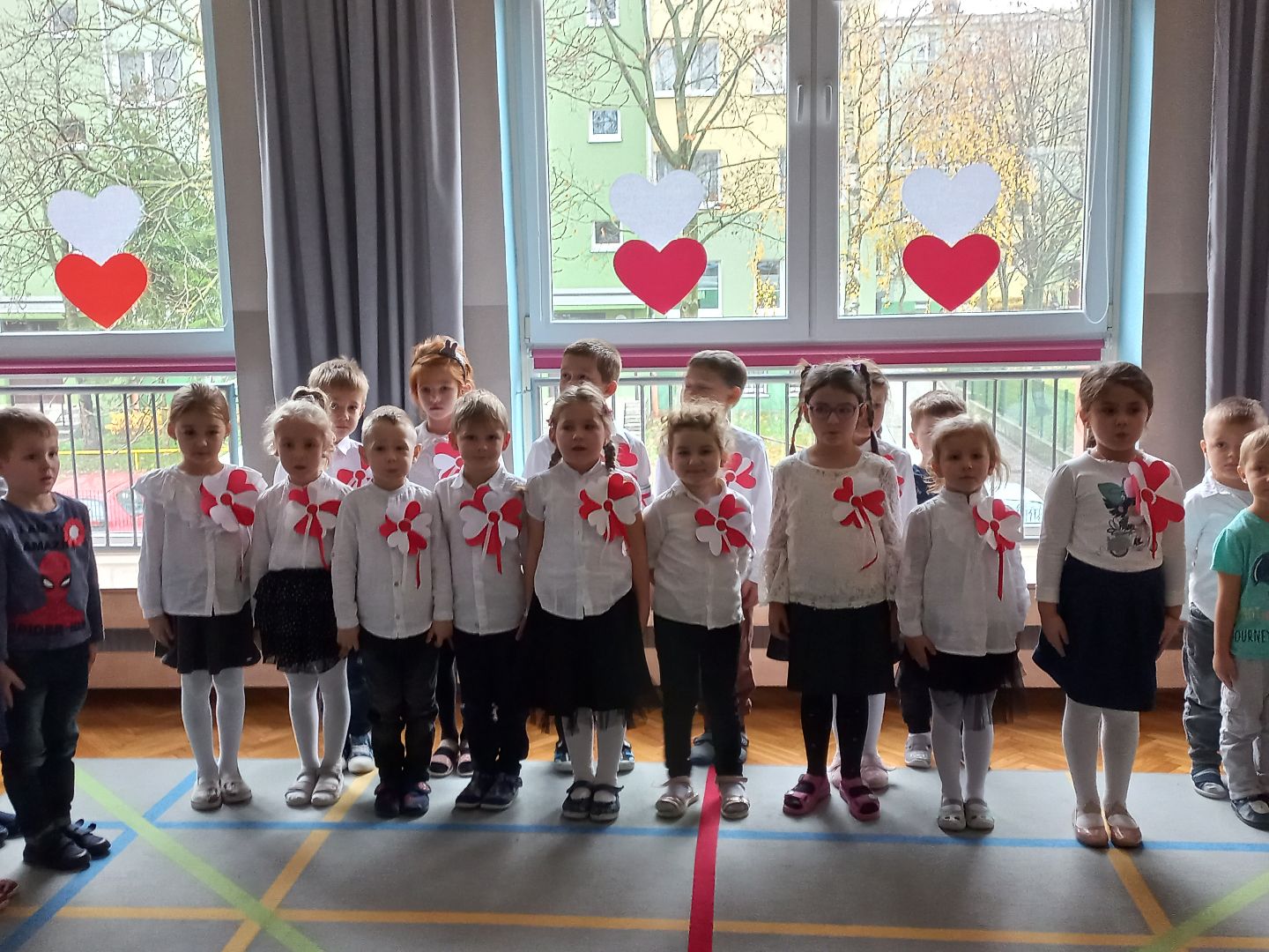 O godzinie 11: 11 dzieci z dumą odśpiewały Hymn Polski.