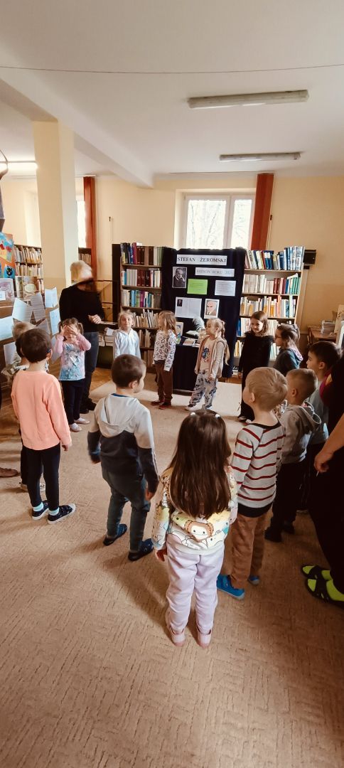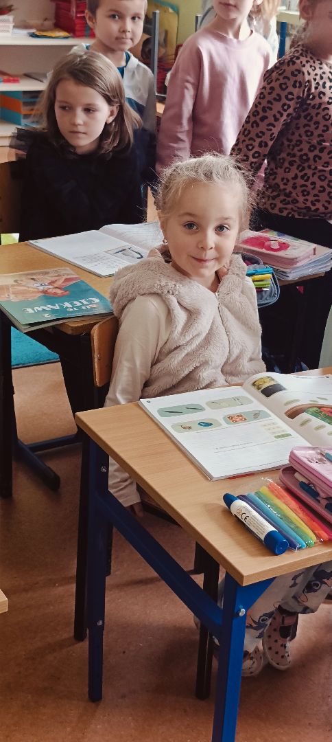 Odwiedziliśmy dzisiaj bibliotekę w sąsiadującej z naszym przedszkolem Szkole Podstawowej nr 2. Wysłuchaliśmy opowiadania o Stunóżce i mogliśmy zobaczyć jak wyglądają szkolne klasy. Okazuje się że są kolorowe, krzesła bardzo wygodne, a starsi koledzy gotowi do pomocy.