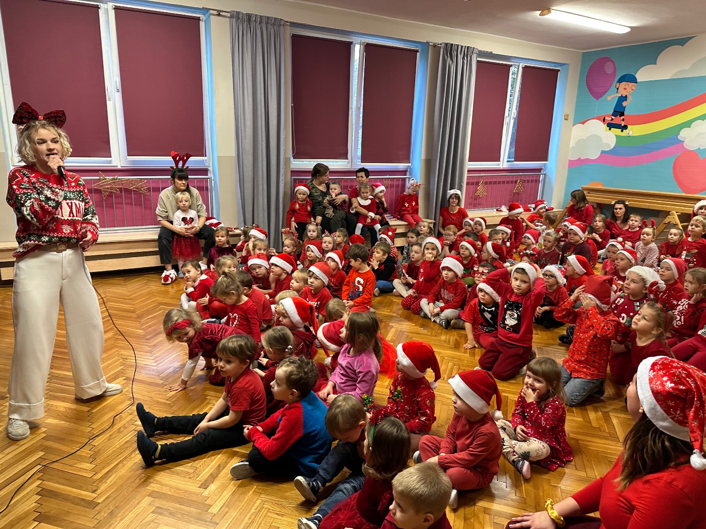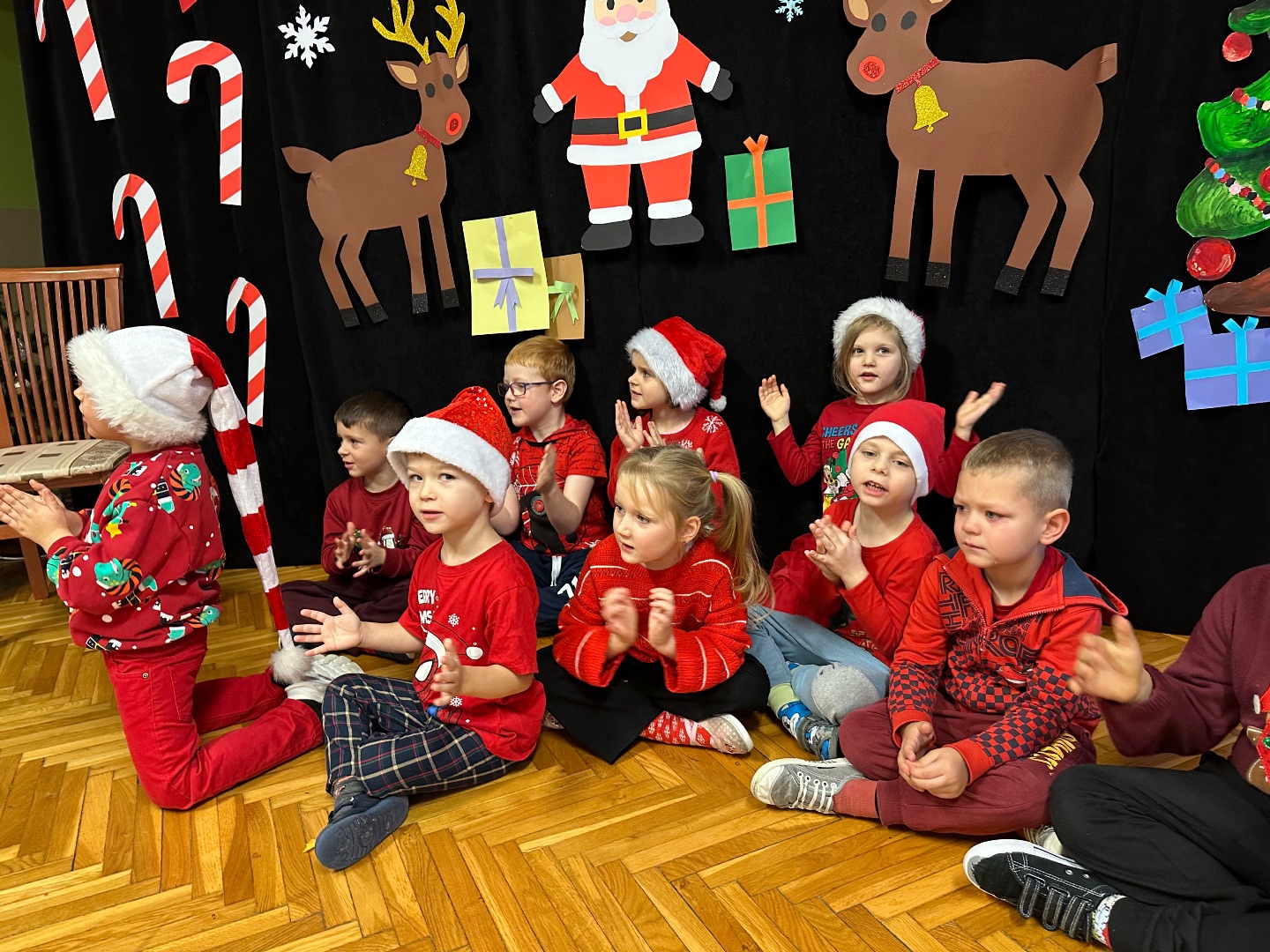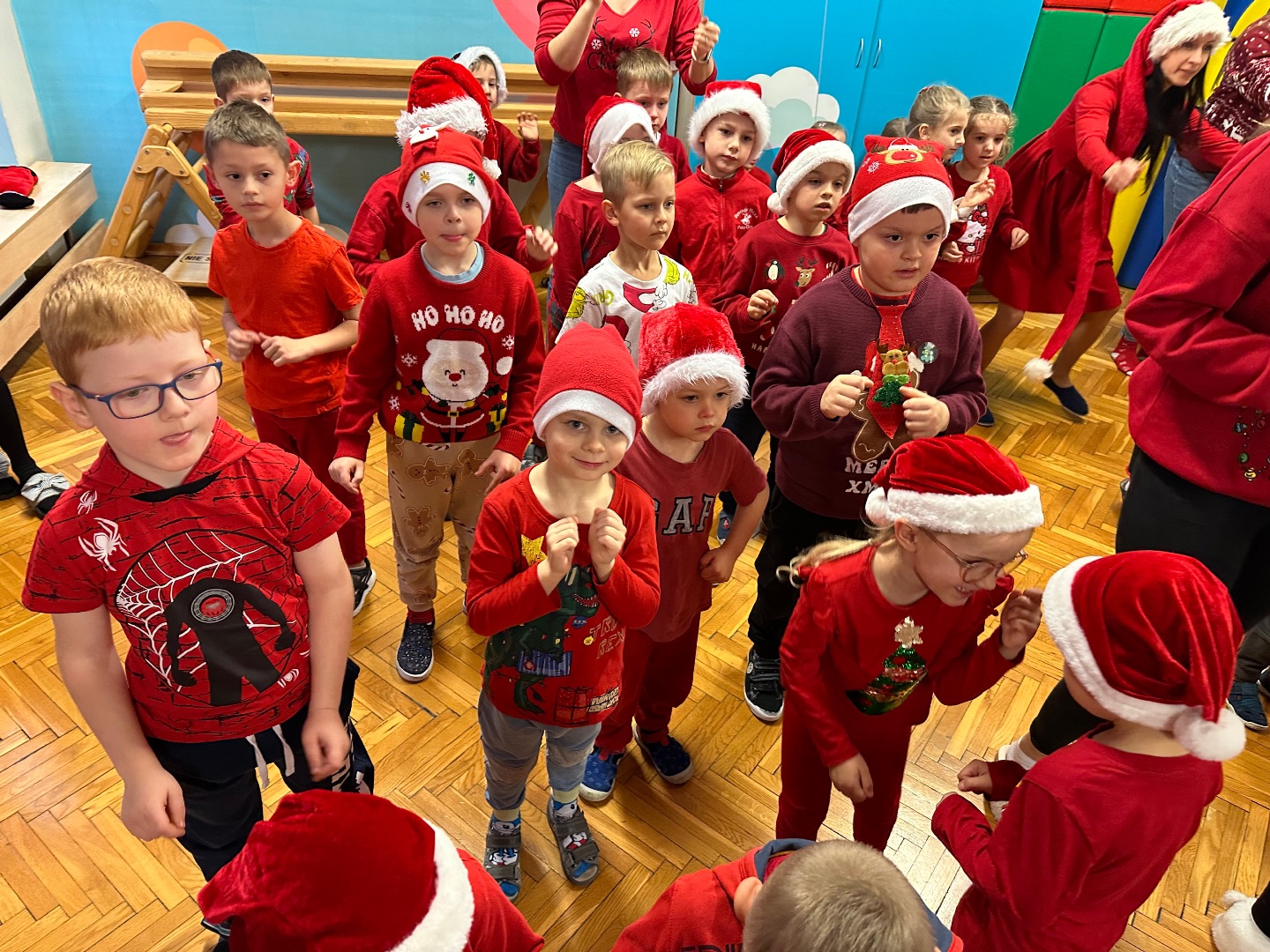 Największe emocje wywołała wizyta Świętego Mikołaja – dzieci przywitały go okrzykami radości, a Mikołaj oświadczył, że takiego sprintu w stronę prezentów nie widział nawet na Biegunie Północnym.