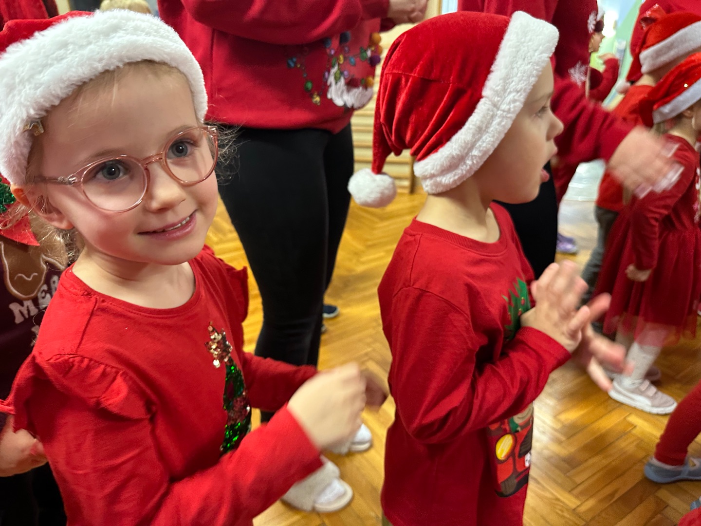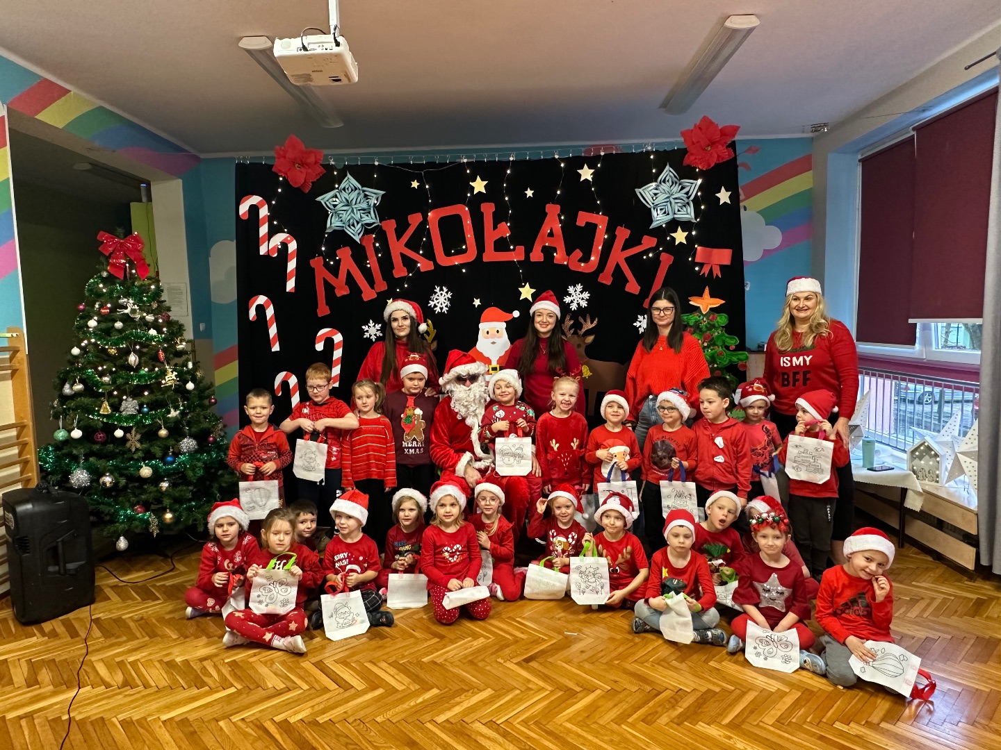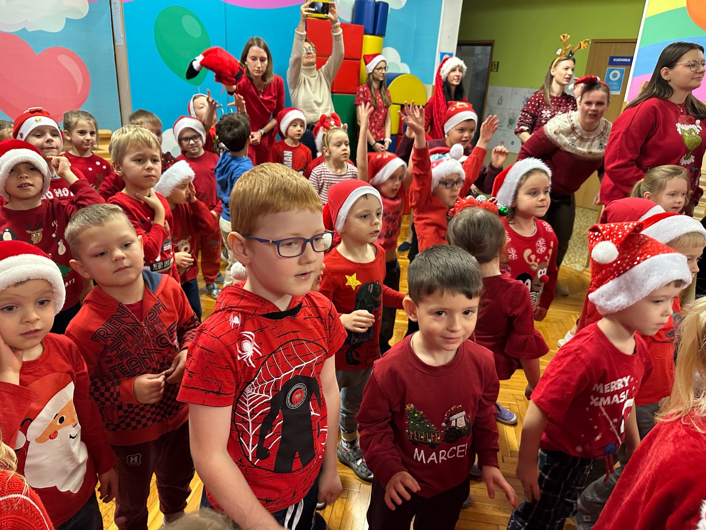 Największe emocje wywołała wizyta Świętego Mikołaja – dzieci przywitały go okrzykami radości, a Mikołaj oświadczył, że takiego sprintu w stronę prezentów nie widział nawet na Biegunie Północnym.