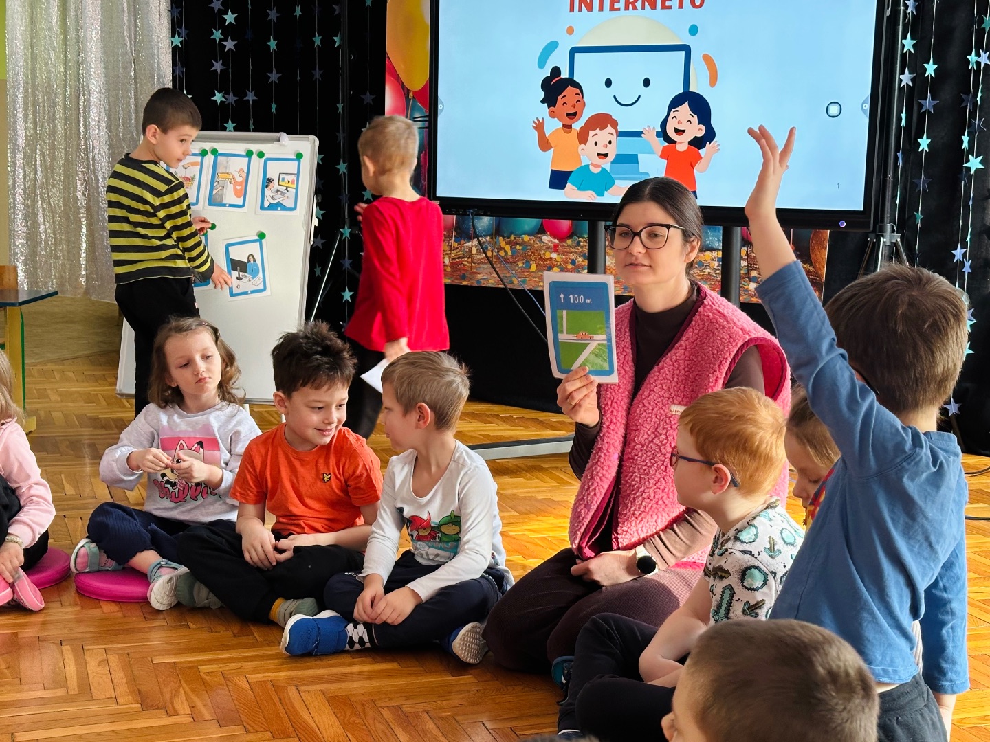 W naszym przedszkolu obchodziliśmy Dzień Bezpiecznego Internetu, aby już od najmłodszych lat uczyć dzieci, jak mądrze i bezpiecznie korzystać z urządzeń elektronicznych. Podczas zajęć rozmawialiśmy o tym, czym jest Internet, do czego służy oraz jakie niesie korzyści i zagrożenia.