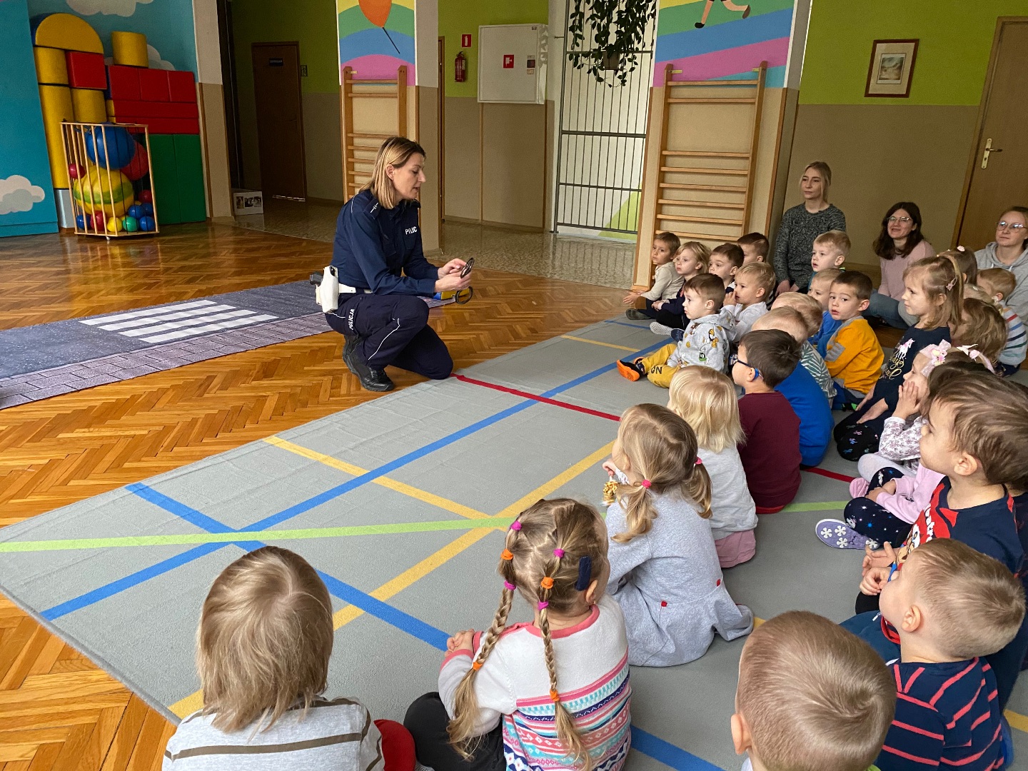 W ramach tygodniowego tematu o bezpieczeństwie odwiedziła nas Pani Policjantka. Rozmawialiśmy na temat konieczności przestrzegania przepisów ruchu drogowego i bezpiecznego przechodzenia przez drogę. Funkcjonariuszka pokazał nam swoje wyposażenie i umundurowanie, które jest niezbędne podczas wykonywania służby. Na koniec wszystkie przedszkolaki otrzymały pamiątkowe kolorowanki.