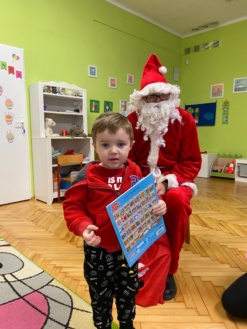 6 grudnia obchodziliśmy w naszym przedszkolu mikołajki, z tej okazji wzięliśmy udział w audycji muzycznej pt. „Świąteczne bajanie i kolęd śpiewanie” podczas, której wysłuchaliśmy kolęd z różnych krajów. Po skończonej audycji czekała na nas niespodzianka w sali - Święty Mikołaj z workiem prezentów.
