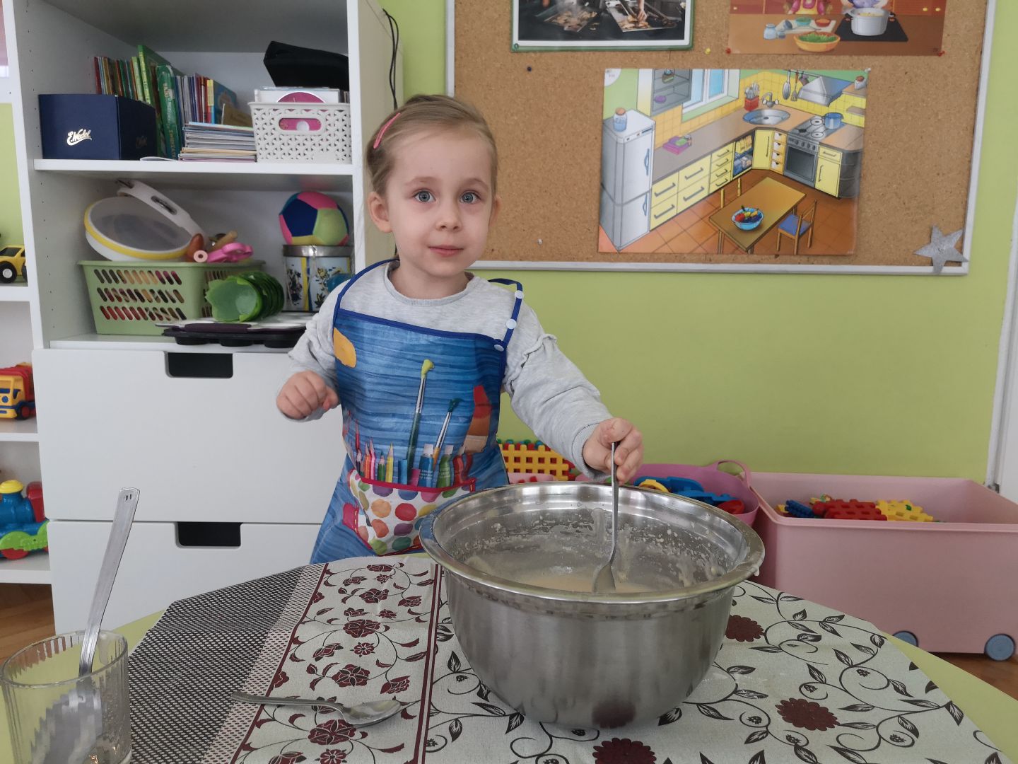 Po wizycie w przedszkolnej kuchni i my postanowiliśmy zmienić się w kucharzy. Wspólnie upiekliśmy muffinki. Były pyszne!