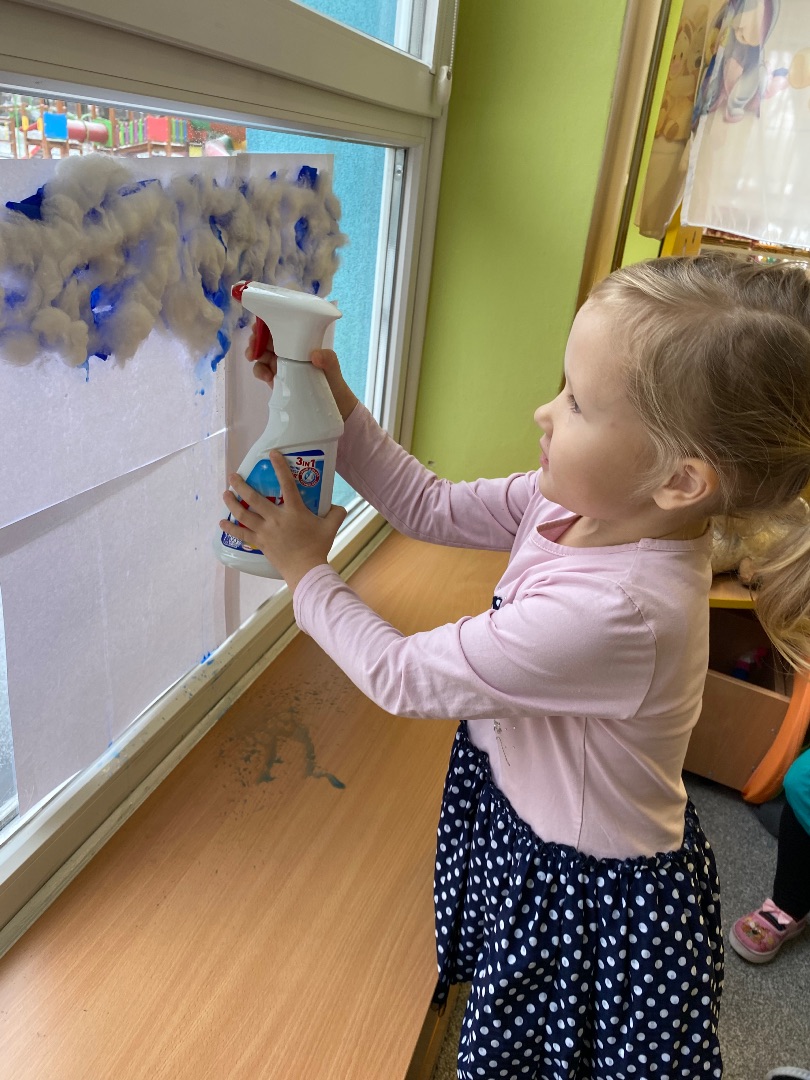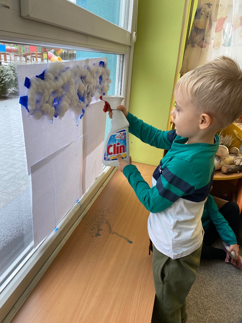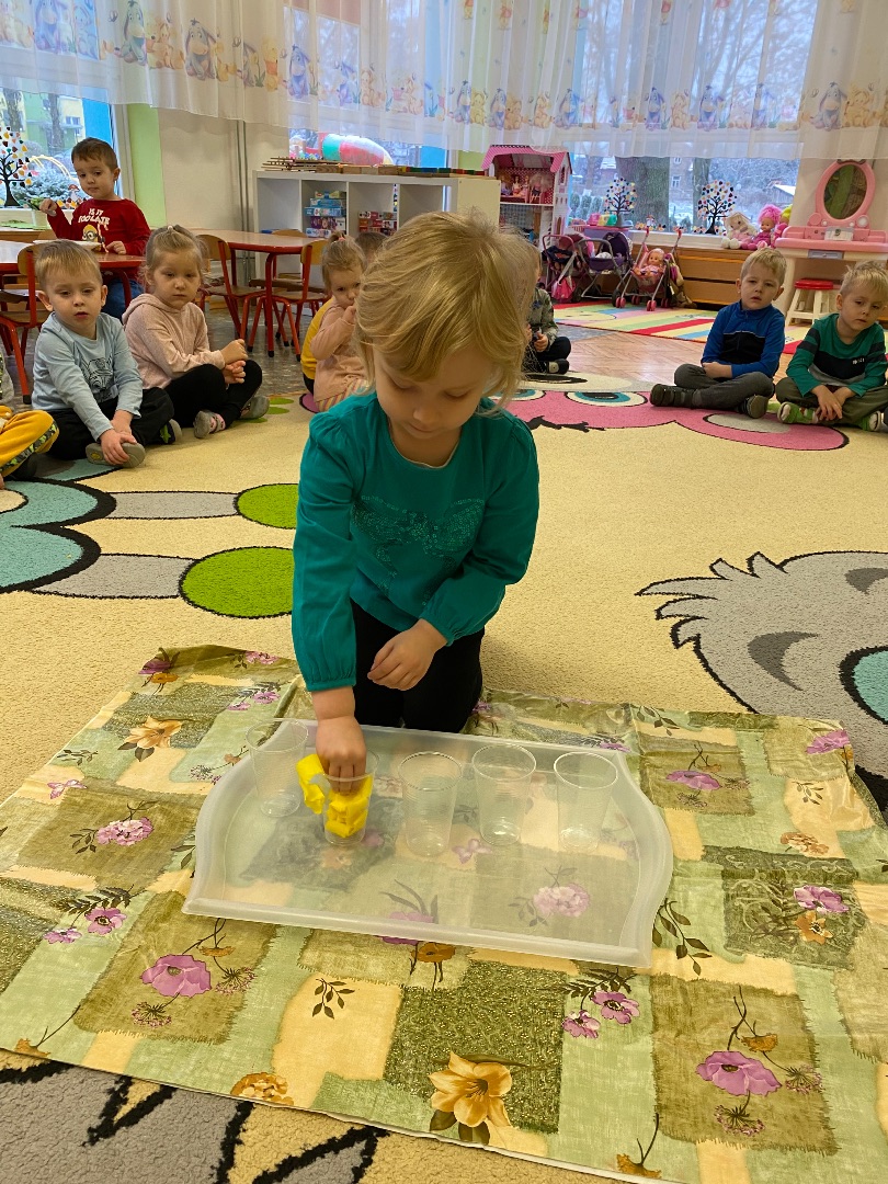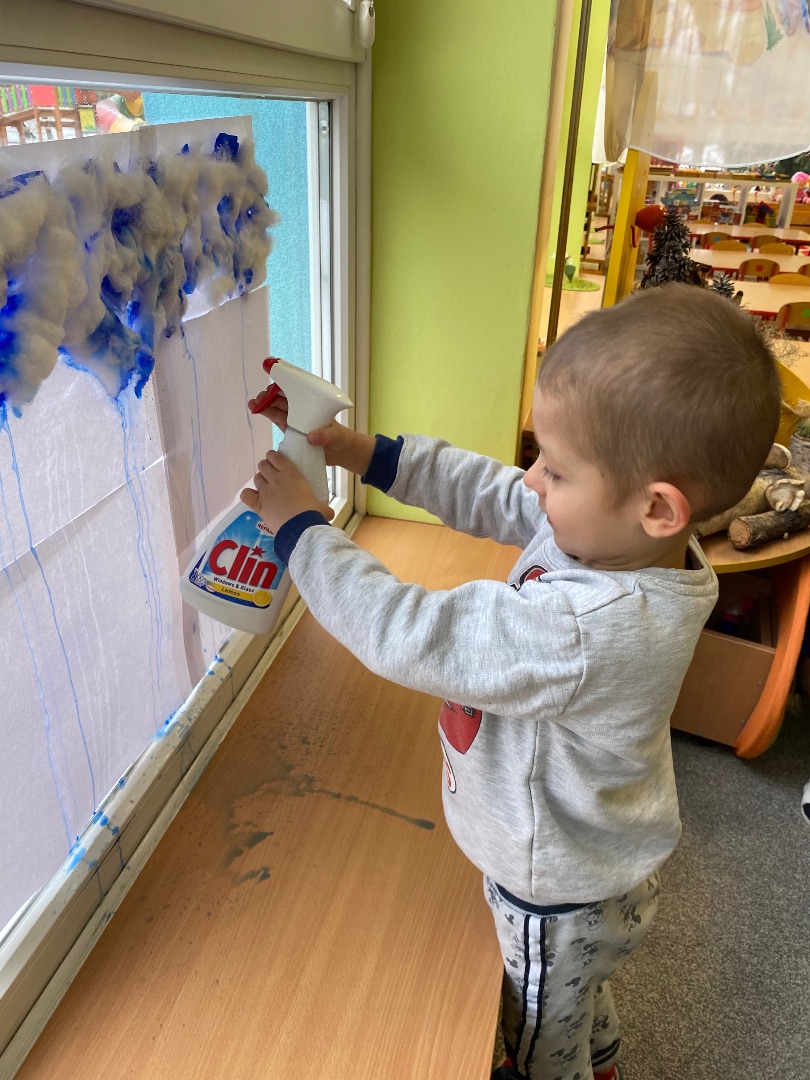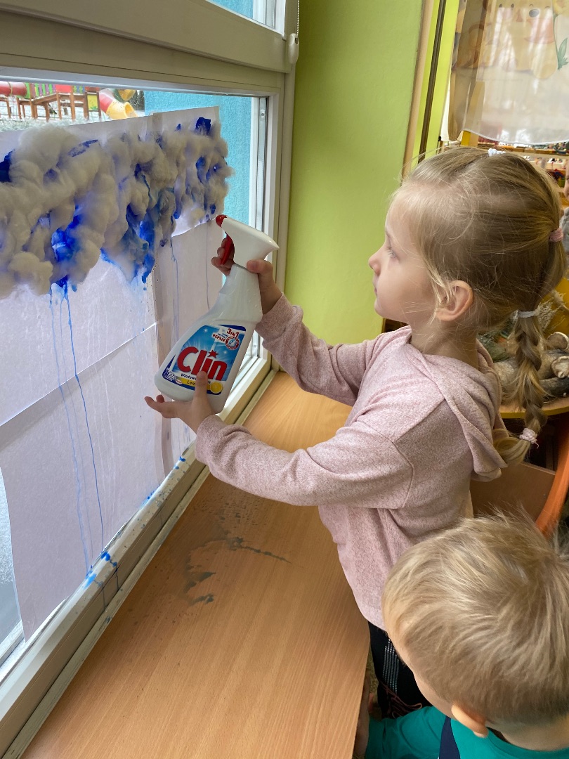 Misie w tym dniu zamieniły się w małych badaczy. Wspólnie wykonaliśmy doświadczenie z wędrująca wodą w kubeczkach oraz z deszczową chmurką. Dzieci z radością i zainteresowaniem uczestniczyły w zajęciach.