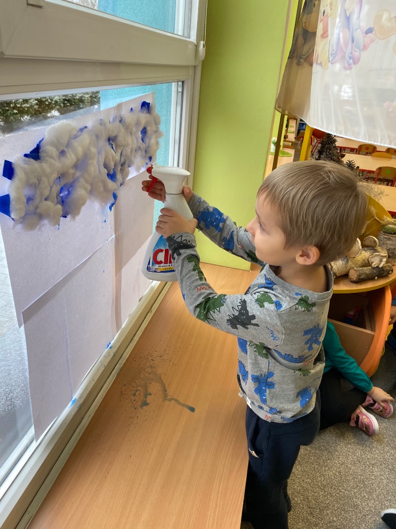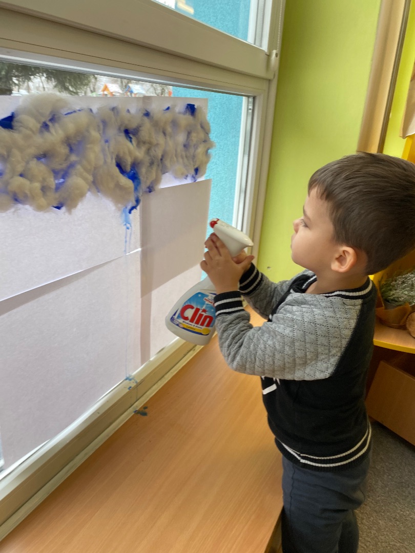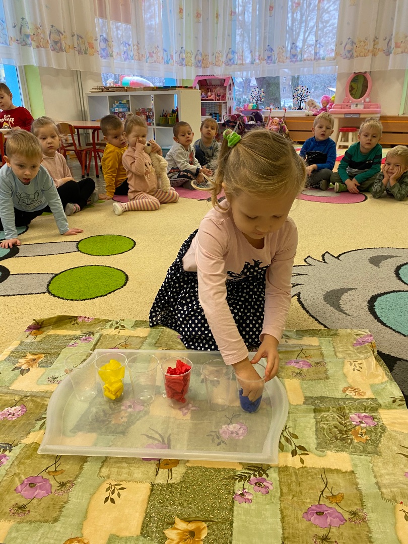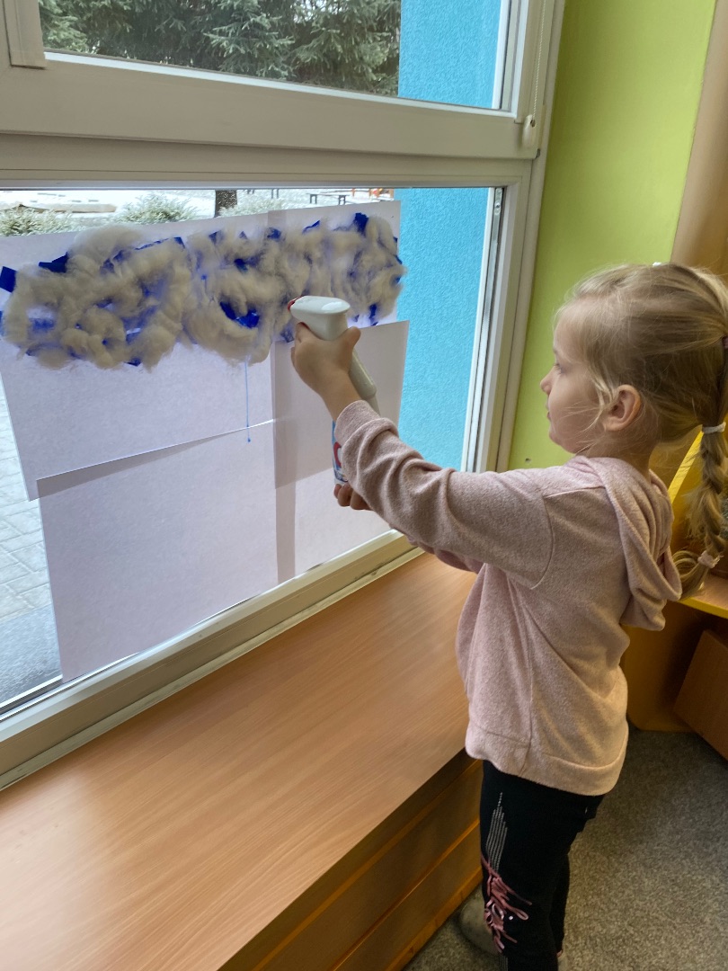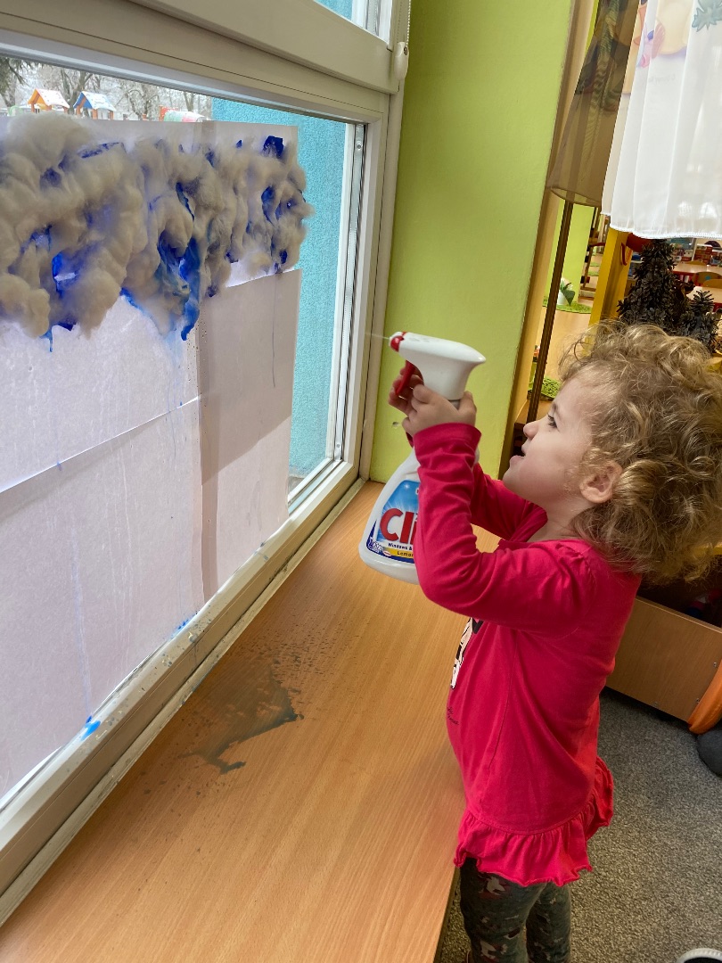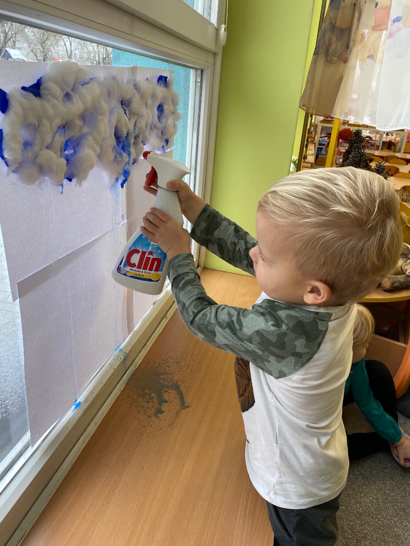 Misie w tym dniu zamieniły się w małych badaczy. Wspólnie wykonaliśmy doświadczenie z wędrująca wodą w kubeczkach oraz z deszczową chmurką. Dzieci z radością i zainteresowaniem uczestniczyły w zajęciach.