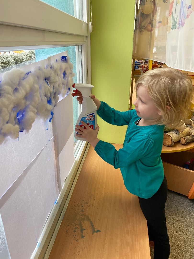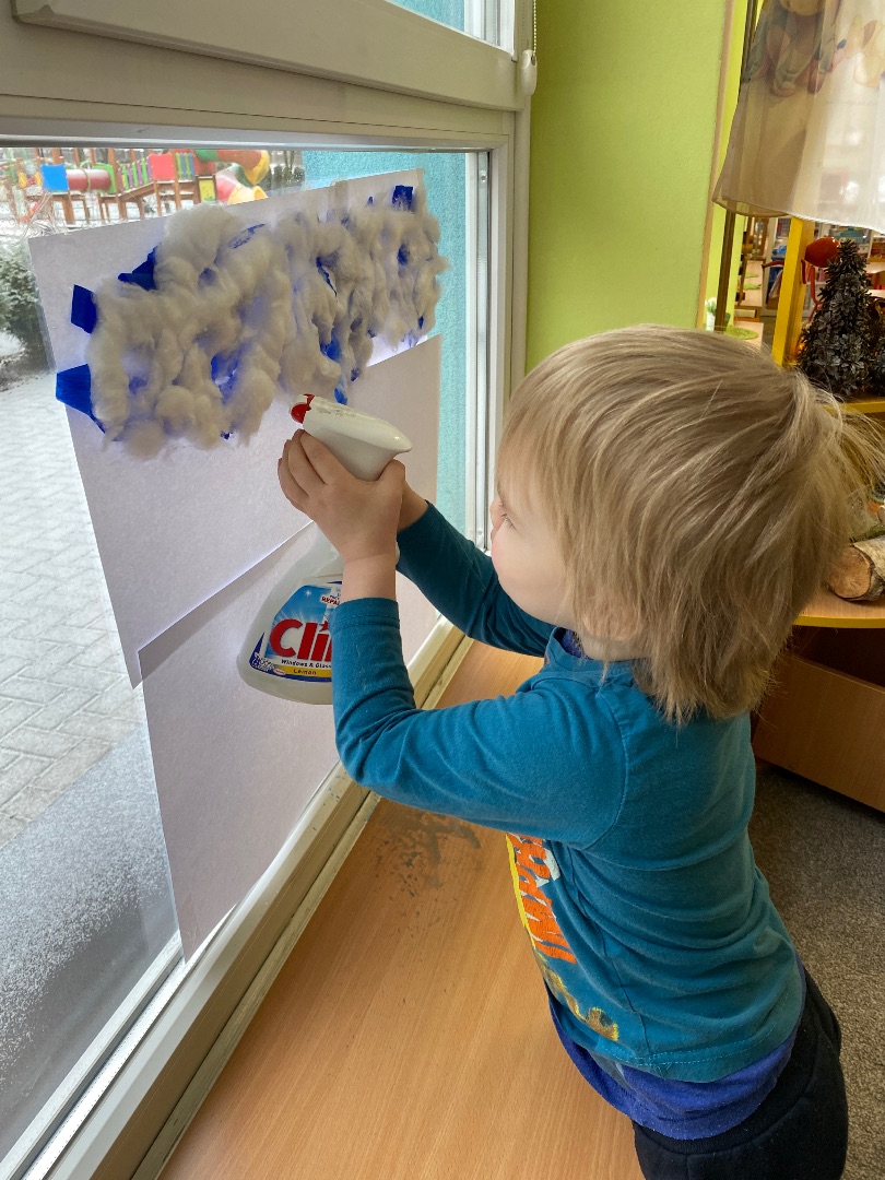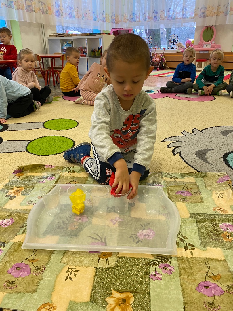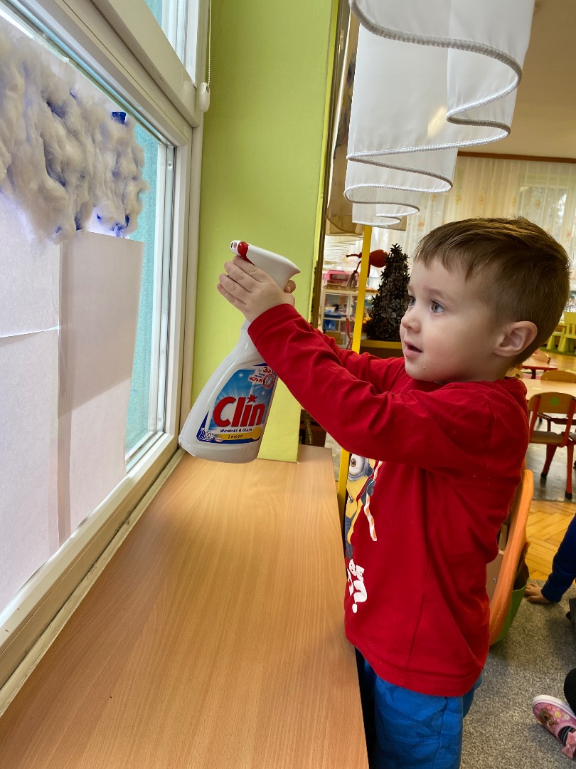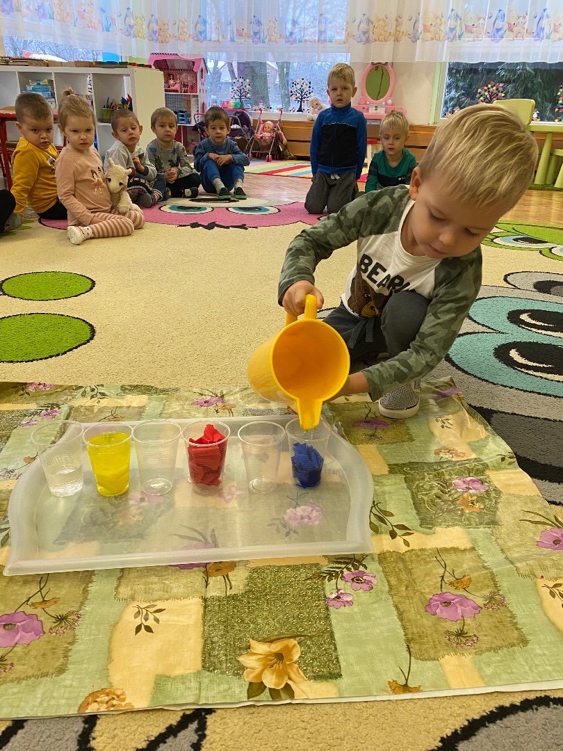 Misie w tym dniu zamieniły się w małych badaczy. Wspólnie wykonaliśmy doświadczenie z wędrująca wodą w kubeczkach oraz z deszczową chmurką. Dzieci z radością i zainteresowaniem uczestniczyły w zajęciach.