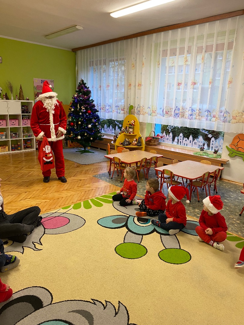 6 grudnia obchodziliśmy w naszym przedszkolu mikołajki, z tej okazji wzięliśmy udział w audycji muzycznej pt. "Świąteczne bajanie i kolęd śpiewanie" podczas, której wysłuchaliśmy kolęd z różnych krajów. Po skończonej audycji czekała na nas niespodzianka w sali - Święty Mikołaj z workiem prezentów.
