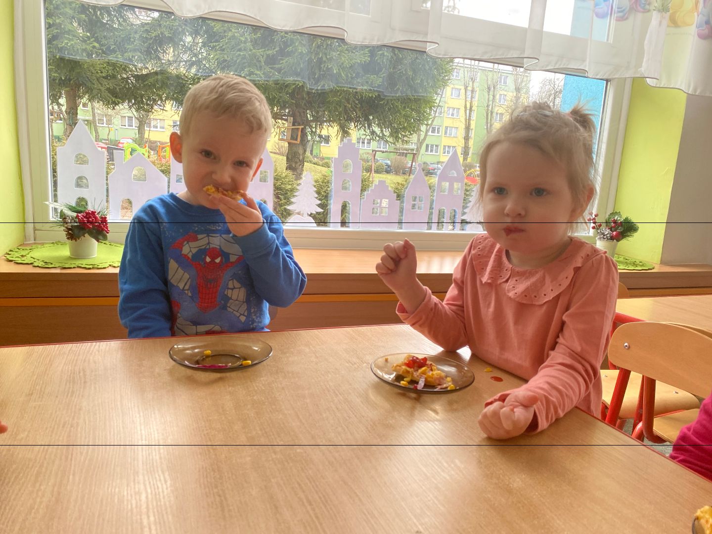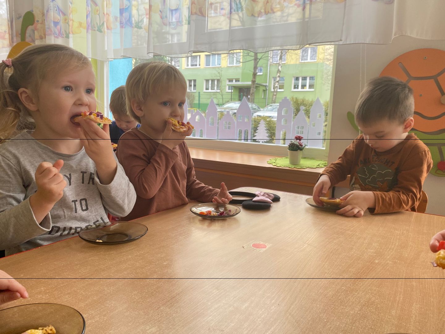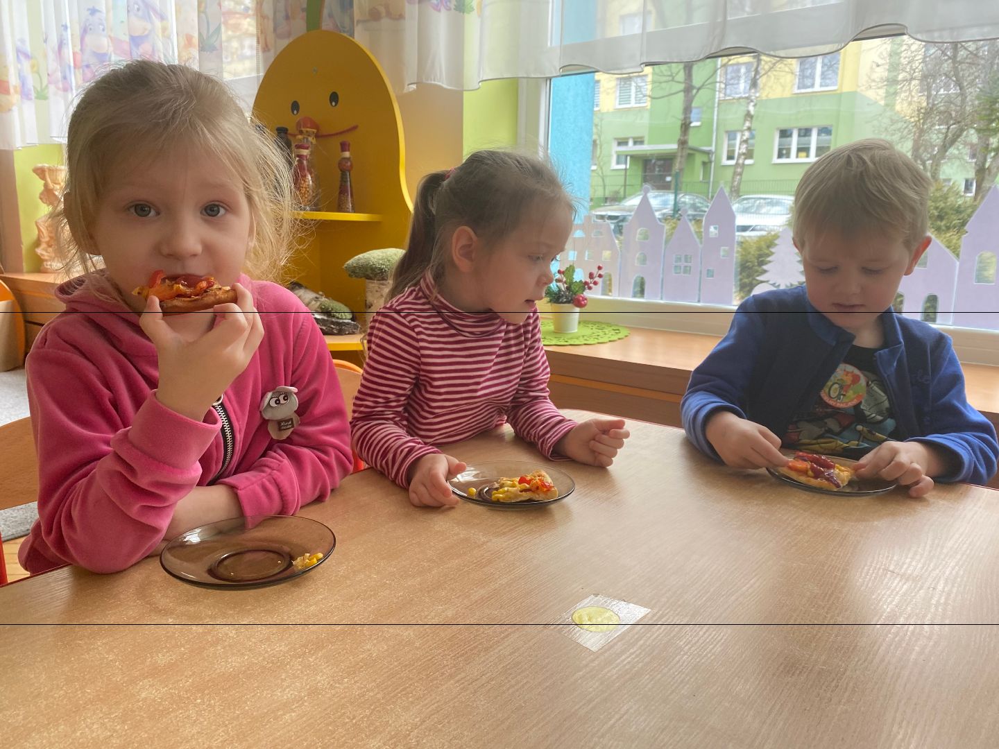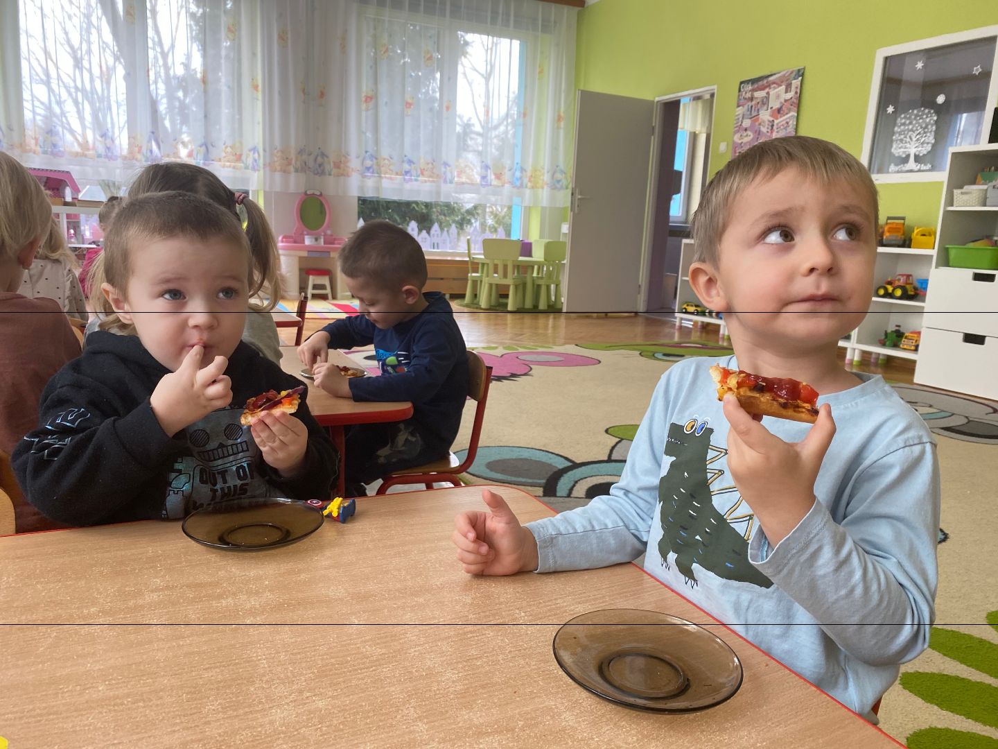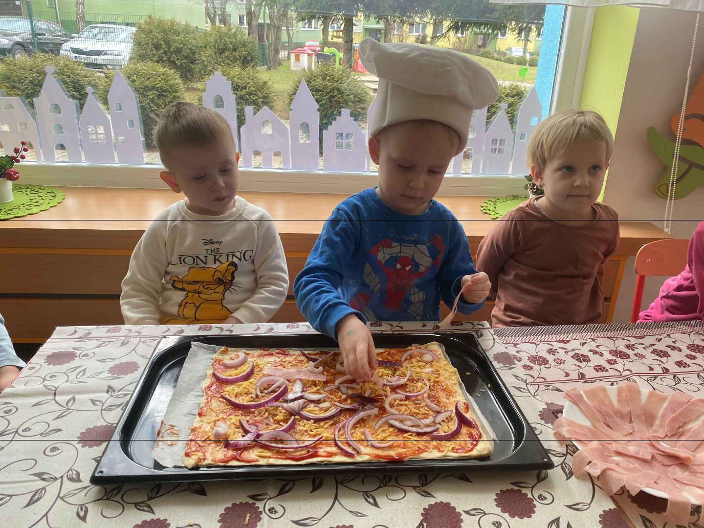 9 lutego obchodziliśmy Międzynarodowy Dzień Pizzy. Tego dnia nasza sala zamieniła się we włoską pizzerię. Przedszkolaki bawiąc się we włoskich kucharzy przygotowały prawdziwą pizzę. Wielką frajdę dzieciom sprawiły już same przygotowania: smarowanie sosem pomidorowym, nakładanie ulubionych składników i posypywanie serem. Gdy wszystko było już gotowe, pizza powędrowała do kuchni, aby się upiec. W trakcie czekania na pizze, wykonaliśmy prace plastyczną. Następnie dzieci z wielkim apetytem próbowały własnoręcznie przygotowanej pizzy. Wspólnie stwierdziliśmy, że własnoręcznie zrobiona pizza jest o wiele zdrowsza i smaczniejsza.