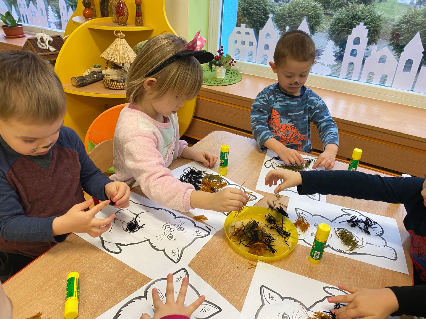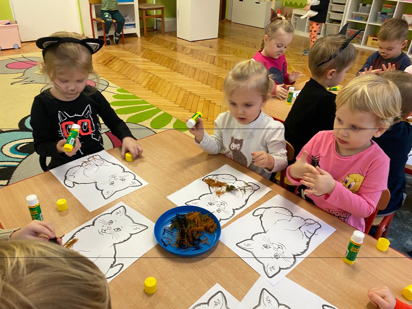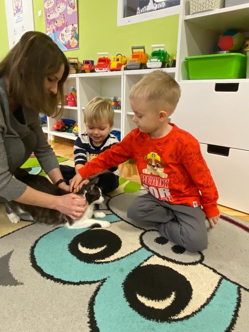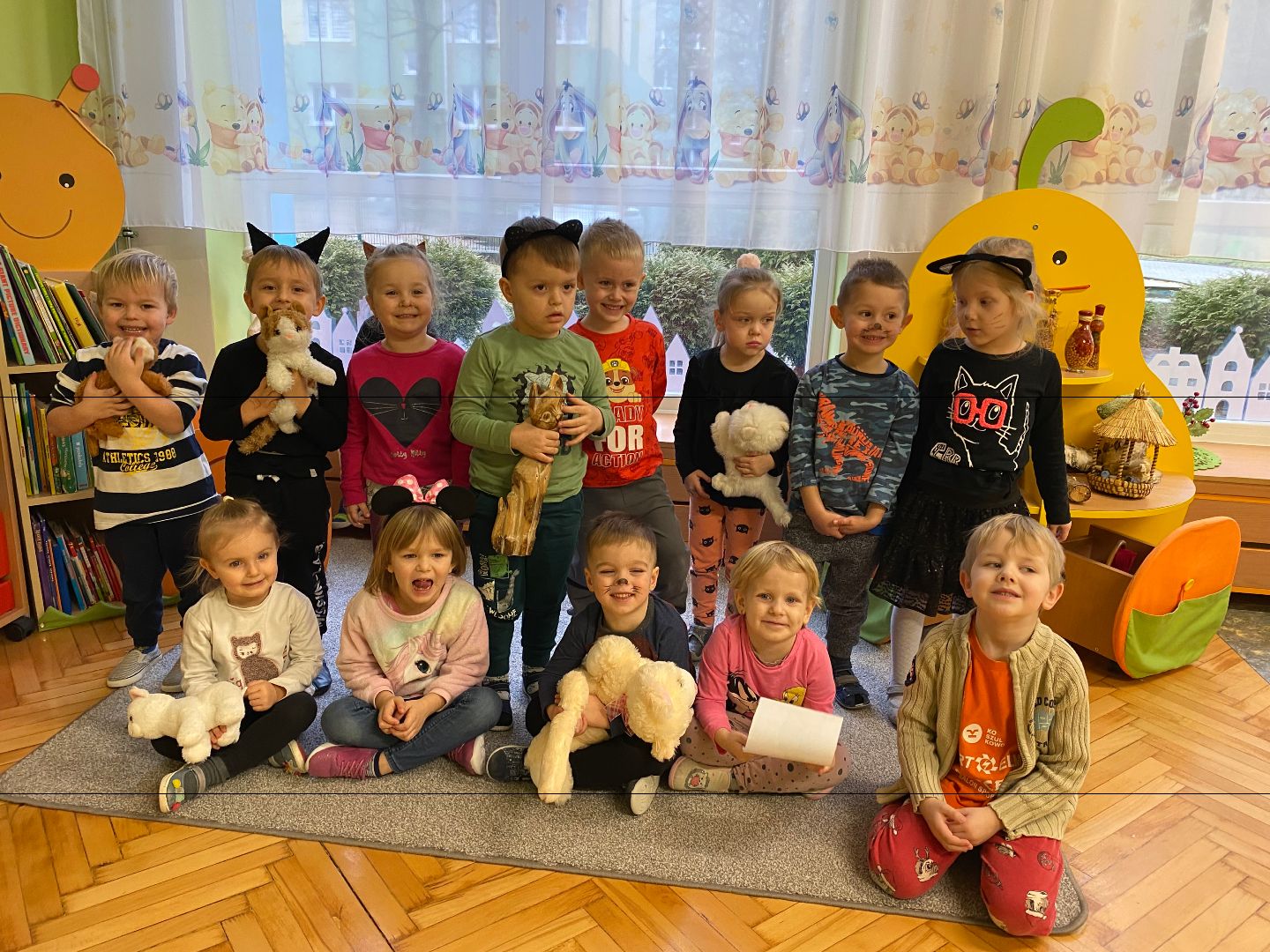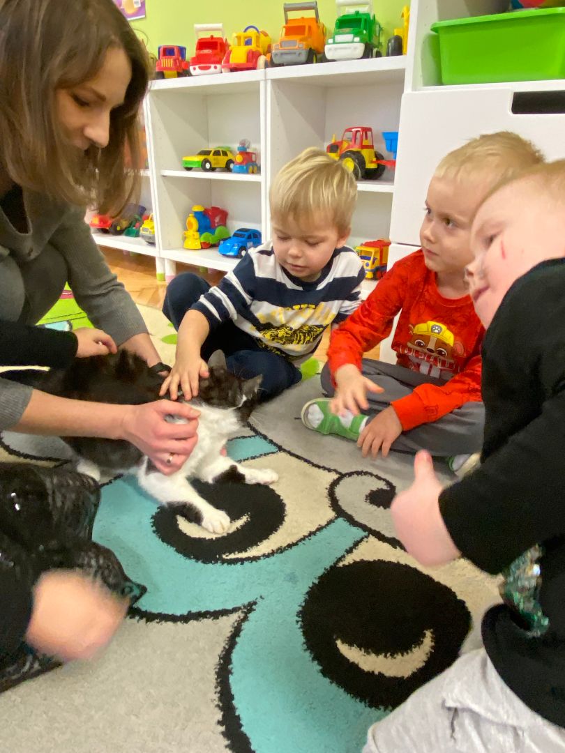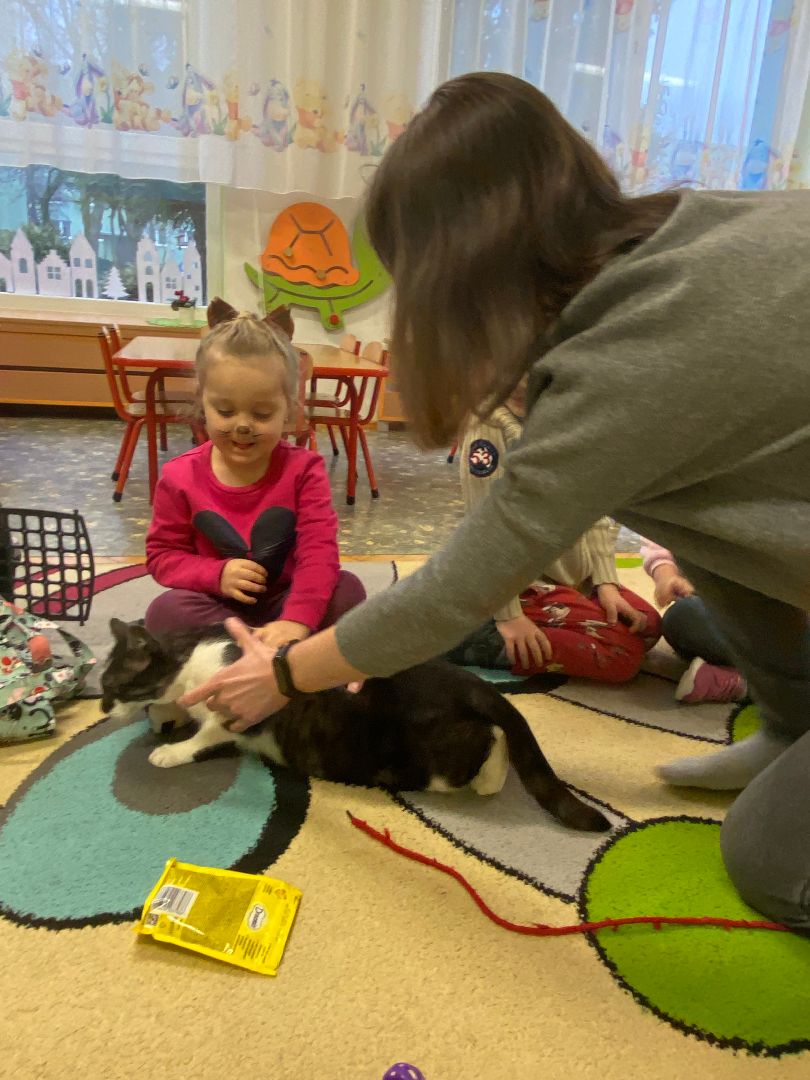 W tym dniu misie upodobniły się do swoich czworonożnych przyjaciół, zakładając przygotowane wcześniej kocie rekwizyty. Były też wesołe „kocie zabawy”, takie jak: kto szybciej wypije mleko, zabawy z włóczką, rozwiązywanie zagadek,śpiewanie kocich piosenek i wykonywanie pracy plastycznej. Największa atrakcją była wizyta kota Gustawa. Był to najprzyjemniejszy moment dla dzieci, ponieważ mogły kotka pogłaskać, podać mu smakołyk. Dziękujemy Mamie Oli za umożliwienie dzieciom spotkania z kotkiem.