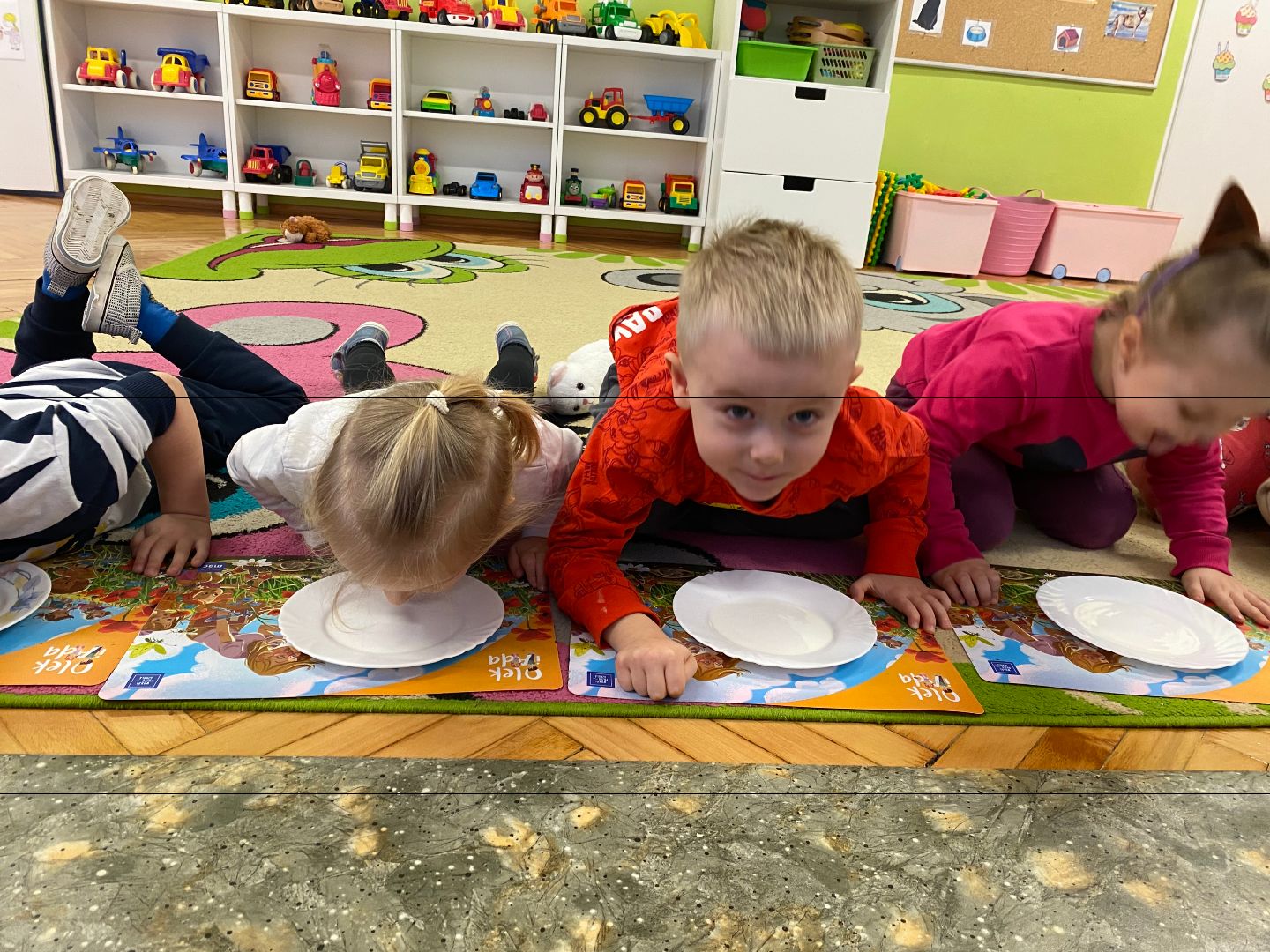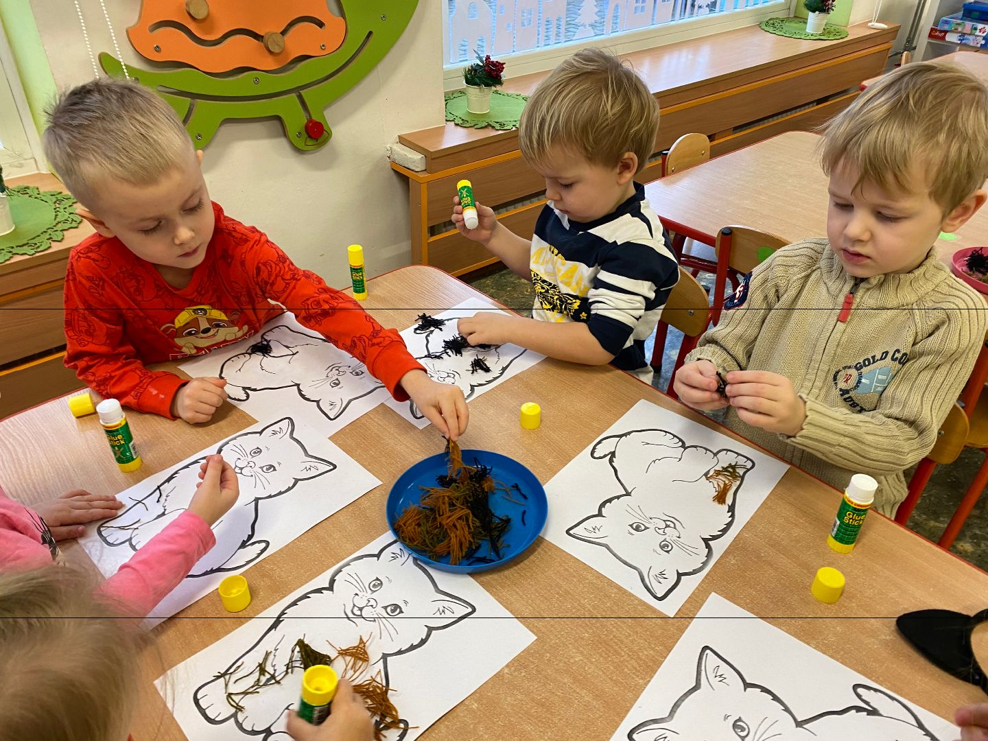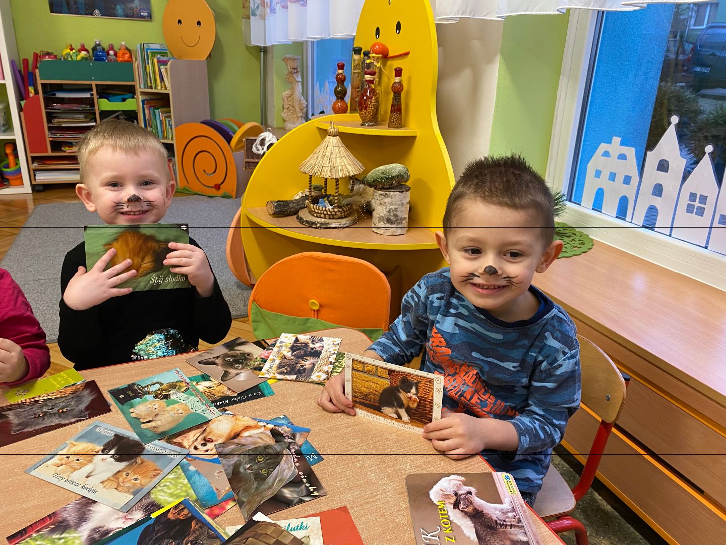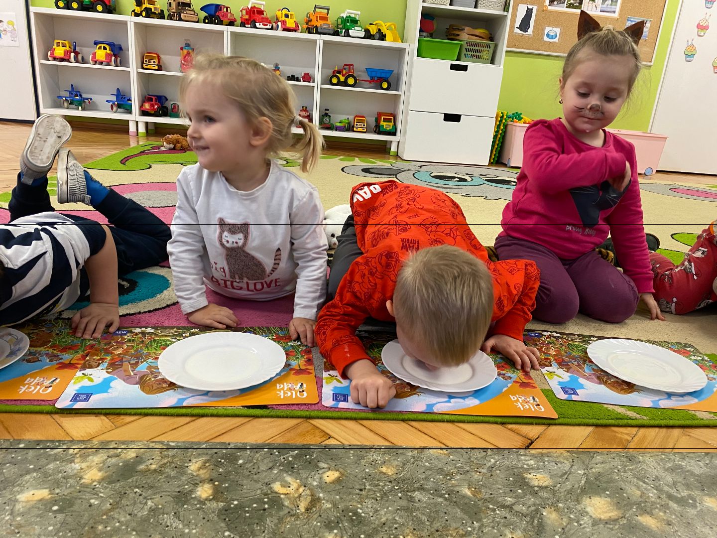 W tym dniu misie upodobniły się do swoich czworonożnych przyjaciół, zakładając przygotowane wcześniej kocie rekwizyty. Były też wesołe „kocie zabawy”, takie jak: kto szybciej wypije mleko, zabawy z włóczką, rozwiązywanie zagadek,śpiewanie kocich piosenek i wykonywanie pracy plastycznej. Największa atrakcją była wizyta kota Gustawa. Był to najprzyjemniejszy moment dla dzieci, ponieważ mogły kotka pogłaskać, podać mu smakołyk. Dziękujemy Mamie Oli za umożliwienie dzieciom spotkania z kotkiem.