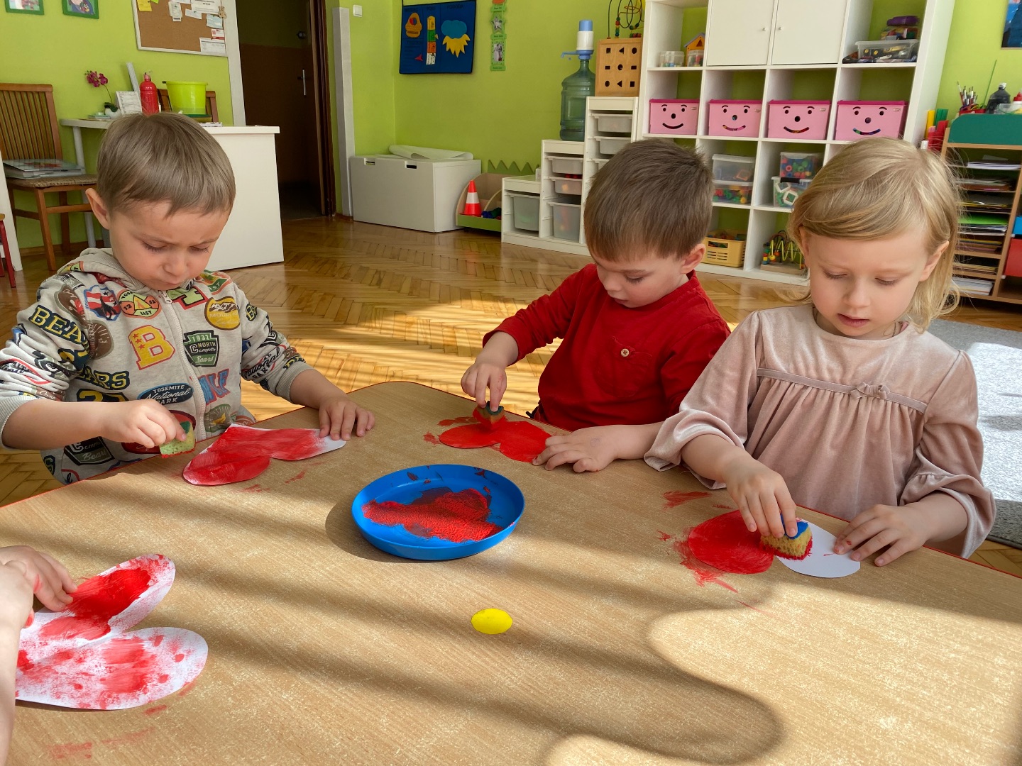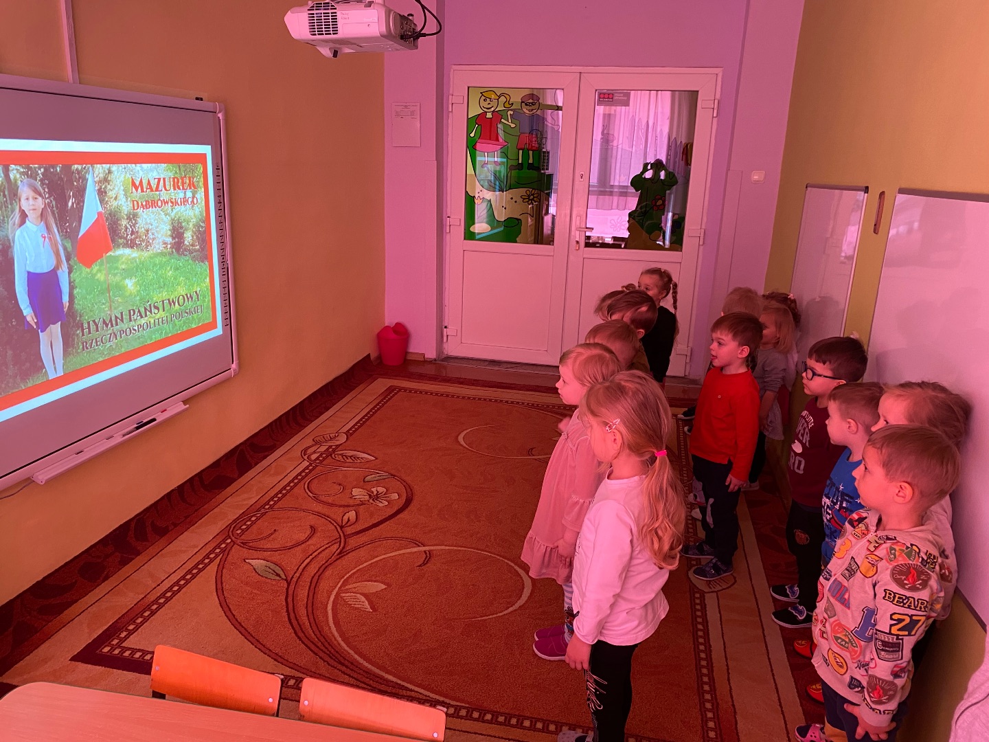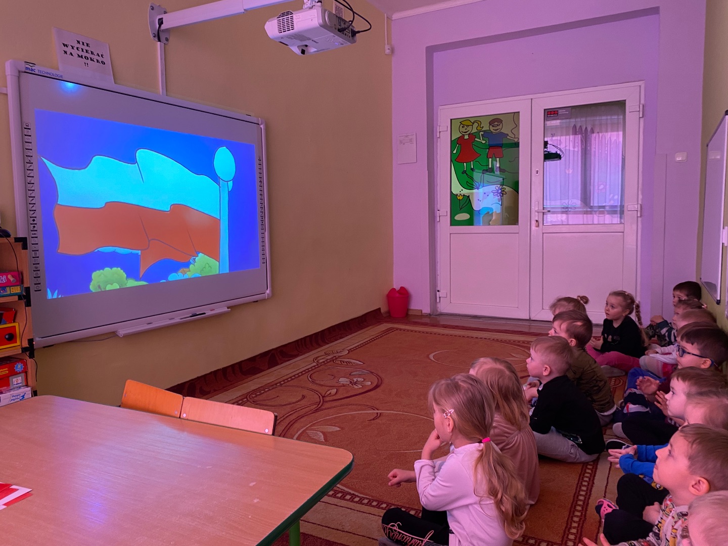 W związku ze zbliżającym się świętem narodowym, dzieci obejrzały film edukacyjny podczas którego zapoznały się z symbolami narodowymi oraz wysłuchały hymnu Polski. Następnie wykonały flagę Polski.