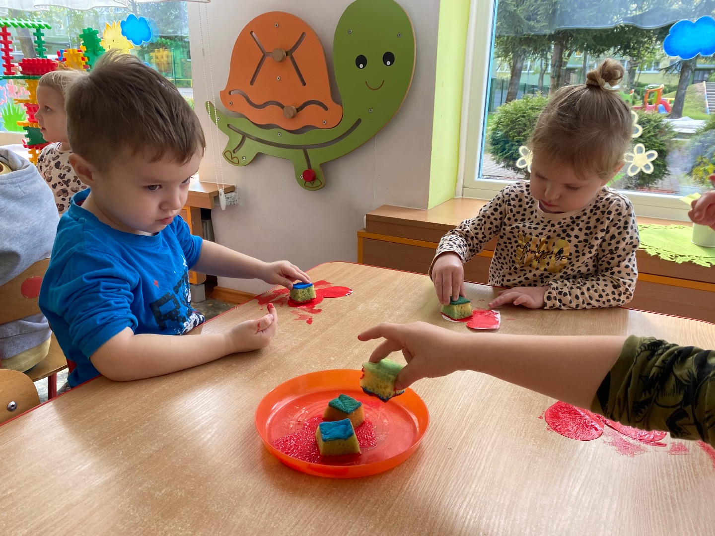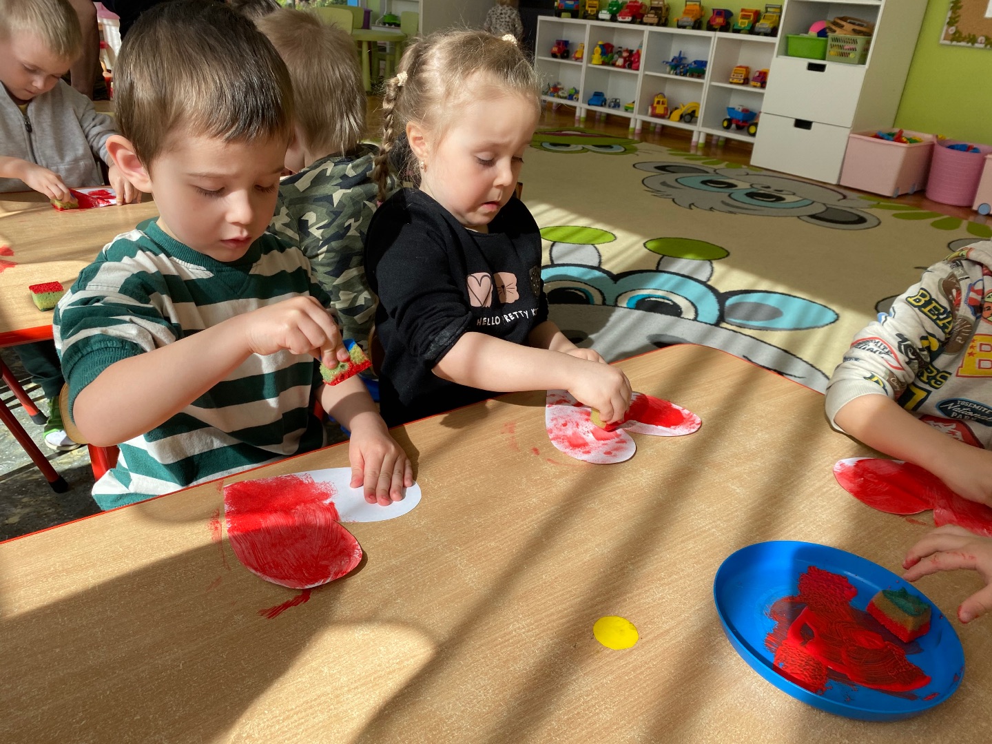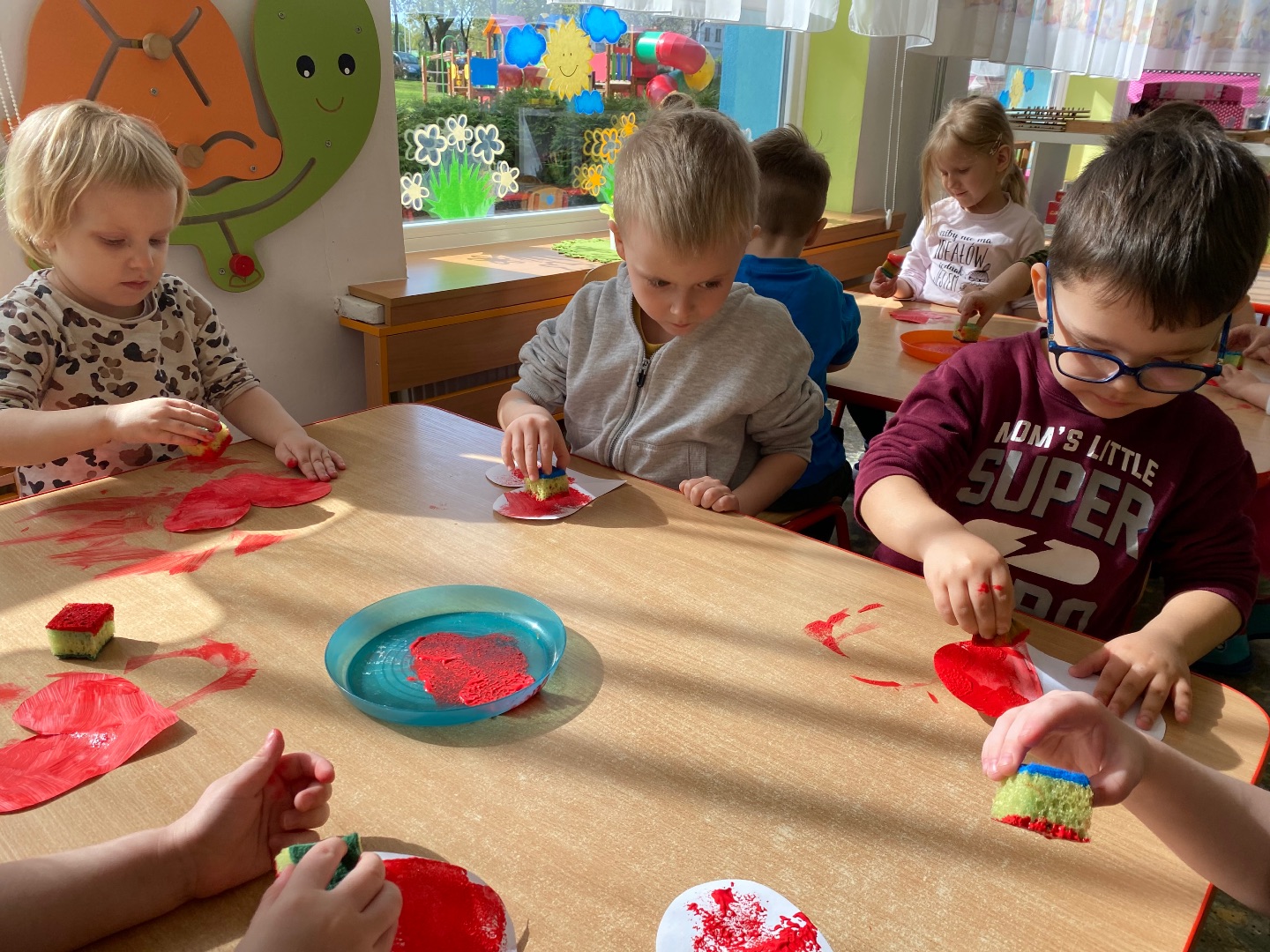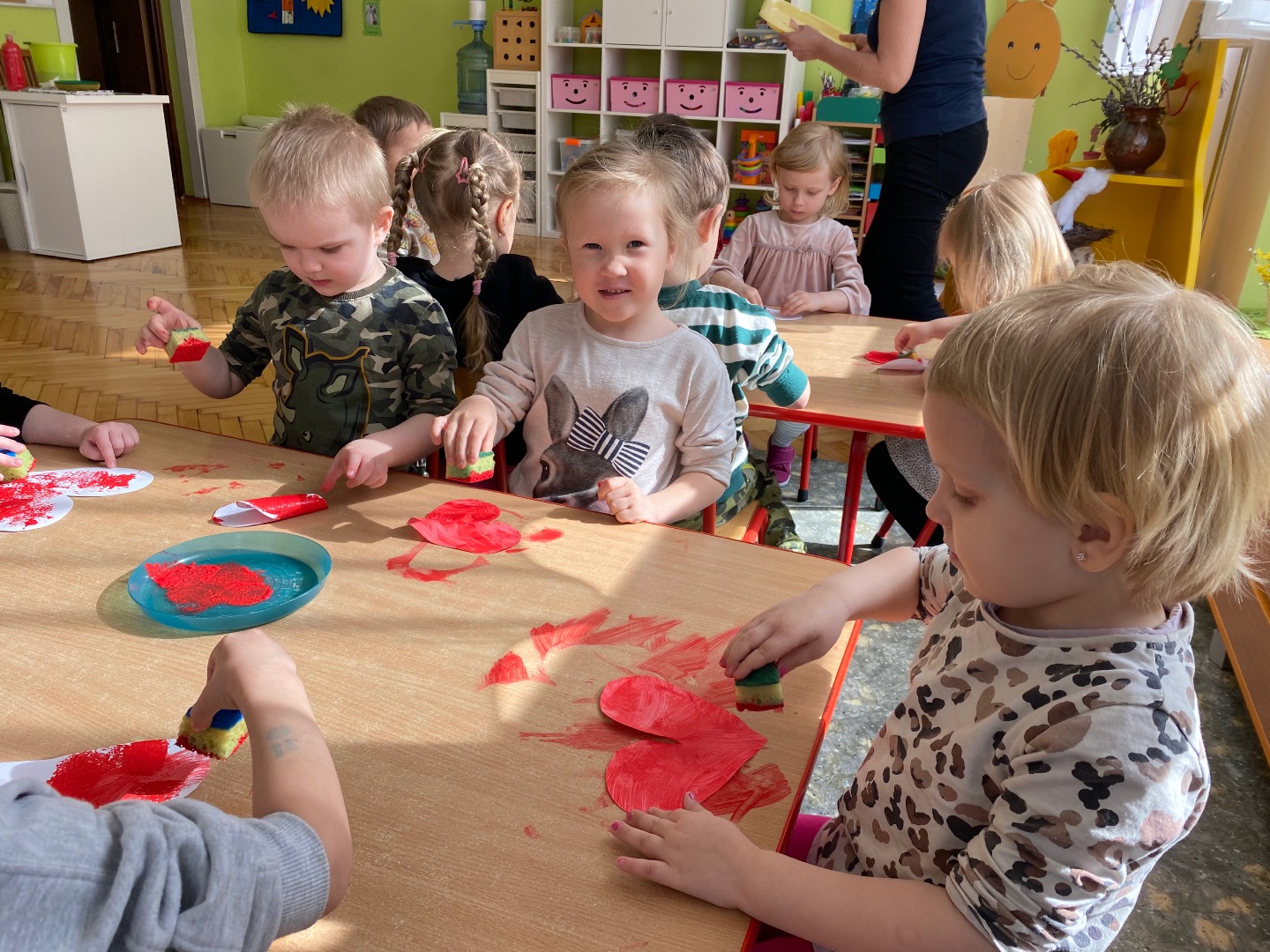 W związku ze zbliżającym się świętem narodowym, dzieci obejrzały film edukacyjny podczas którego zapoznały się z symbolami narodowymi oraz wysłuchały hymnu Polski. Następnie wykonały flagę Polski.