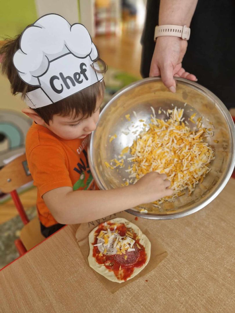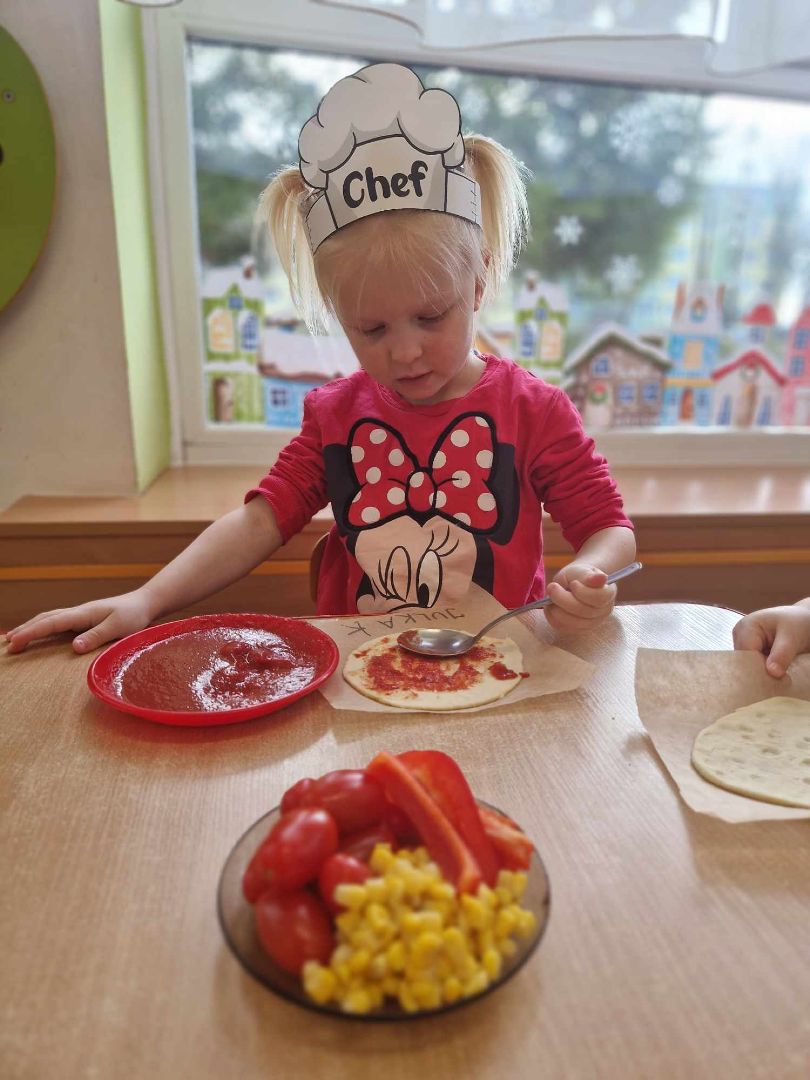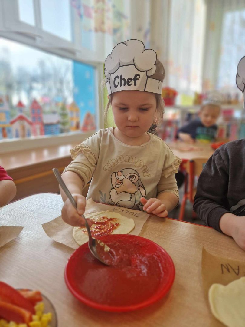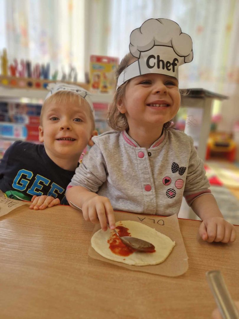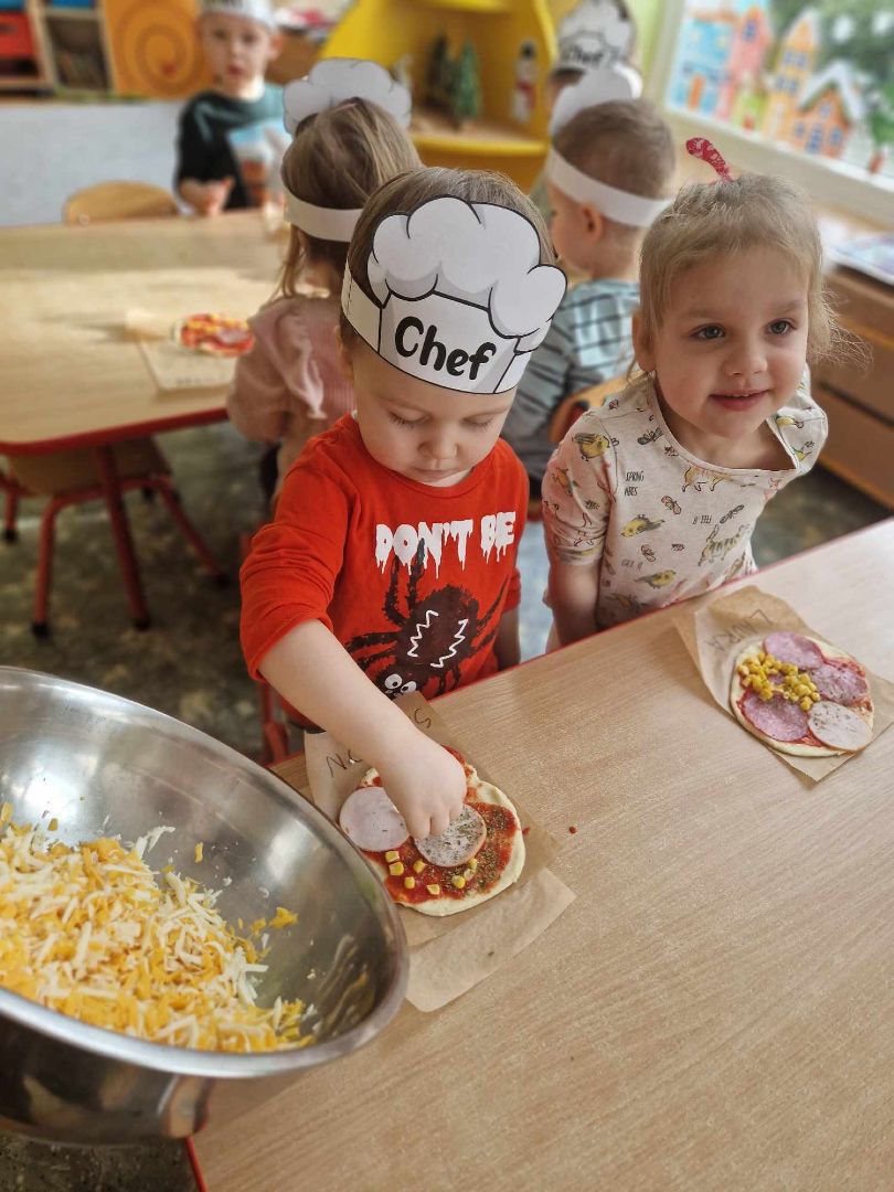 Dnia 9 lutego (piątek) 2024 r. w naszej grupie obchodziliśmy Międzynarodowy Dzień Pizzy. Podczas obchodów tego dnia nietypowego dzieci poznały krótką historię pizzy, dowiedziały się, z którego kraju pochodzi oraz z jakich składników można ją zrobić. Następnie przedszkolaki umyły rączki i z wielkim zaangażowaniem zabrały się do przygotowania pizzy. Na specjalnie przygotowanych stanowiskach dzieci smarowały sosem ciasto, układały wędliny, kukurydzę i posypywały serem. Tak przygotowane pizzę trafiły do przedszkolnej kuchni, zapach z piekarnika rozchodził się po całym przedszkolu, a dzieci nie mogły się doczekać, kiedy będą mogły skosztować samodzielnie przygotowanego dania.