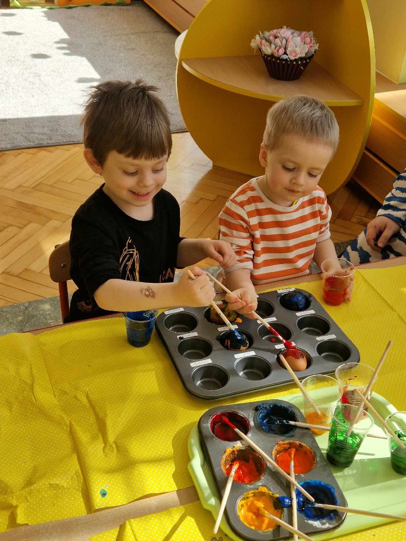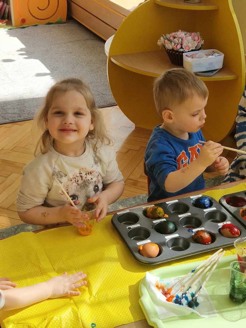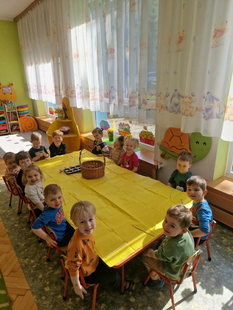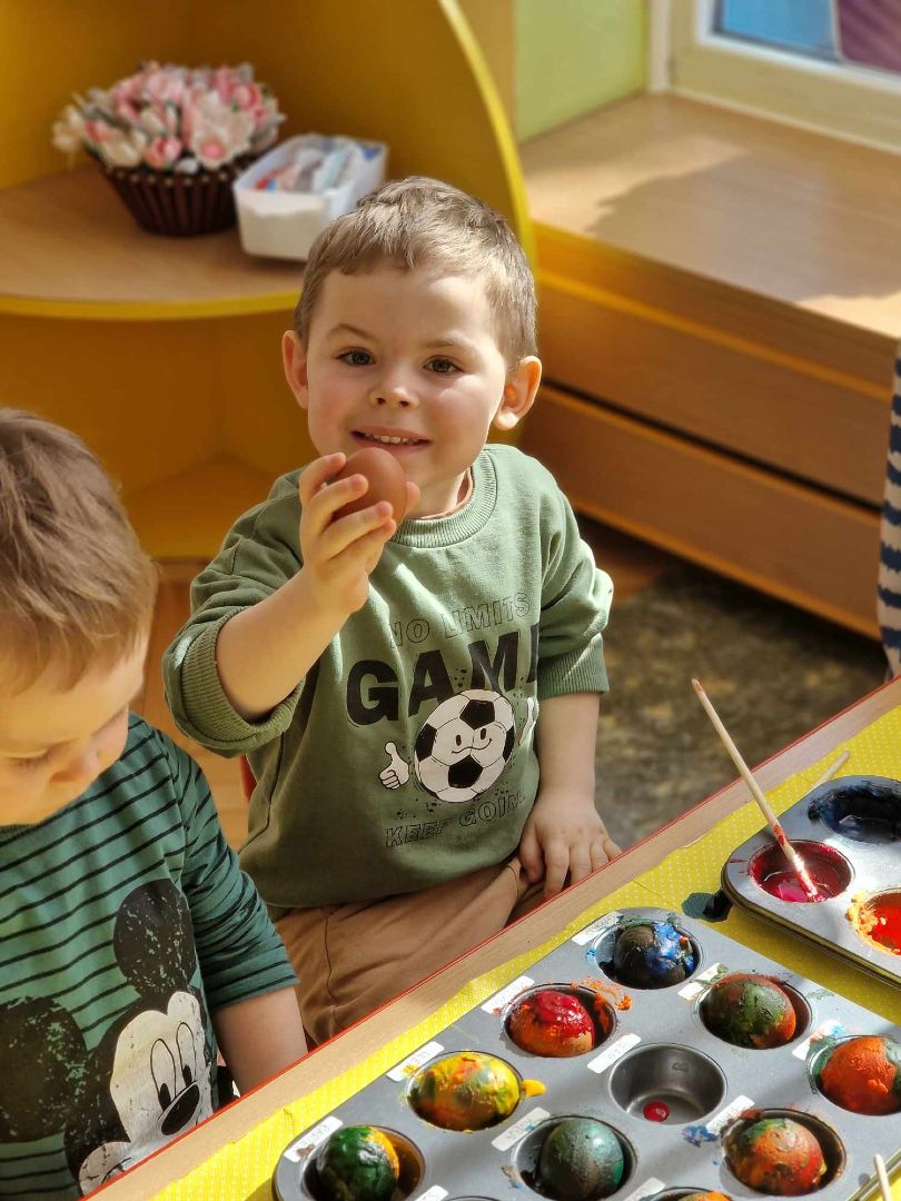 Czas Świąt Wielkanocnych jest związany przede wszystkim z tradycją malowania jajek, przybliżeniem i kultywowaniem tradycji związanych ze świętami wielkanocnymi wśród dzieci. W zależności od techniki zdobienia, świąteczne jajka mają różne nazwy: pisanki, kraszanki, oklejanki, rysowanki, drapanki. Dnia 29 marca (piątek) 2024 r. przedszkolaki również wykazały się pomysłowością i kreatywnością w malowaniu jajek. Przedszkolaki, z pomocą Pań, przygotowały farby z sody oczyszczonej i barwnika spożywczego, a następnie ozdabiały pisanki według własnych pomysłów.