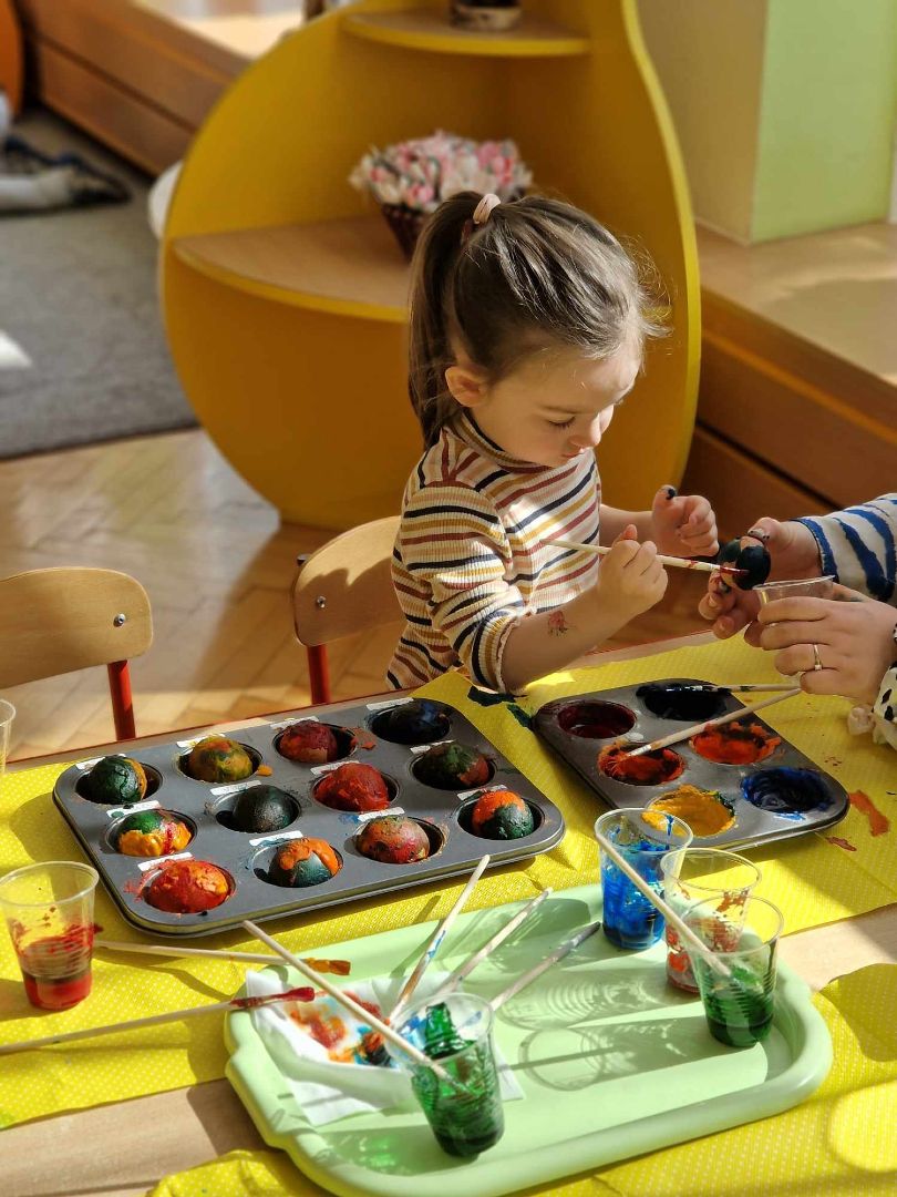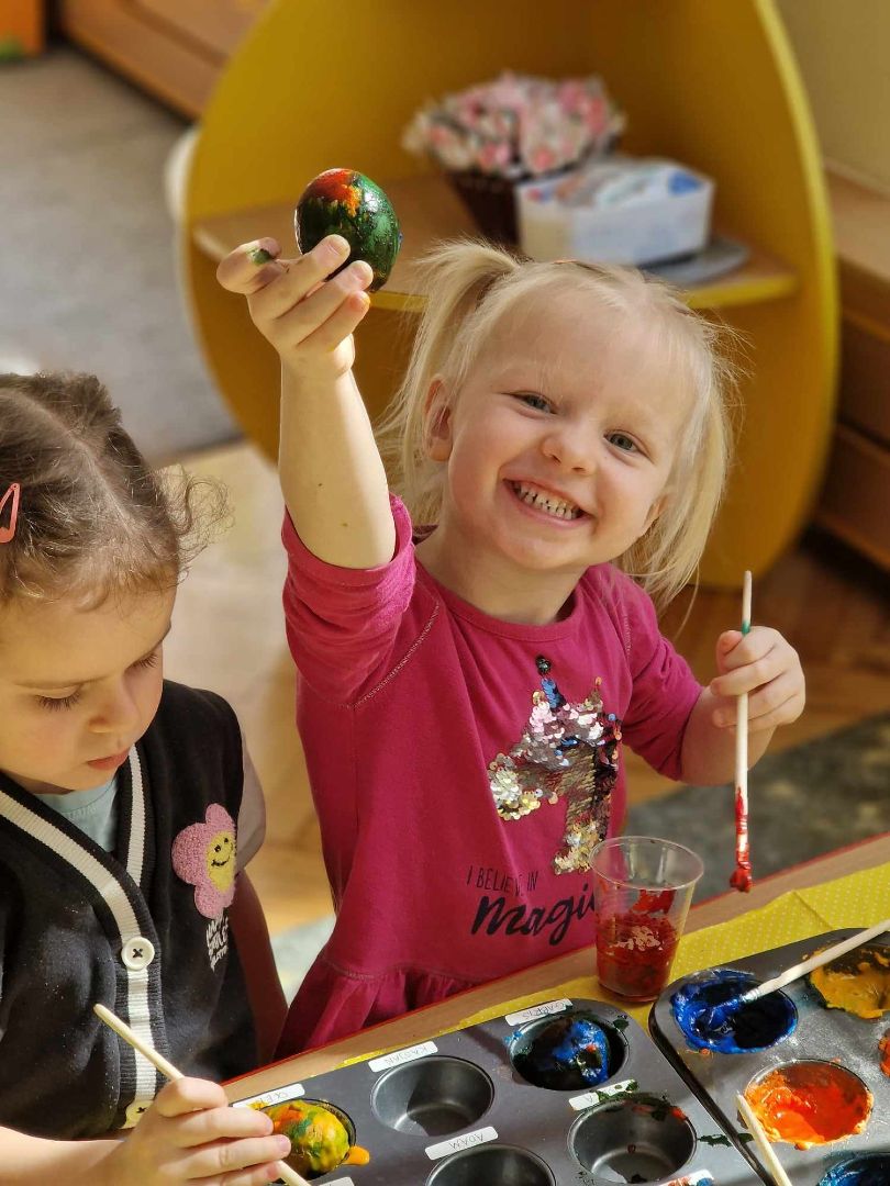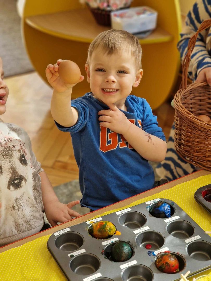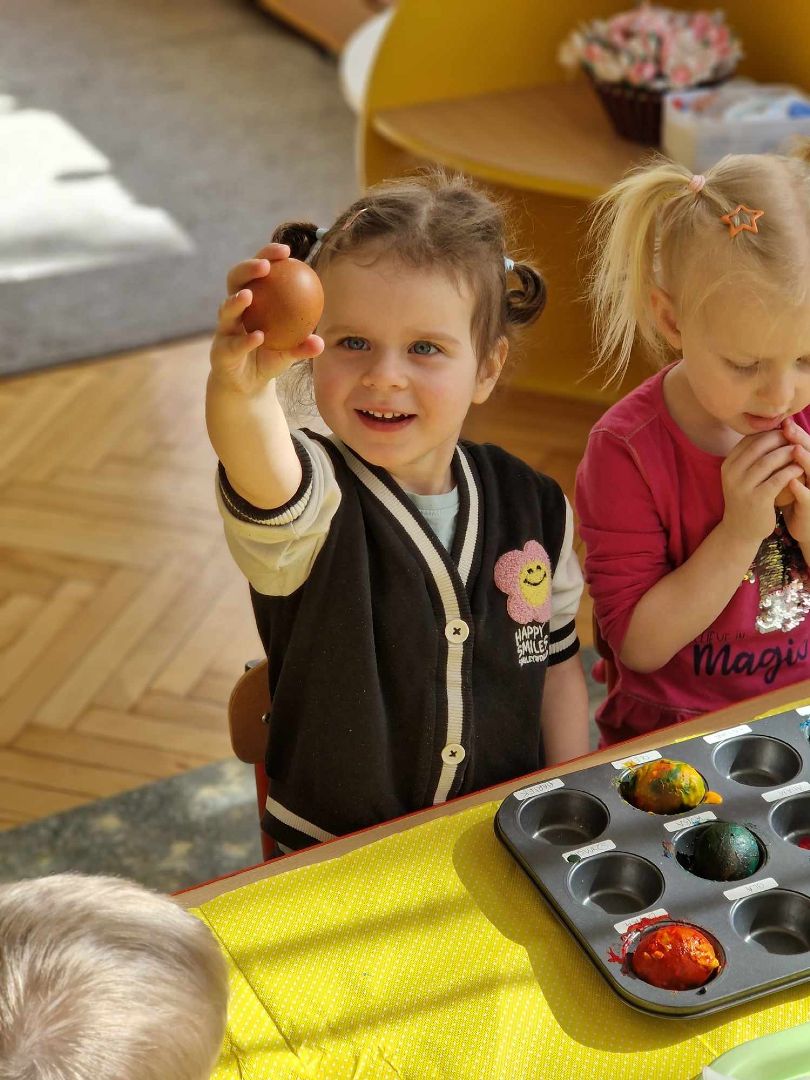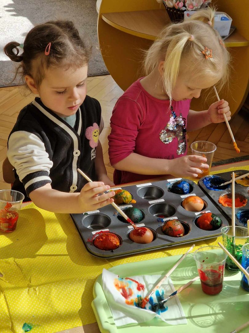 Czas Świąt Wielkanocnych jest związany przede wszystkim z tradycją malowania jajek, przybliżeniem i kultywowaniem tradycji związanych ze świętami wielkanocnymi wśród dzieci. W zależności od techniki zdobienia, świąteczne jajka mają różne nazwy: pisanki, kraszanki, oklejanki, rysowanki, drapanki. Dnia 29 marca (piątek) 2024 r. przedszkolaki również wykazały się pomysłowością i kreatywnością w malowaniu jajek. Przedszkolaki, z pomocą Pań, przygotowały farby z sody oczyszczonej i barwnika spożywczego, a następnie ozdabiały pisanki według własnych pomysłów.
