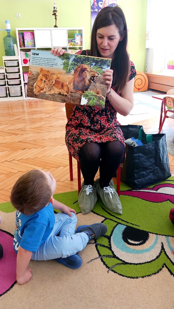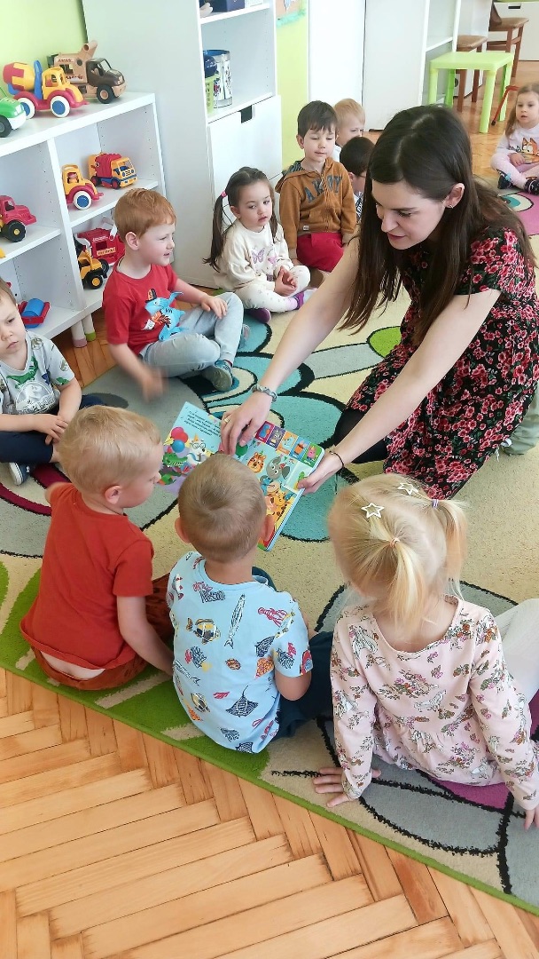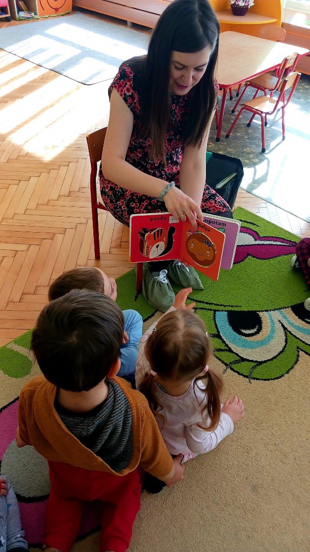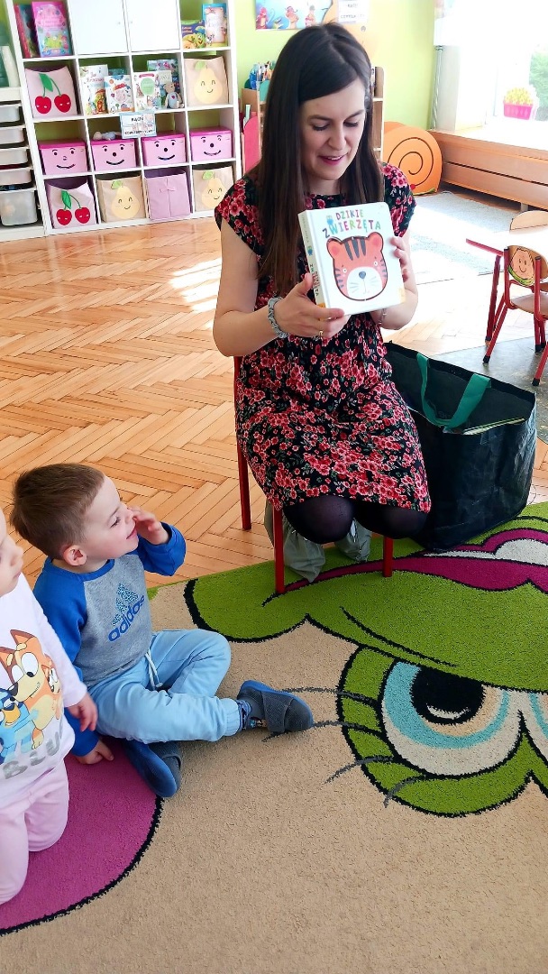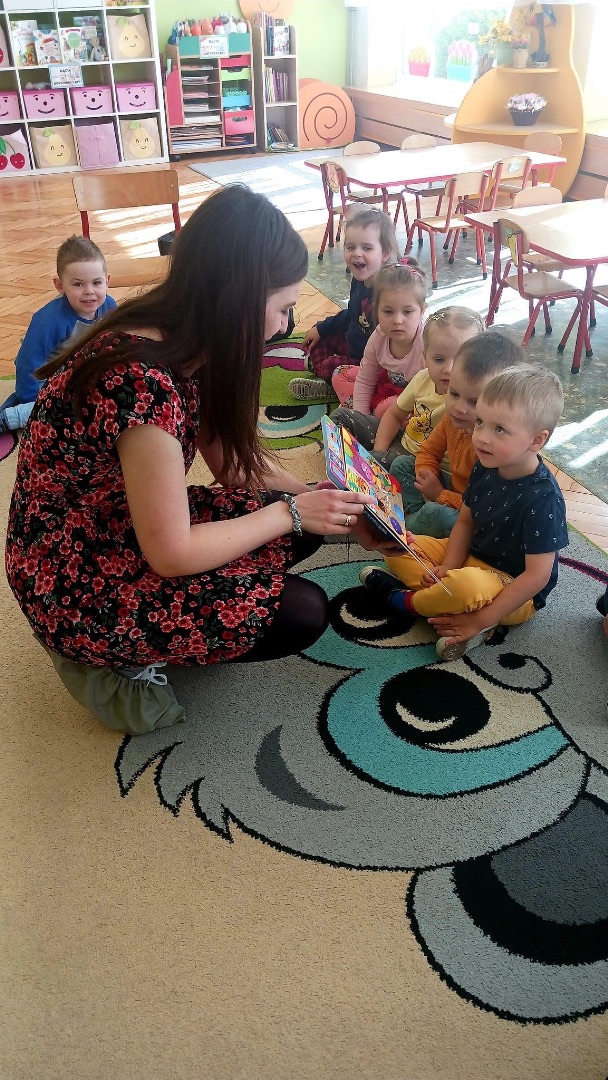 Celem spotkania było rozbudzenie zainteresowania książkami, wzbogacanie słownictwa i rozwijanie wyobraźni.