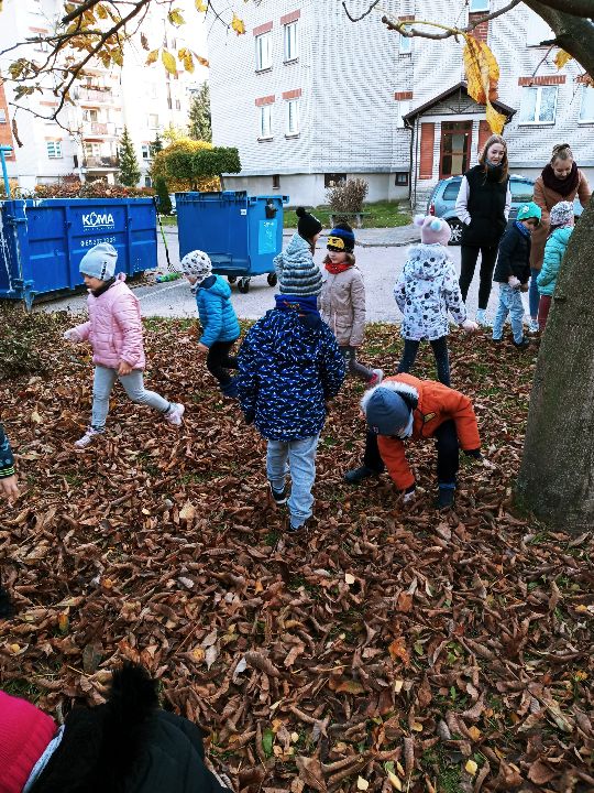 Dzieci z grupy "Muminki" z wielkim zaangażowaniem włączyły się do akcji "Ratujmy białostockie kasztany"