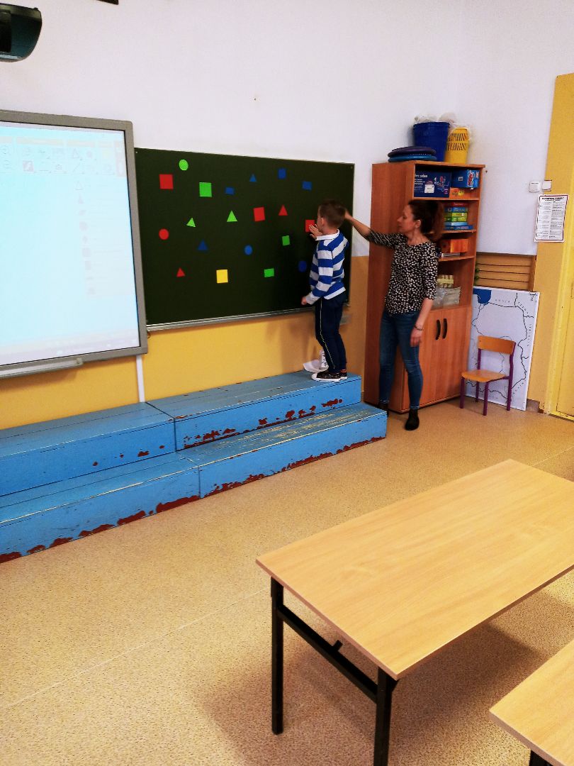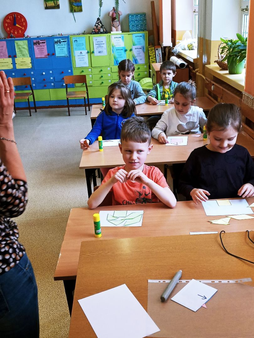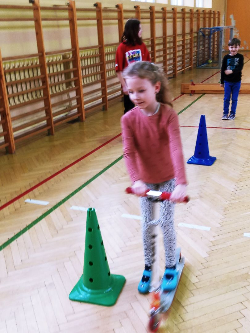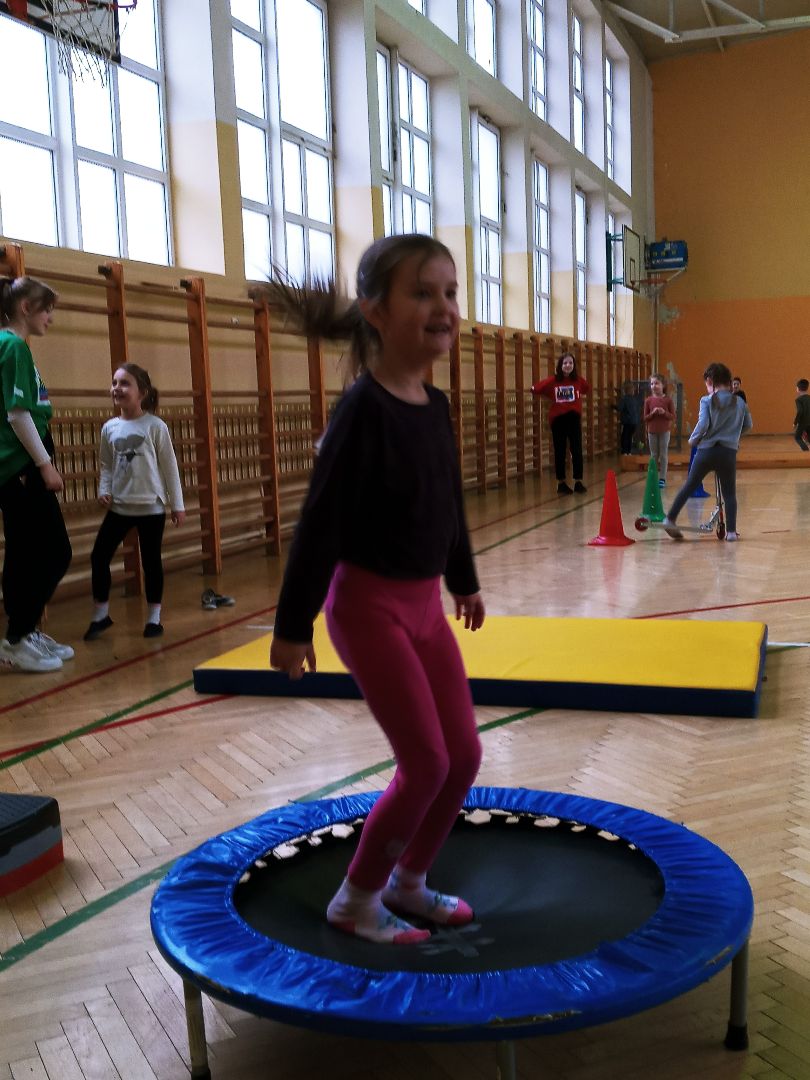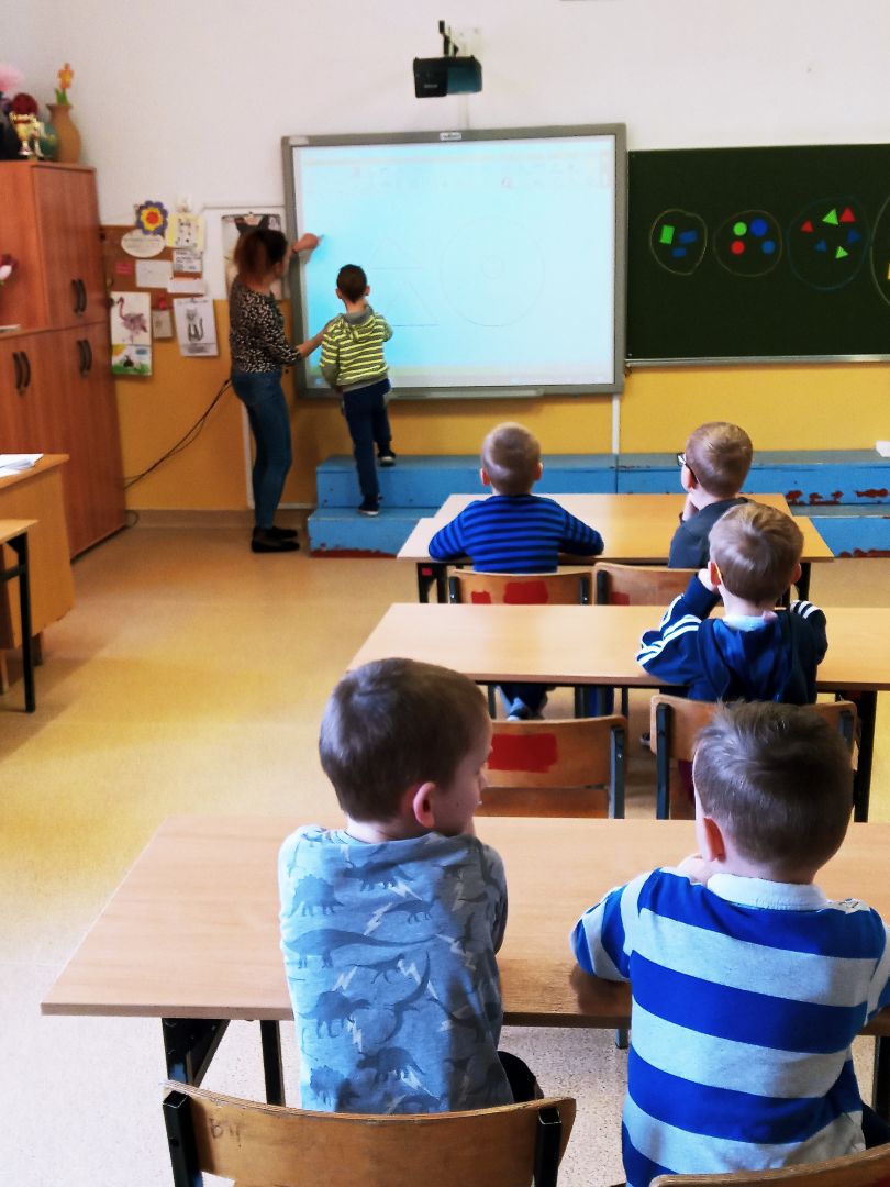 Podczas pobytu w szkole dzieci obejrzały szatnię, klasę lekcyjną, świetlicę. Uczestniczyły w prawdziwej lekcji. Wielką atrakcją były zabawy na sali gimnastycznej.
