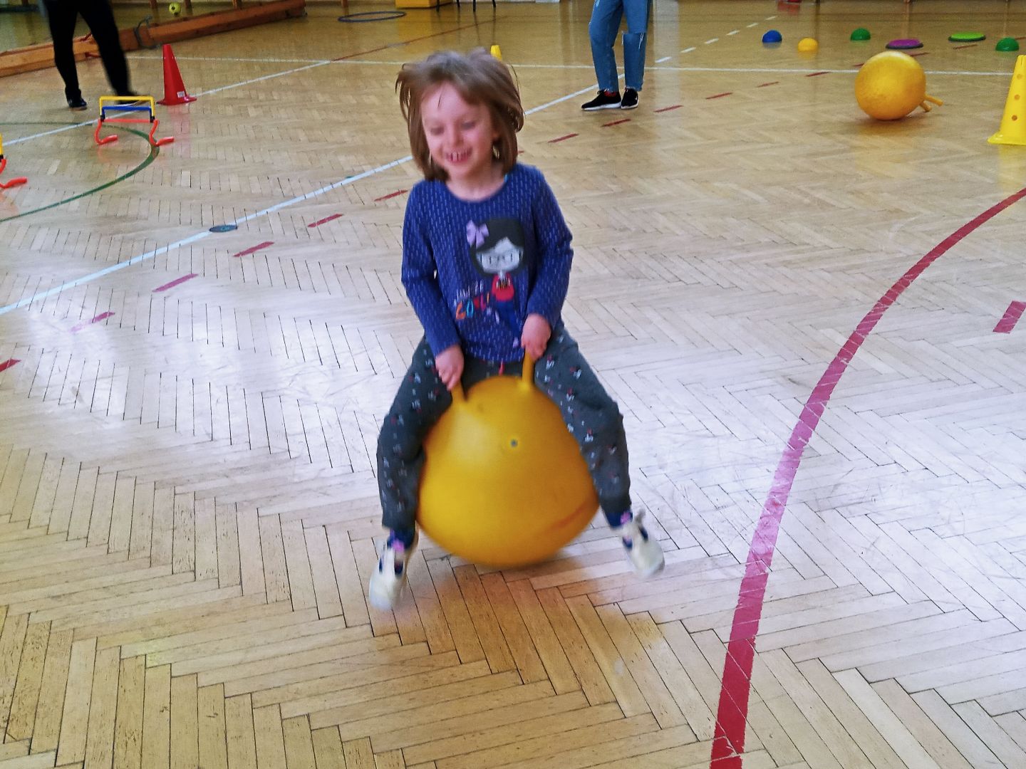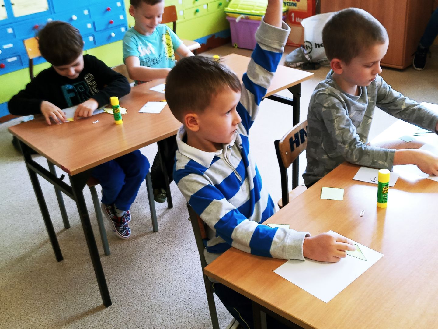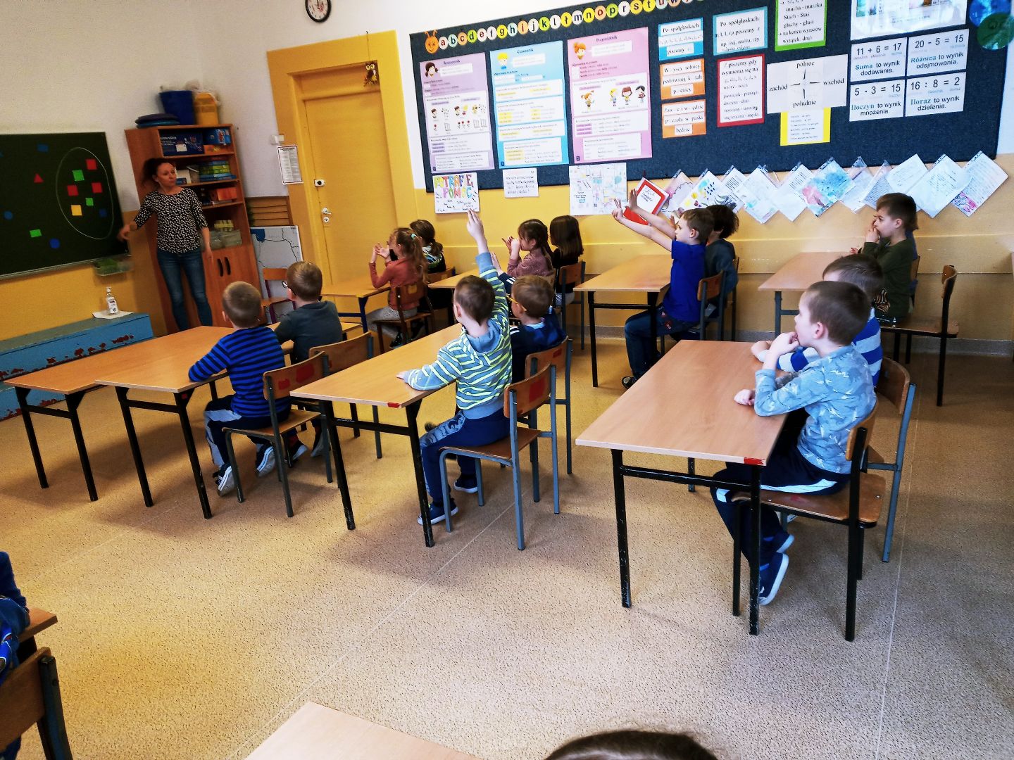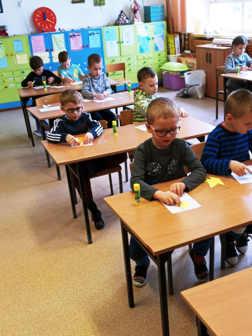 Podczas pobytu w szkole dzieci obejrzały szatnię, klasę lekcyjną, świetlicę. Uczestniczyły w prawdziwej lekcji. Wielką atrakcją były zabawy na sali gimnastycznej.