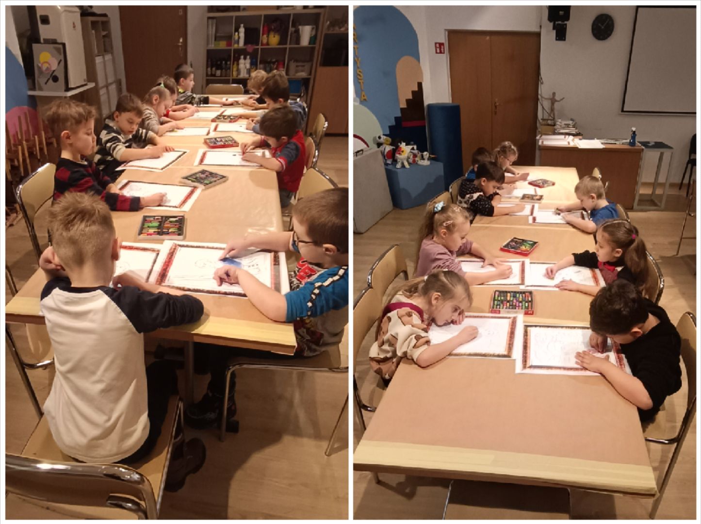 Ciekawa wystawa obrazów, interesujące zajęcia plastyczne.