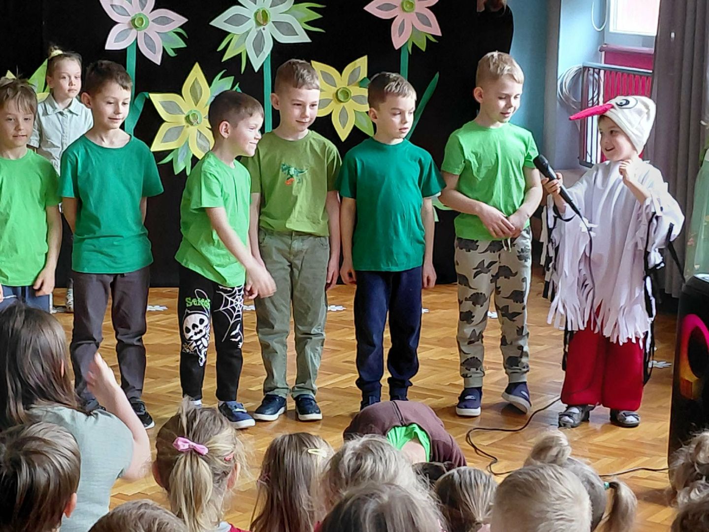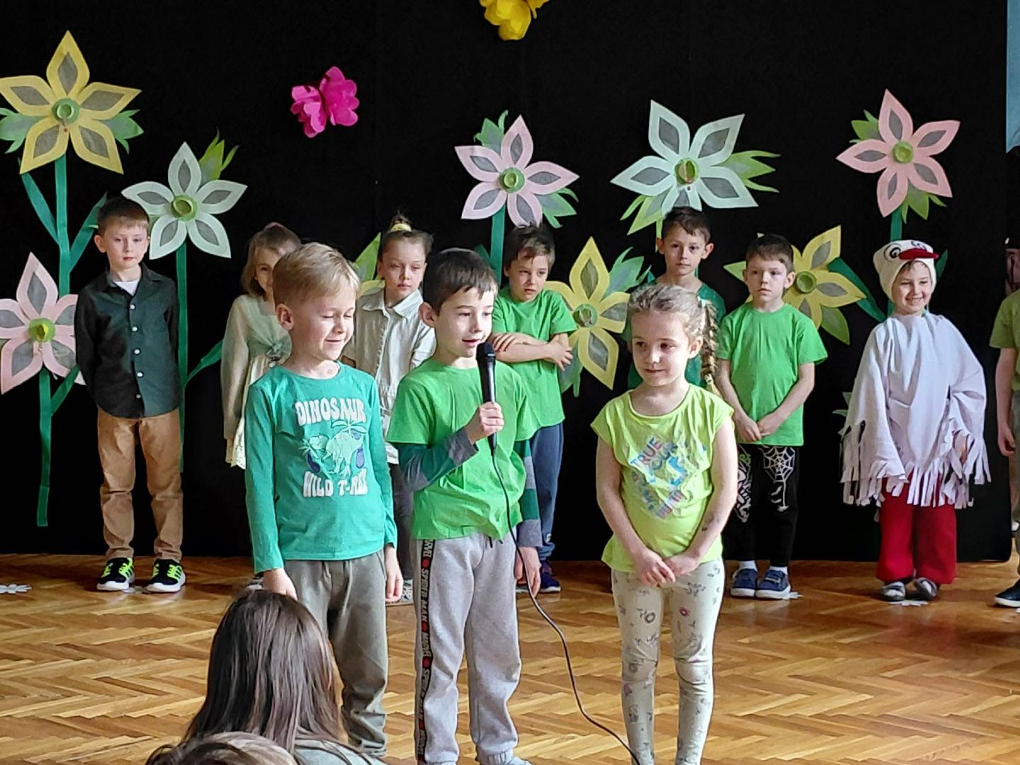 Przedstawienie zostało zaprezentowane przed wszystkimi przedszkolakami i spotkało się z bardzo ciepłym przyjęciem. Podczas występu dzieci z ogromnym zaangażowaniem recytowały liczne wiersze oraz śpiewały radosne, wiosenne piosenki. Ich występ był pełen uśmiechu, energii i wprowadził wszystkich w prawdziwie wiosenny nastrój. Mali artyści wykazali się odwagą i talentem, a ich występ sprawił wiele radości zarówno widzom, jak i nauczycielom.