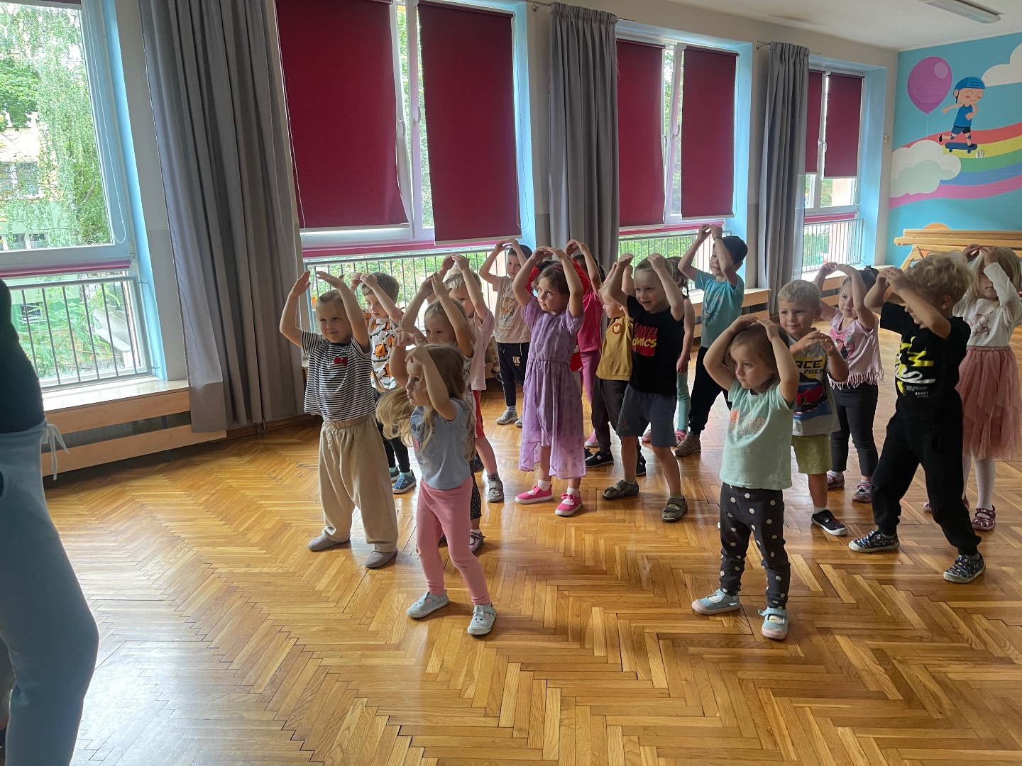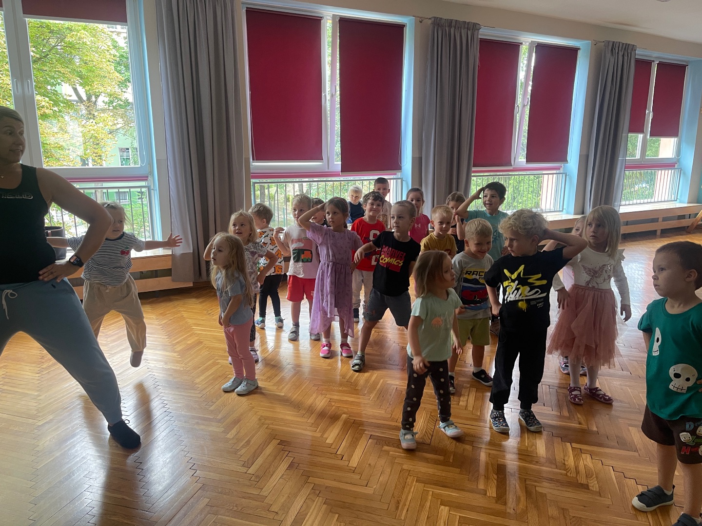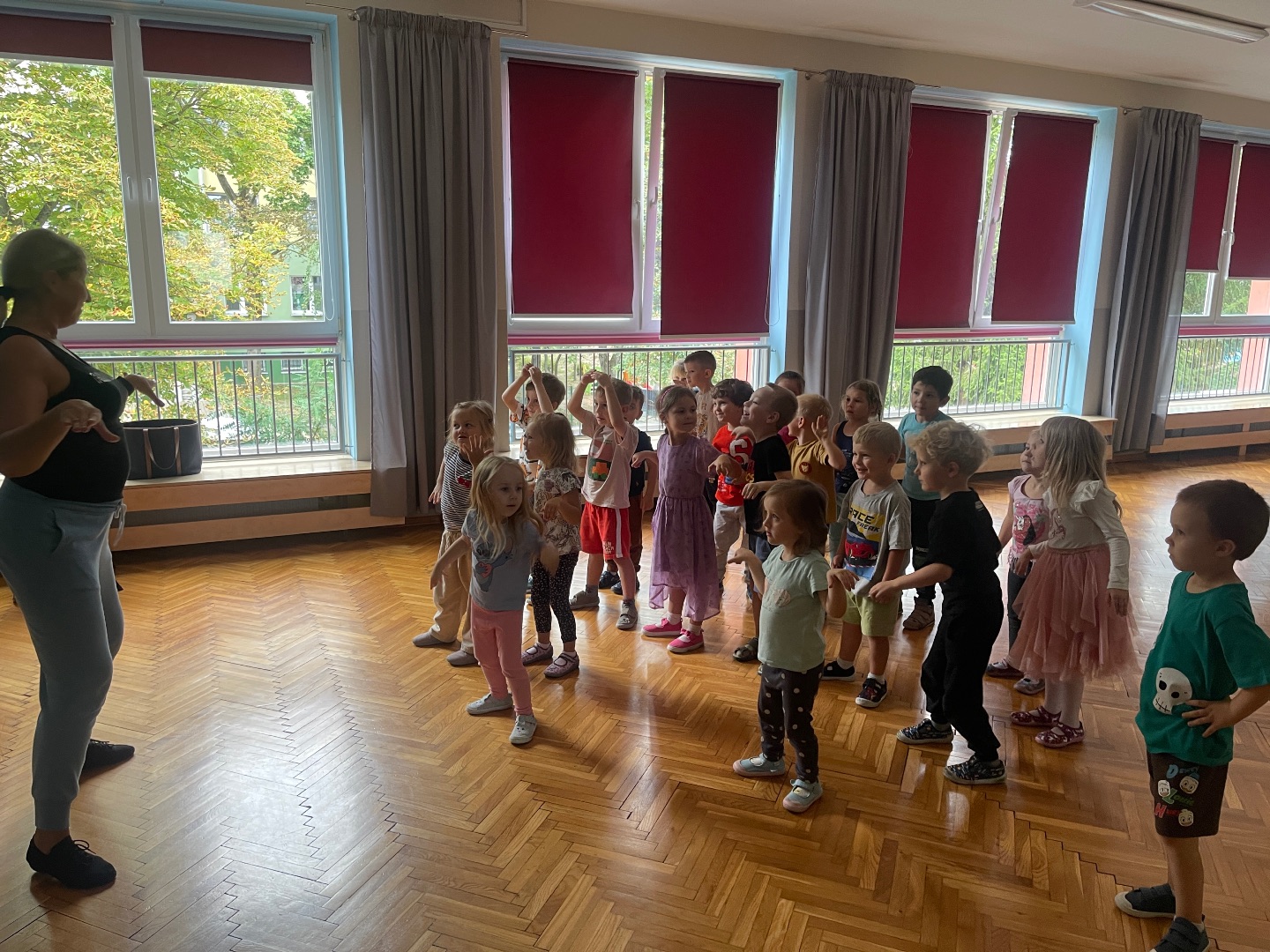 Dnia 12 września (piątek) 2025 roku w naszym przedszkolu odbyły się zajęcia pokazowe z Tańca Towarzyskiego. Są to zajęcia dodatkowe, płatne, prowadzone przez Panią Renatę z Studia Tańca Sportowego. Przedszkolaki bardzo chętnie uczestniczyły w zajęciach pokazowych, poznały podstawowe kroki taneczne, a przy tym rozwijały poczucie rytmu i koordynację ruchową.