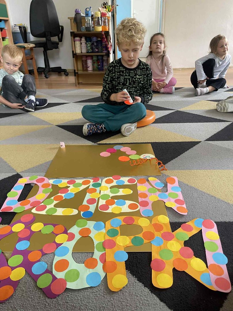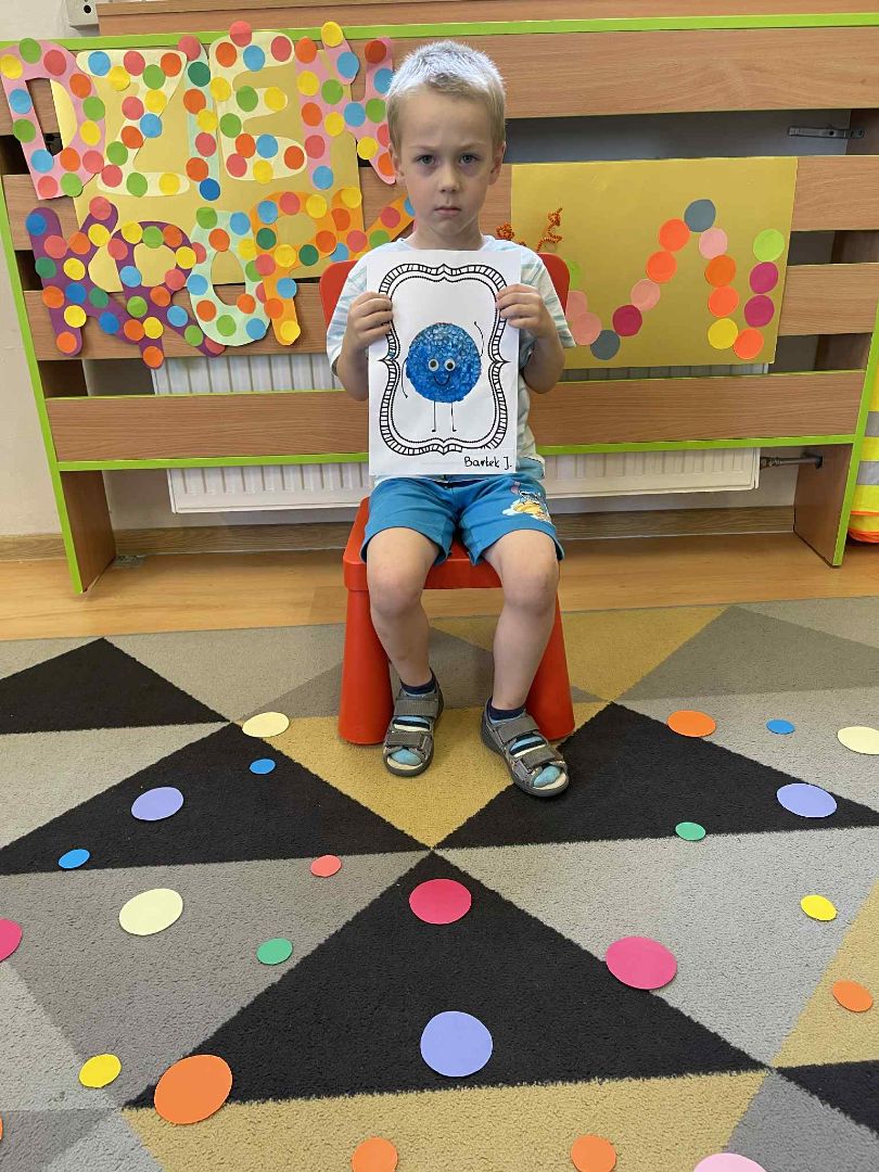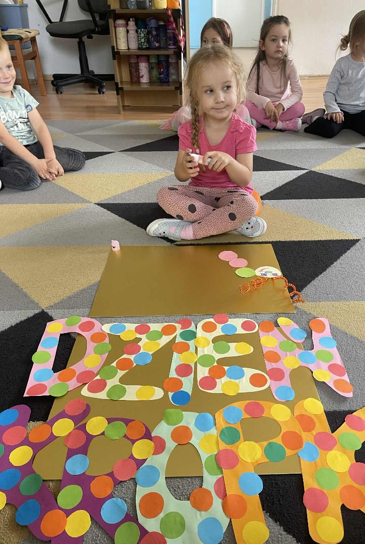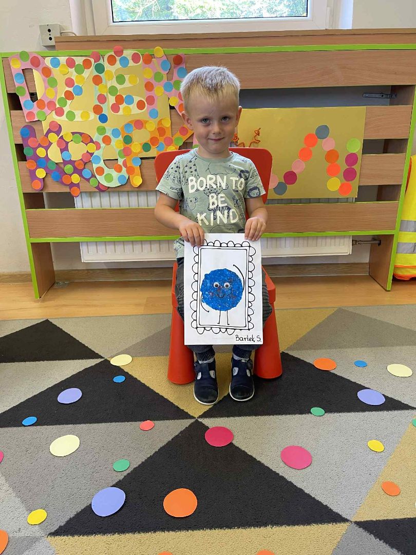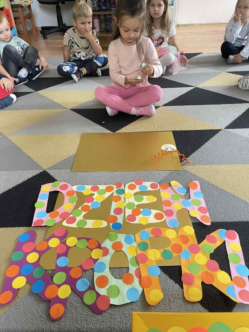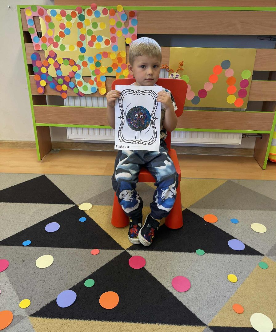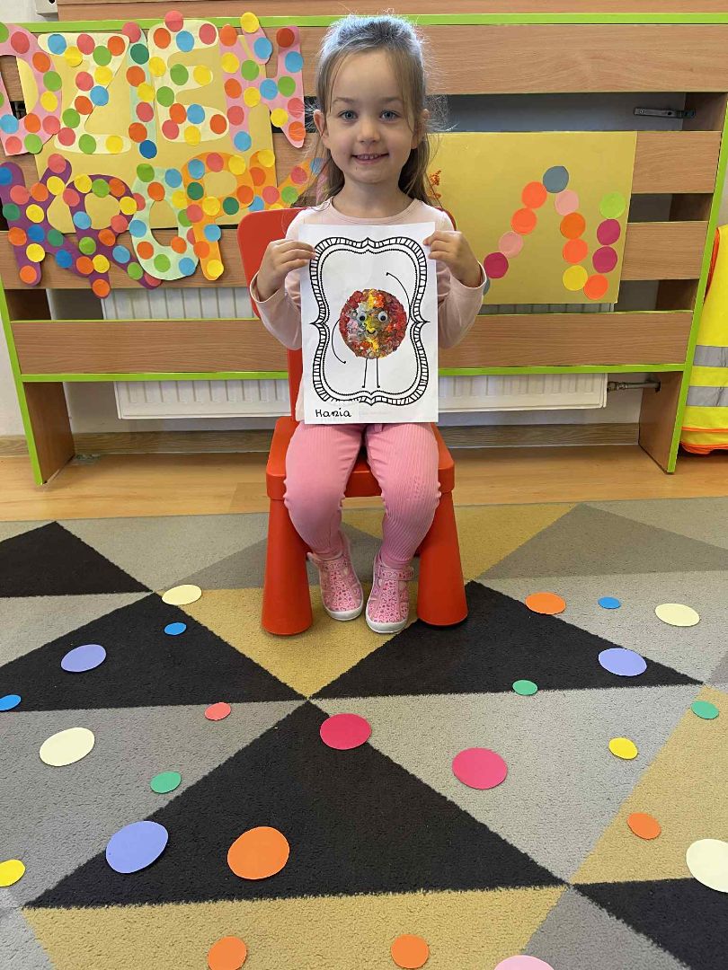 Dnia 15 września (poniedziałek) 2025 roku w naszej przedszkolnej grupie świętowaliśmy Międzynarodowy Dzień Kropki. Dzień rozpoczęliśmy od wysłuchania opowiadania pt. „Kropka” autorstwa Petera H. Reynoldsa. Na jego podstawie, układaliśmy plan wydarzeń, rozwijając przy tym mowę oraz umiejętność opowiadania. Bawiliśmy się przy piosence, a także braliśmy udział w zabawie rytmicznej do utworu pt. „Cuckoo Ritim”, rozwijając przy tym poczucie rytmu oraz koordynację ruchową oko – ręka. Na zakończenie, wykonaliśmy pracę plastyczną, malując pomponami zanurzonymi w farbie plakatowej. Każda kropka była wyjątkowa i niepowtarzalna.