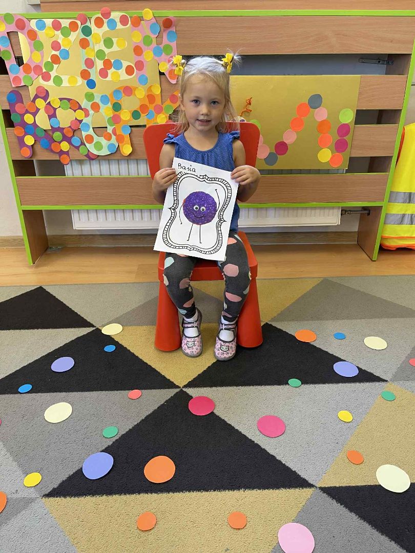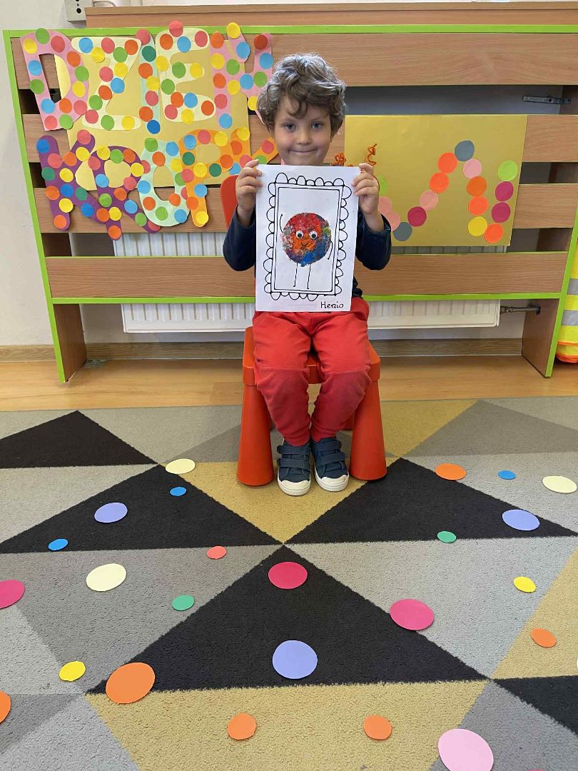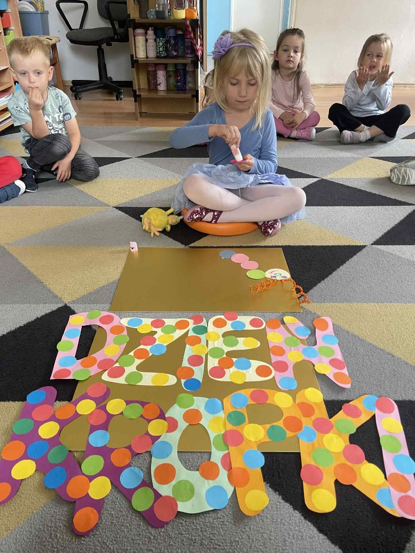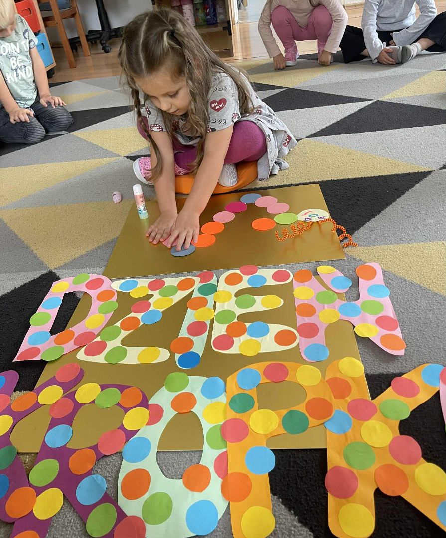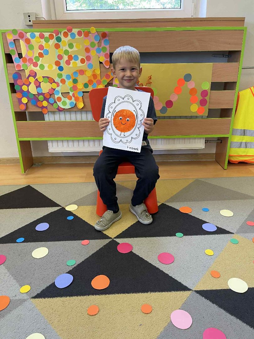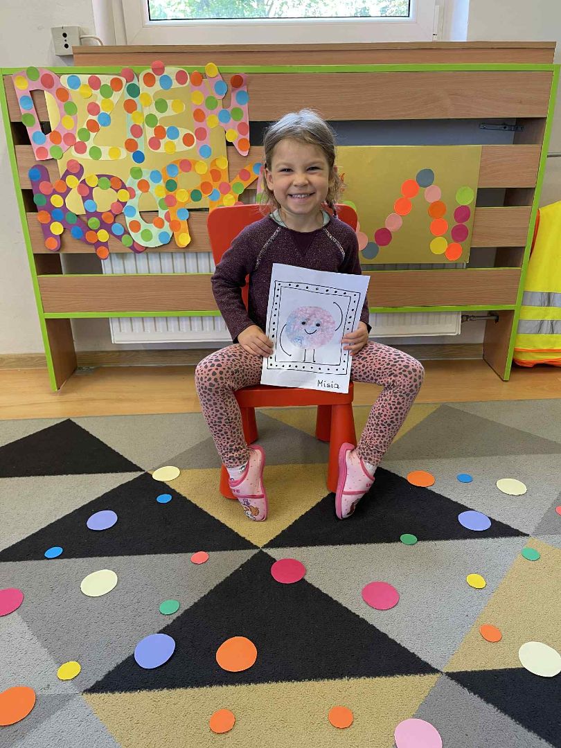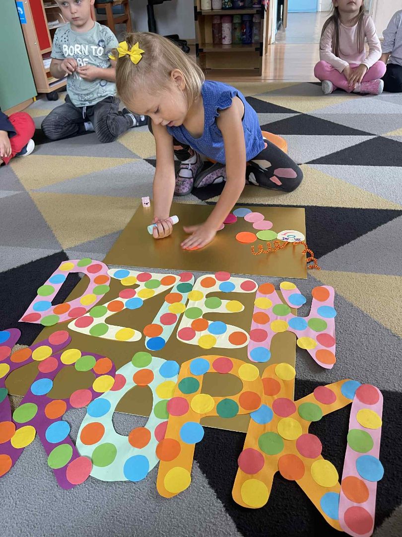 Dnia 15 września (poniedziałek) 2025 roku w naszej przedszkolnej grupie świętowaliśmy Międzynarodowy Dzień Kropki. Dzień rozpoczęliśmy od wysłuchania opowiadania pt. „Kropka” autorstwa Petera H. Reynoldsa. Na jego podstawie, układaliśmy plan wydarzeń, rozwijając przy tym mowę oraz umiejętność opowiadania. Bawiliśmy się przy piosence, a także braliśmy udział w zabawie rytmicznej do utworu pt. „Cuckoo Ritim”, rozwijając przy tym poczucie rytmu oraz koordynację ruchową oko – ręka. Na zakończenie, wykonaliśmy pracę plastyczną, malując pomponami zanurzonymi w farbie plakatowej. Każda kropka była wyjątkowa i niepowtarzalna.