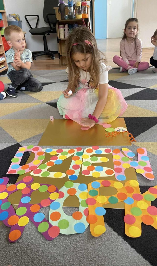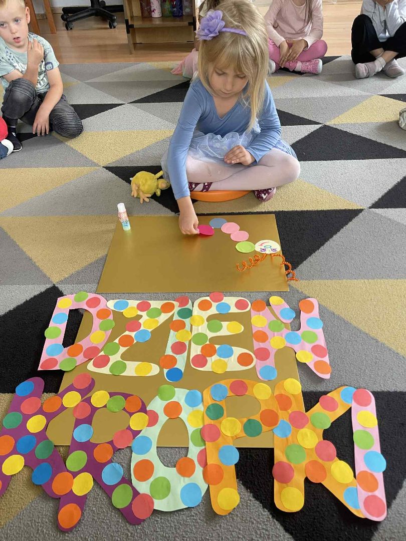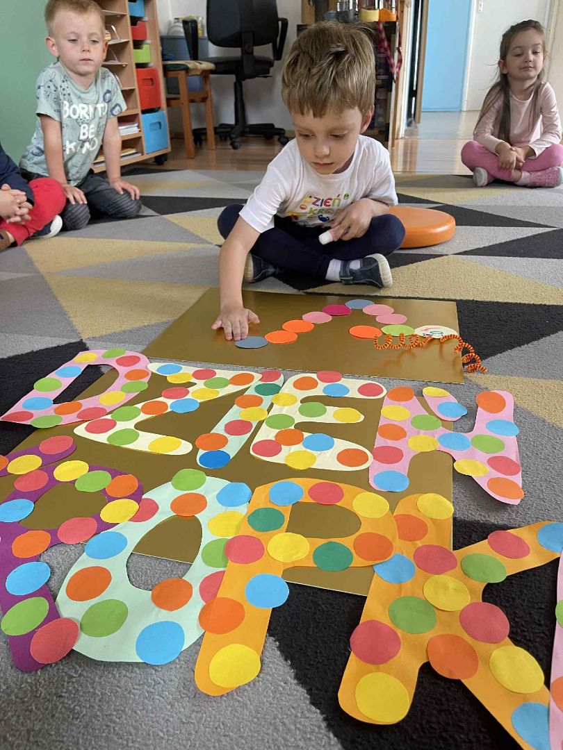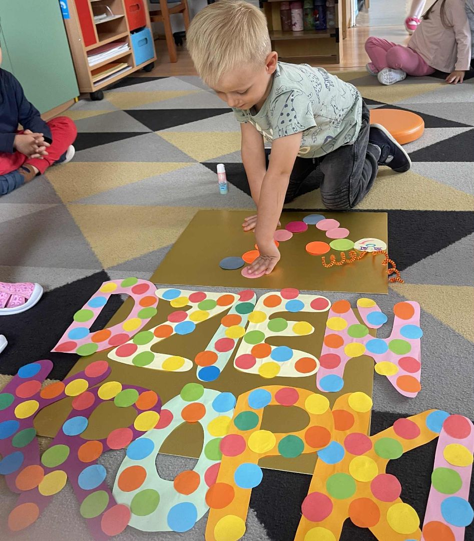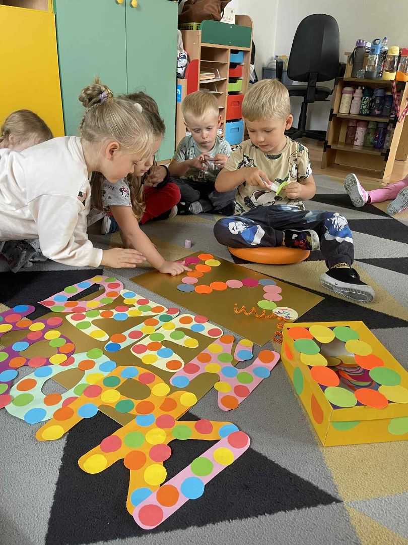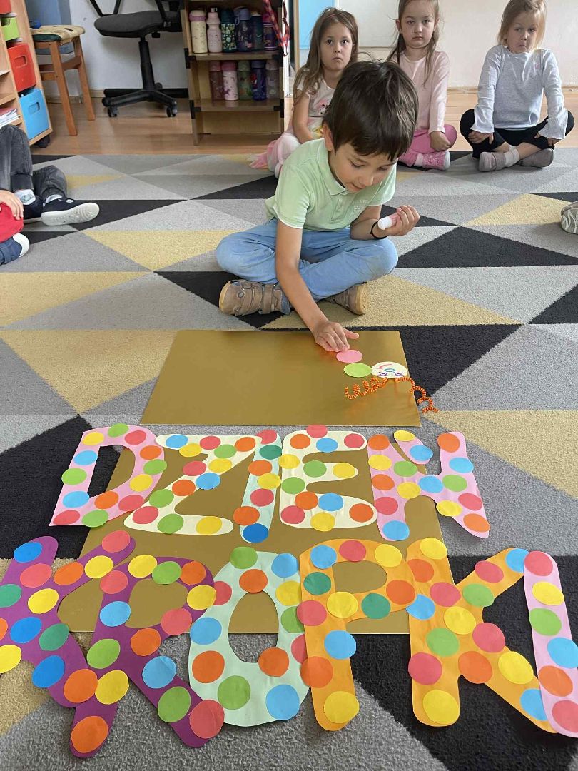 Dnia 15 września (poniedziałek) 2025 roku w naszej przedszkolnej grupie świętowaliśmy Międzynarodowy Dzień Kropki. Dzień rozpoczęliśmy od wysłuchania opowiadania pt. „Kropka” autorstwa Petera H. Reynoldsa. Na jego podstawie, układaliśmy plan wydarzeń, rozwijając przy tym mowę oraz umiejętność opowiadania. Bawiliśmy się przy piosence, a także braliśmy udział w zabawie rytmicznej do utworu pt. „Cuckoo Ritim”, rozwijając przy tym poczucie rytmu oraz koordynację ruchową oko – ręka. Na zakończenie, wykonaliśmy pracę plastyczną, malując pomponami zanurzonymi w farbie plakatowej. Każda kropka była wyjątkowa i niepowtarzalna.