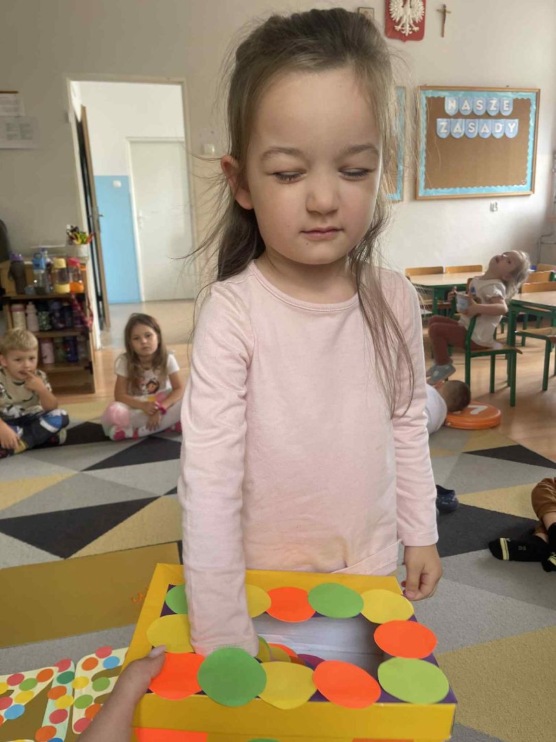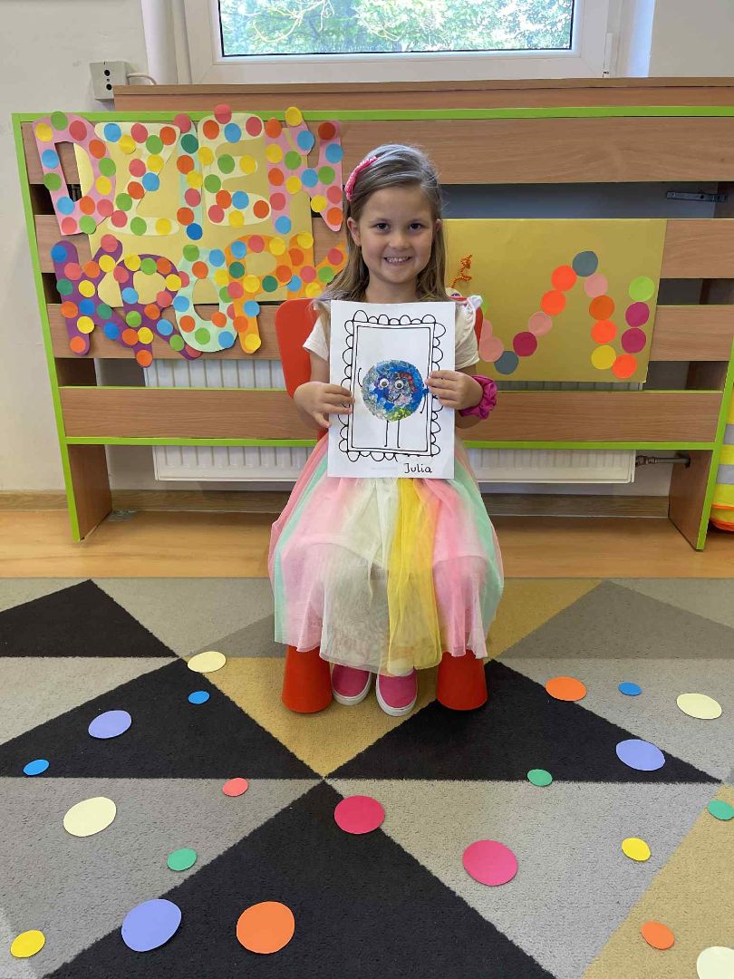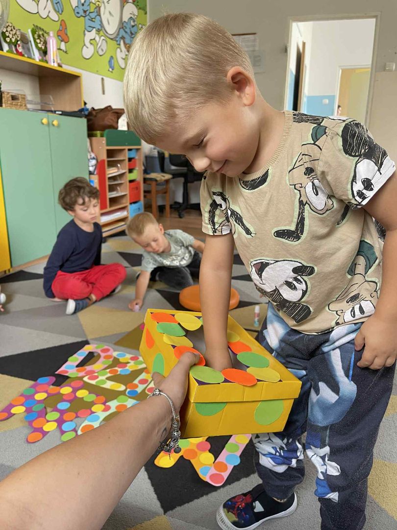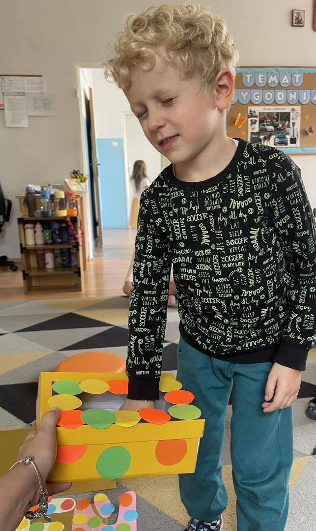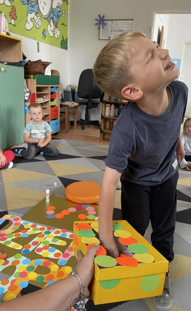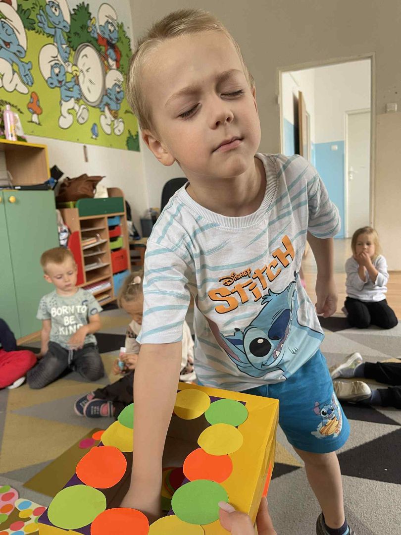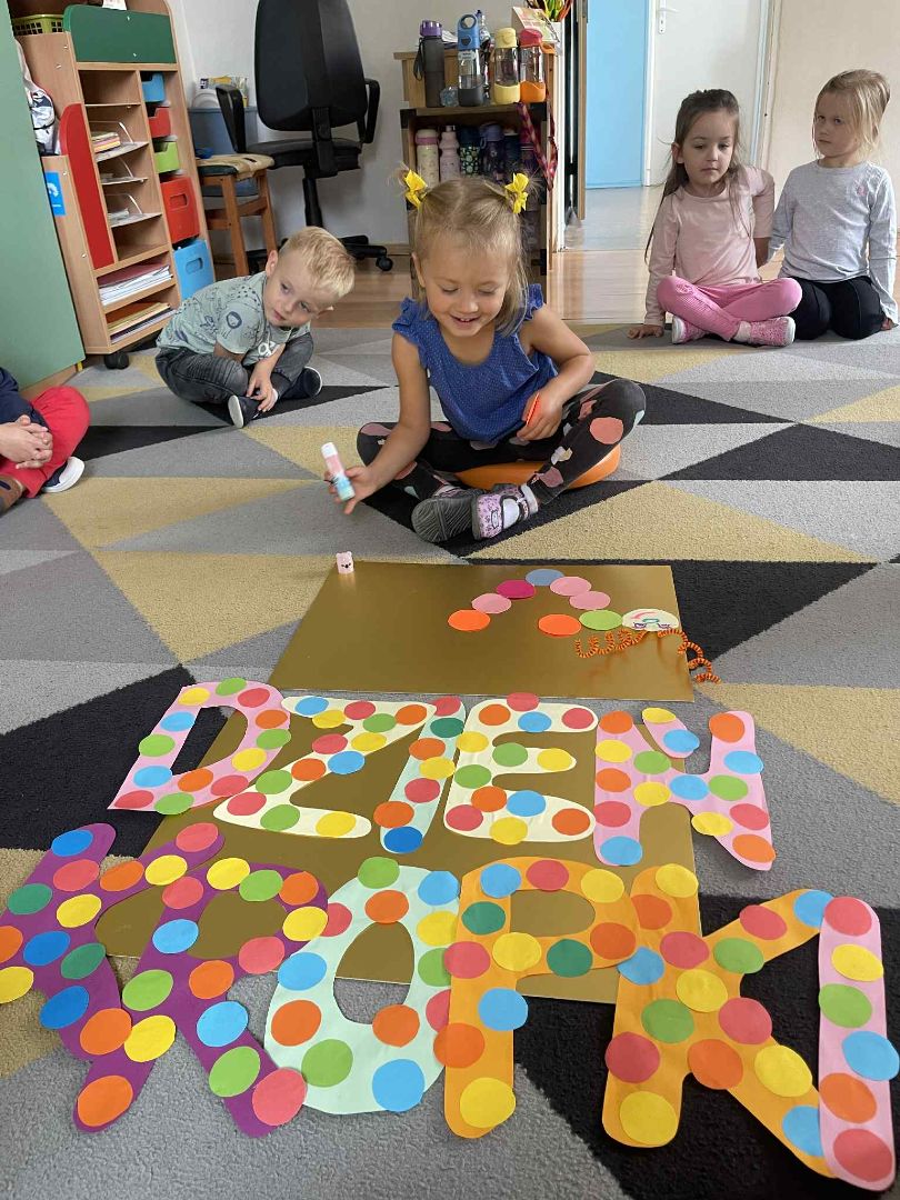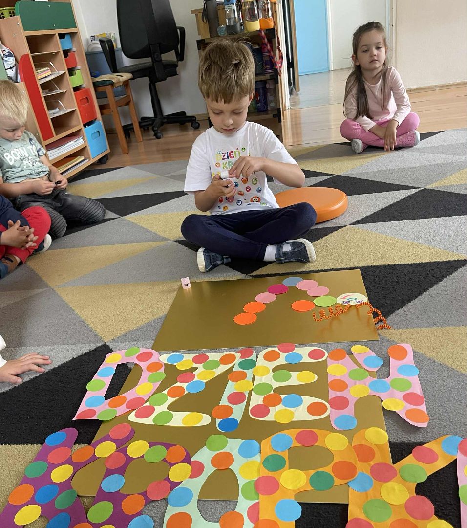 Dnia 15 września (poniedziałek) 2025 roku w naszej przedszkolnej grupie świętowaliśmy Międzynarodowy Dzień Kropki. Dzień rozpoczęliśmy od wysłuchania opowiadania pt. „Kropka” autorstwa Petera H. Reynoldsa. Na jego podstawie, układaliśmy plan wydarzeń, rozwijając przy tym mowę oraz umiejętność opowiadania. Bawiliśmy się przy piosence, a także braliśmy udział w zabawie rytmicznej do utworu pt. „Cuckoo Ritim”, rozwijając przy tym poczucie rytmu oraz koordynację ruchową oko – ręka. Na zakończenie, wykonaliśmy pracę plastyczną, malując pomponami zanurzonymi w farbie plakatowej. Każda kropka była wyjątkowa i niepowtarzalna.