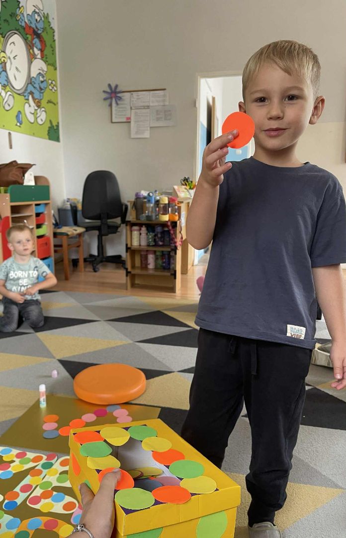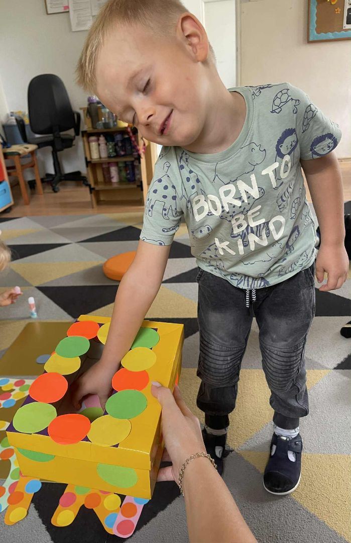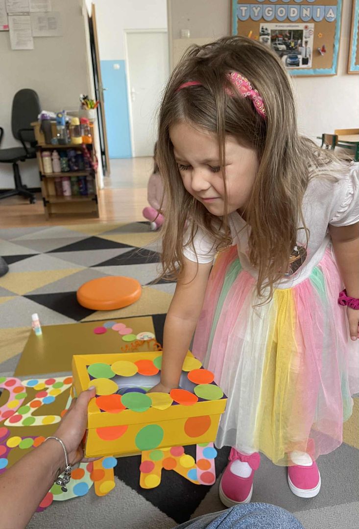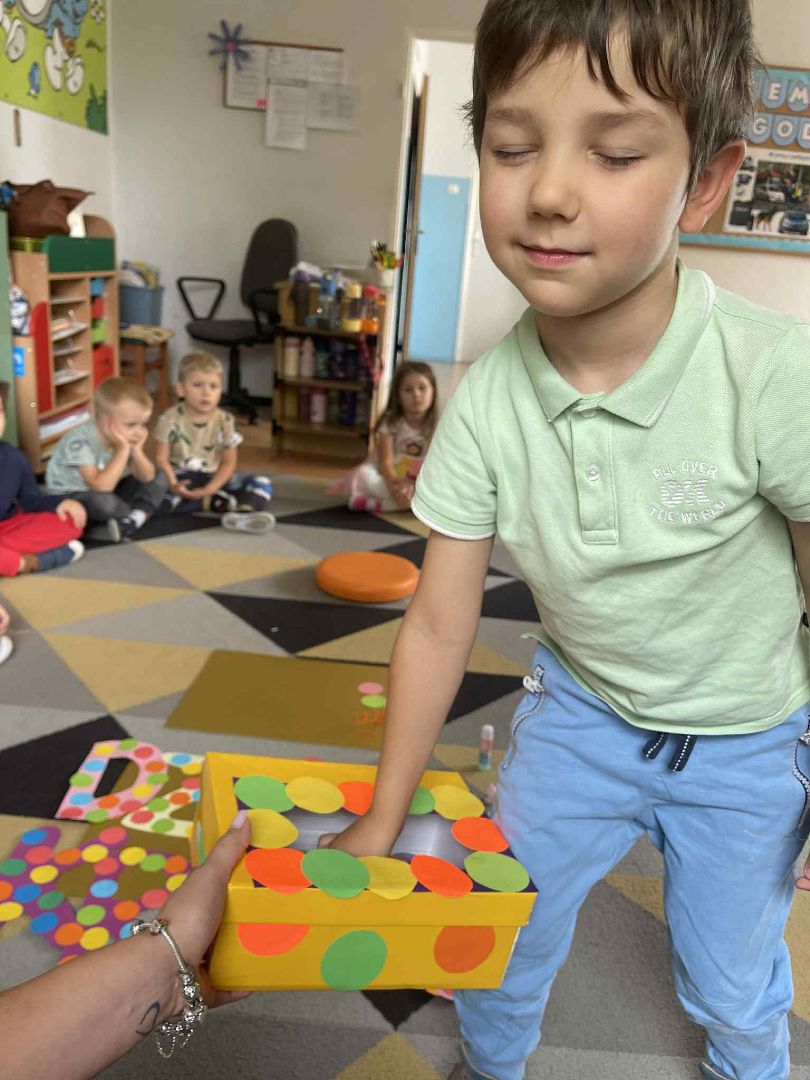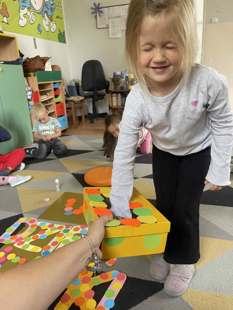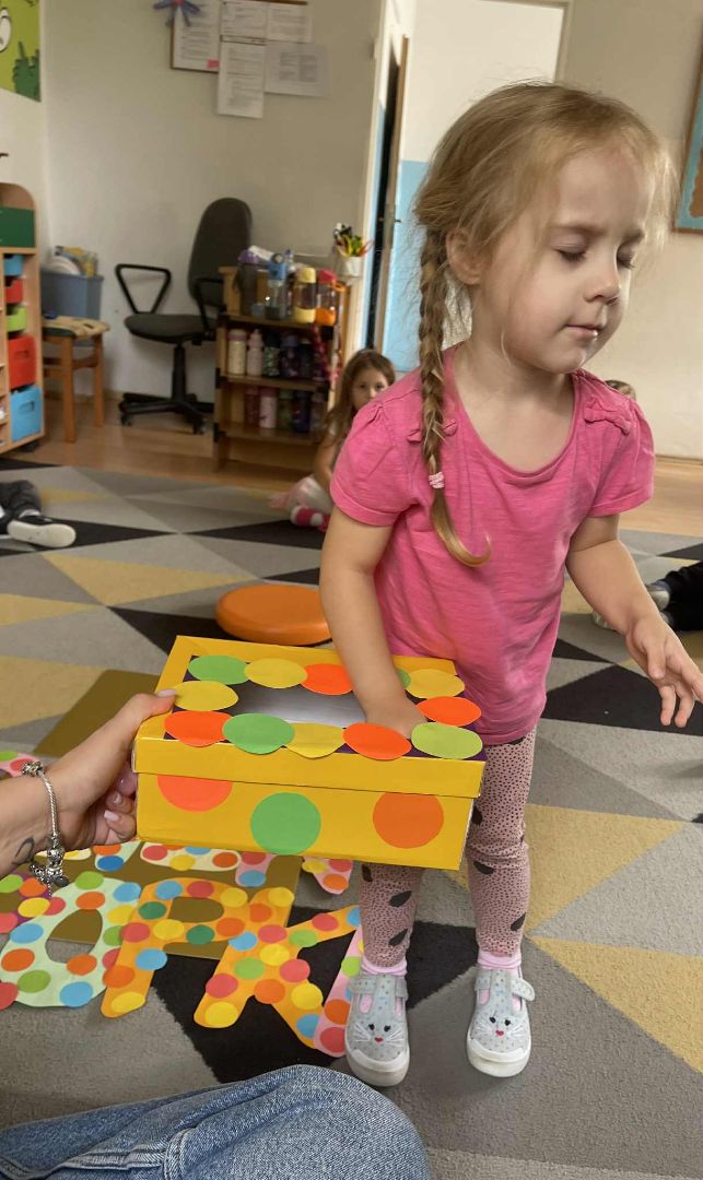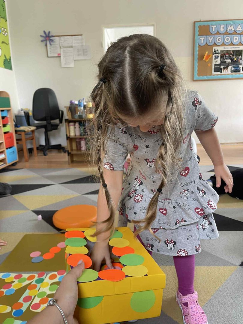 Dnia 15 września (poniedziałek) 2025 roku w naszej przedszkolnej grupie świętowaliśmy Międzynarodowy Dzień Kropki. Dzień rozpoczęliśmy od wysłuchania opowiadania pt. „Kropka” autorstwa Petera H. Reynoldsa. Na jego podstawie, układaliśmy plan wydarzeń, rozwijając przy tym mowę oraz umiejętność opowiadania. Bawiliśmy się przy piosence, a także braliśmy udział w zabawie rytmicznej do utworu pt. „Cuckoo Ritim”, rozwijając przy tym poczucie rytmu oraz koordynację ruchową oko – ręka. Na zakończenie, wykonaliśmy pracę plastyczną, malując pomponami zanurzonymi w farbie plakatowej. Każda kropka była wyjątkowa i niepowtarzalna.
