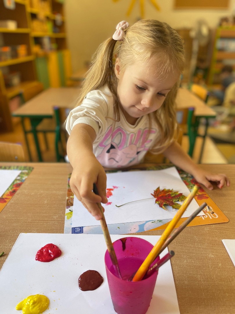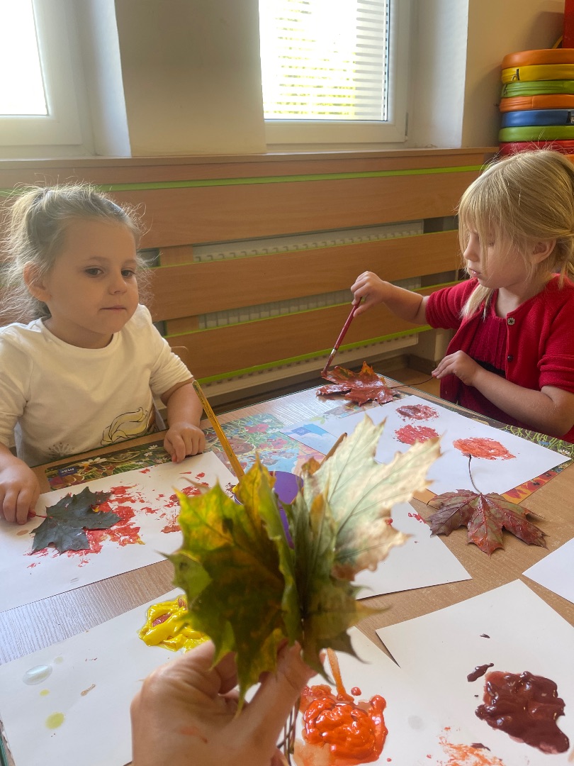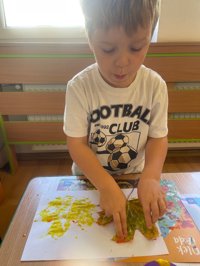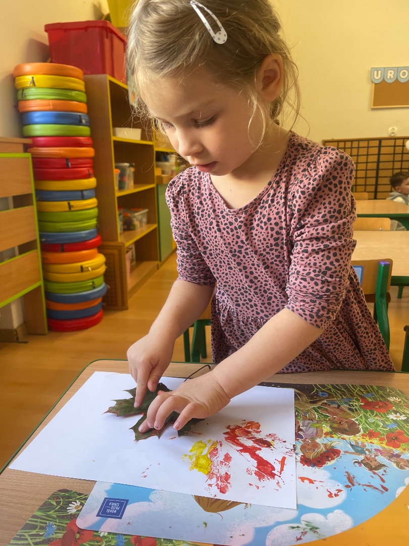 Indywidualna praca tw贸rcza wykonana technik膮 odbijania li艣ci pomalowanych farbami w barwach jesieni: 偶贸艂ci, pomara艅czy, czerwieni oraz br膮zu 馃帹 Prawdziwe, jesienne dzie艂a sztuki tworz膮 pi臋kn膮 dekoracj臋 na naszej grupowej tablicy 鈽猴笍