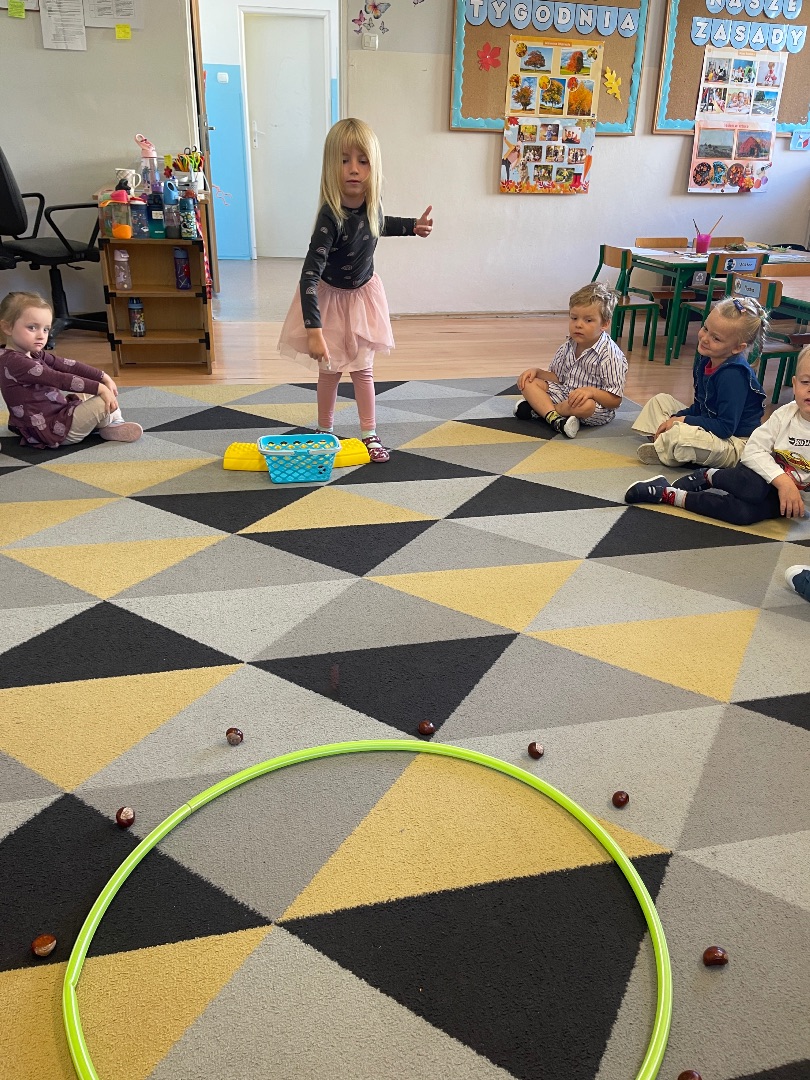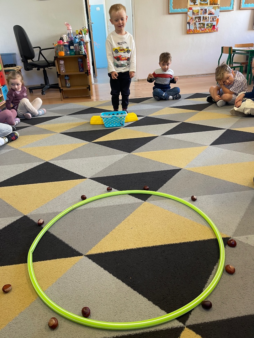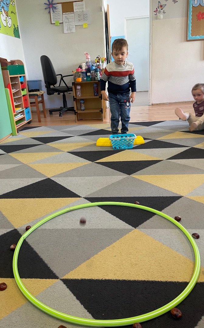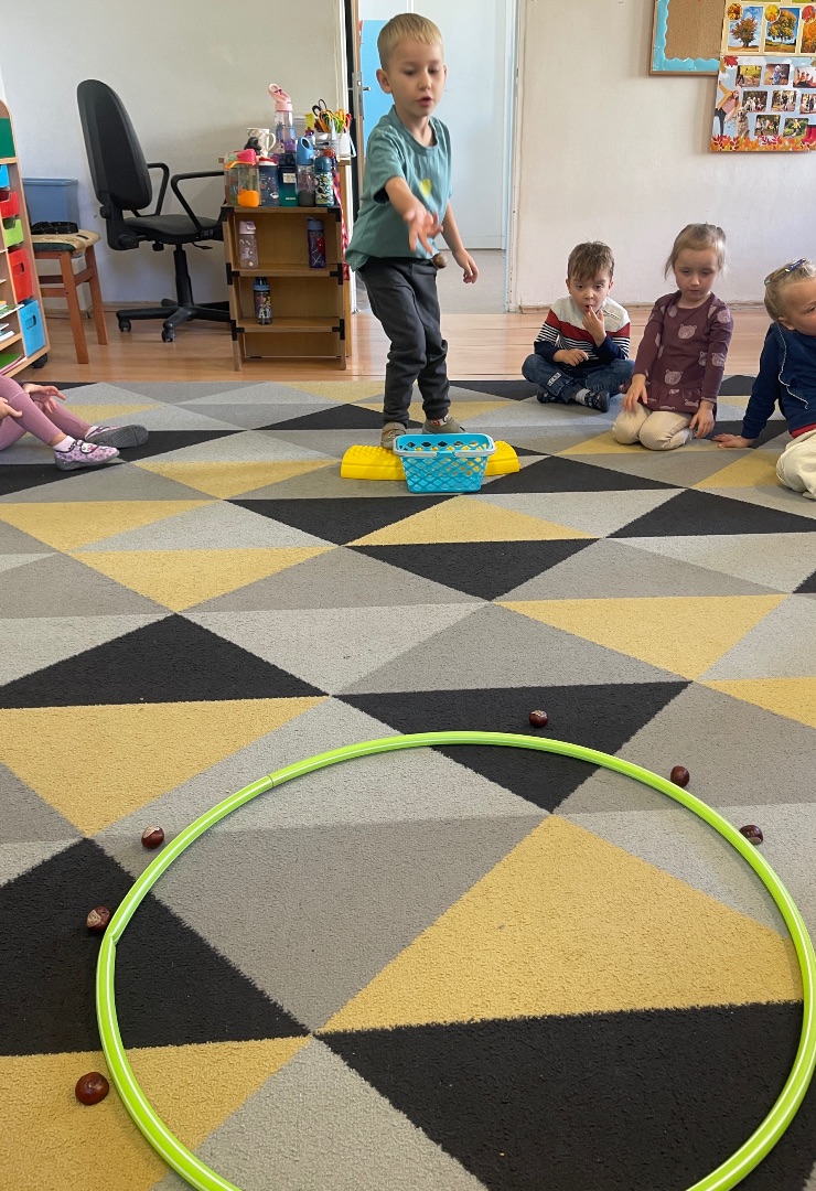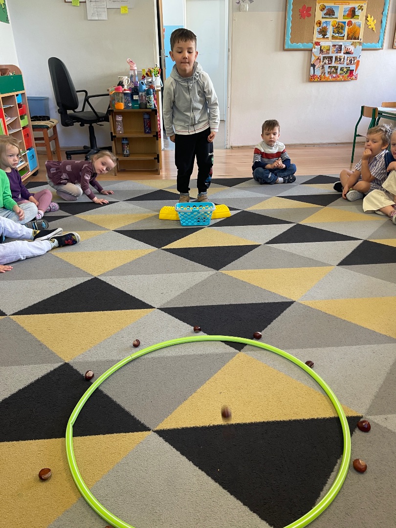 Nasze przedszkolaki świetnie bawiły się podczas jesiennej zabawy – rzucania kasztanami do celu! Dzieci ćwiczyły celność, koordynację ruchową i świetnie się przy tym bawiły. Każdy miał okazję rzucać kasztanami do wyznaczonego celu – były punkty, dużo śmiechu i oczywiście... jesienna atmosfera! 🍁To była nie tylko radosna zabawa, ale także okazja do rozwijania sprawności fizycznej i wspólnej integracji w grupie przedszkolnej ☺️