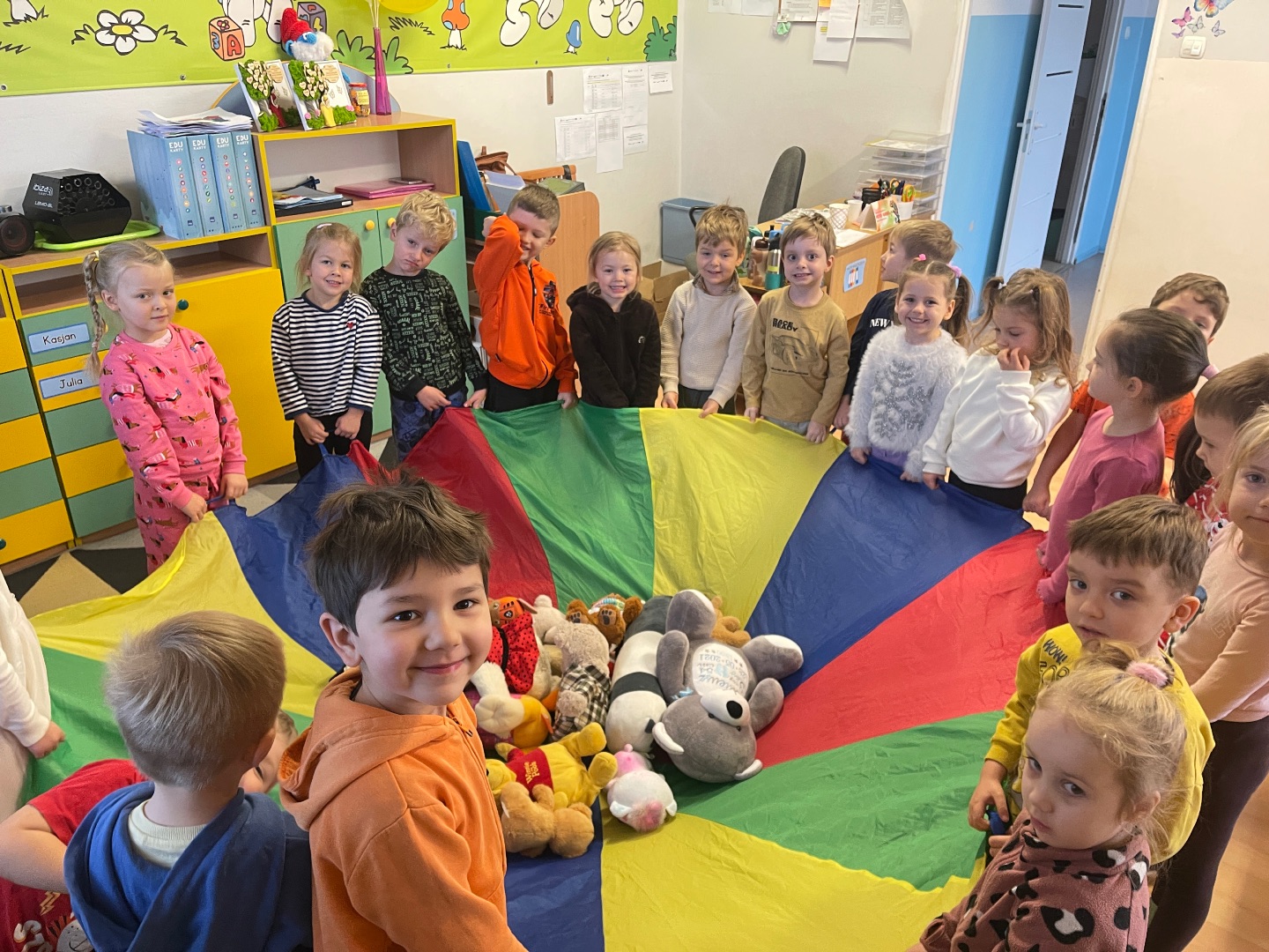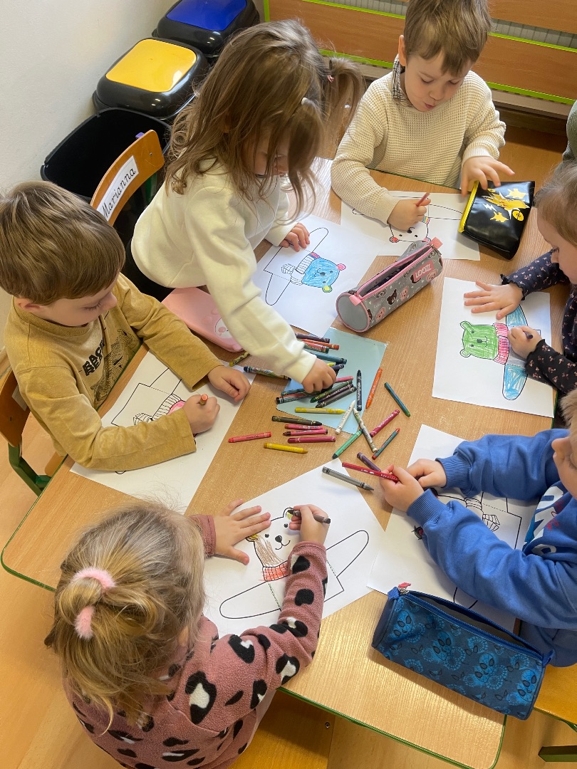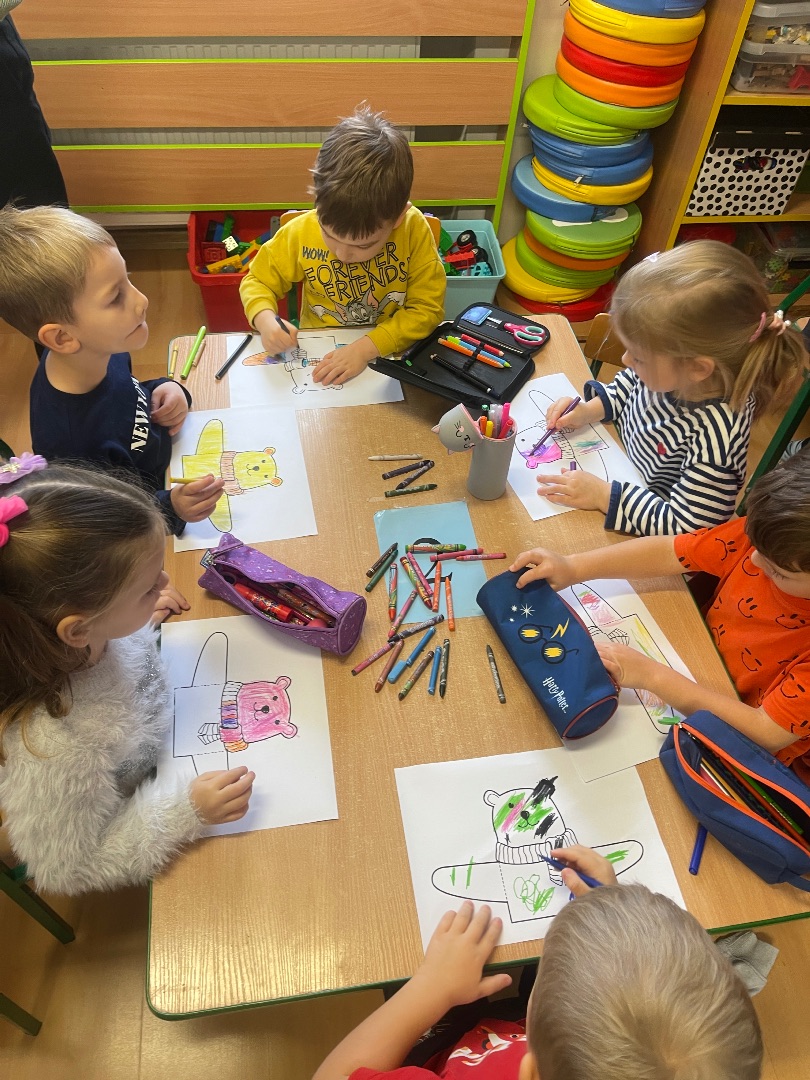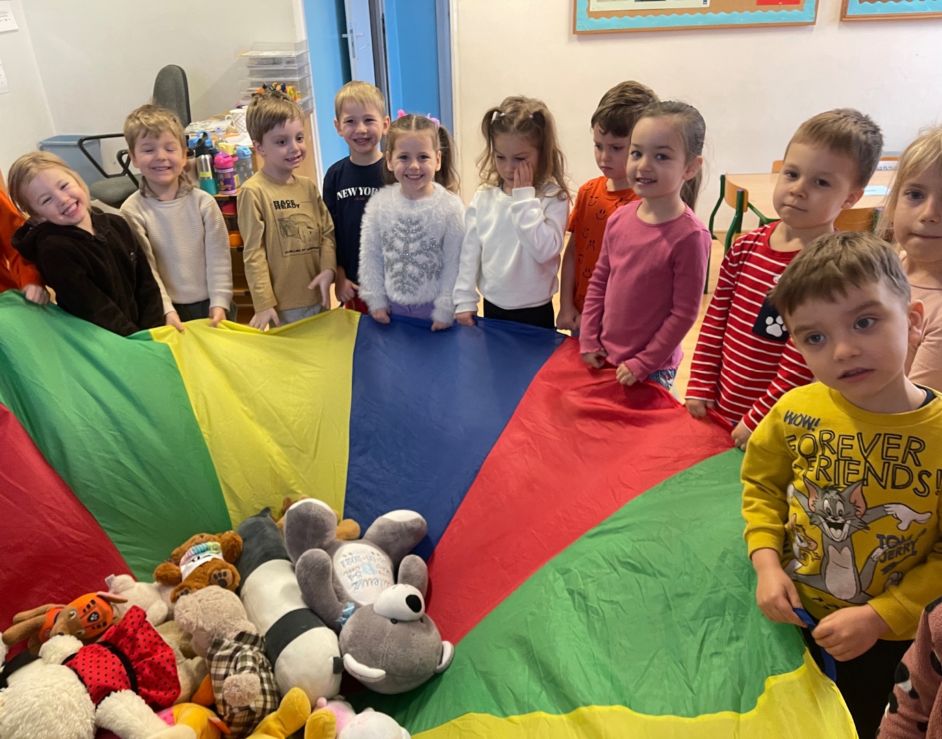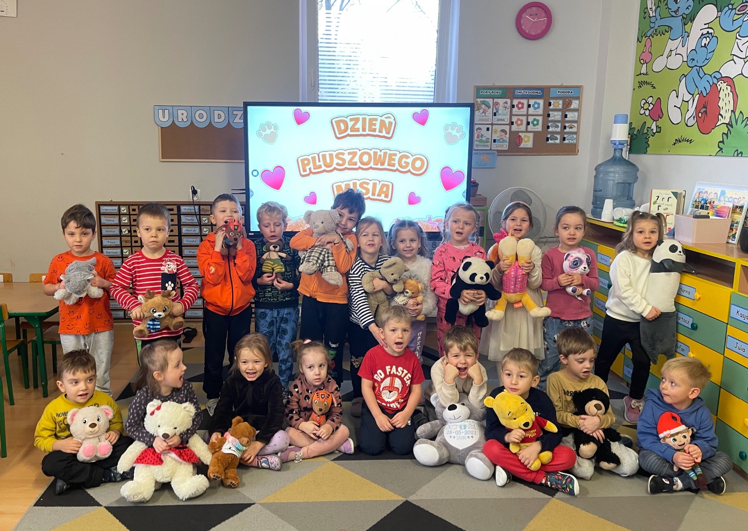 Wtorek, 25 listopada, był wyjątkowym dniem dla naszych przedszkolaków z grupy „Smerfy” – obchodziliśmy Dzień Pluszowego Misia, jedno z najbardziej ulubionych świąt wszystkich przedszkolaków! Na początku, przedszkolaki wysłuchały kilku ciekawostek i krótkiej historii o powstaniu tego wyjątkowego święta. Każdy mógł przedstawić swojego pluszowego przyjaciela – opowiedzieć, jak ma na imię, za co go lubi, w co jest ubrany, czy razem śpi oraz od kogo go otrzymał. Później, przedszkolaki bawiły się przy zabawach ruchowych z chustą animacyjną, oczywiście razem ze swoimi misiami, przy wesołej muzyce. Następnie, przedszkolaki samodzielnie tworzyły gazetowego misia techniką wydzieranki – każdy miś był wyjątkowy i niepowtarzalny. Tego dnia, nie zabrakło także tańców przy piosence pt. „Dwa malutkie misie”, przytulania swoich ulubionych pluszaków oraz wykonywania razem z studentkami małego misia z serduszkiem, który będzie pamiątką tego wyjątkowego dnia. Na zakończenie, przedszkolaki obejrzały bajkowy seans z Kubusiem Puchatkiem w przedszkolnym kinie. To był dzień pełen radości, przytulania i kreatywnej zabawy, który na długo pozostanie w pamięci naszych „Smerfów”!