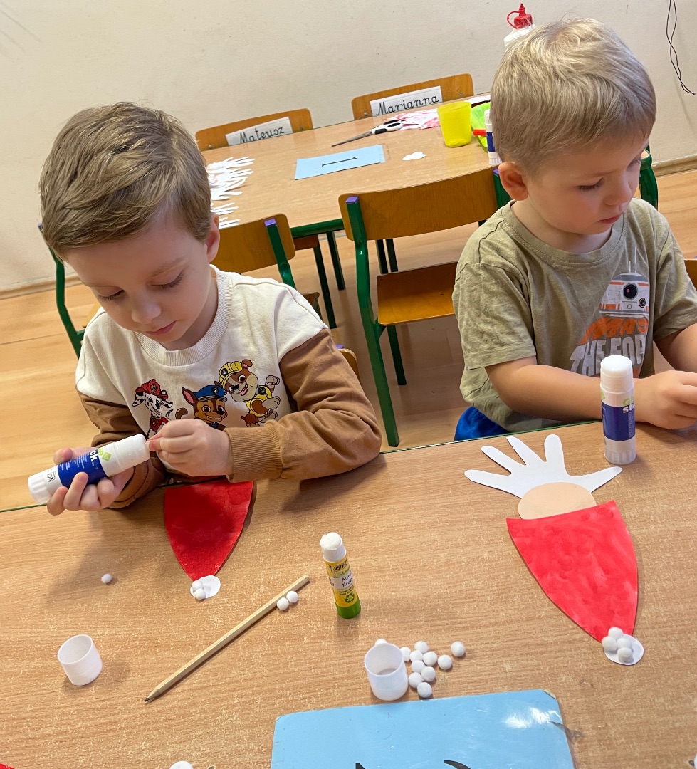 W środę, 3 grudnia, nasze przedszkolaki wykonały twórczą prace plastyczną przedstawiającą postać Świętego Mikołaja, wykorzystując przy tym różne techniki plastyczne. Jak widać, przy tym wspaniale się bawiły!