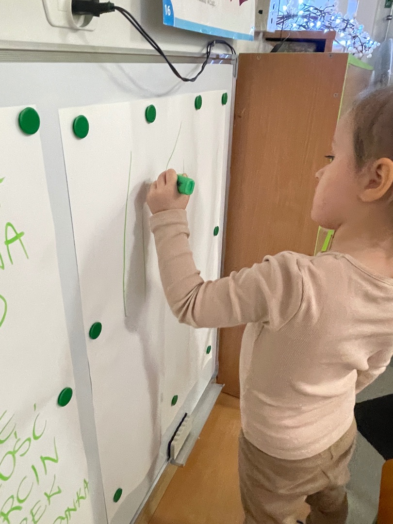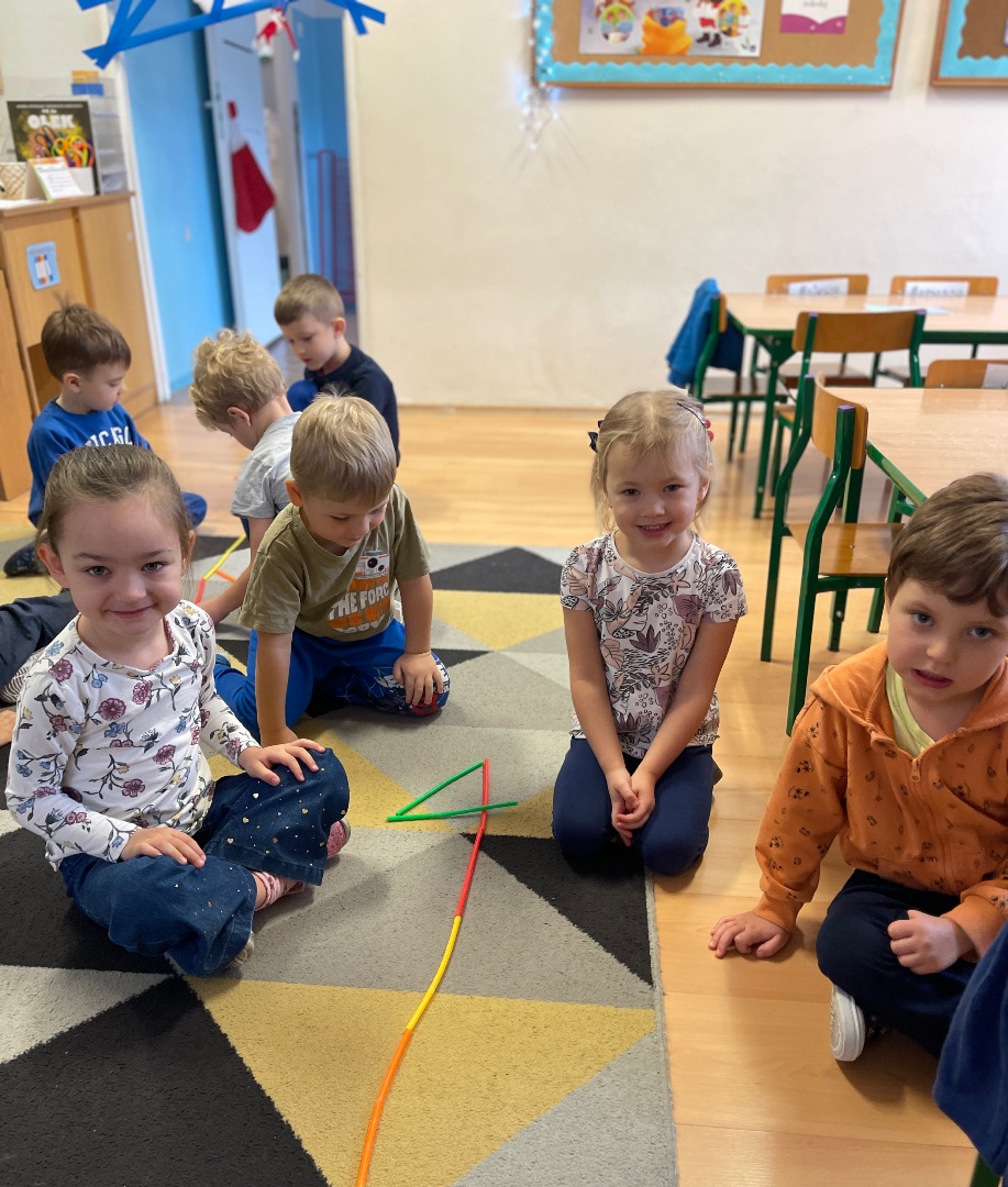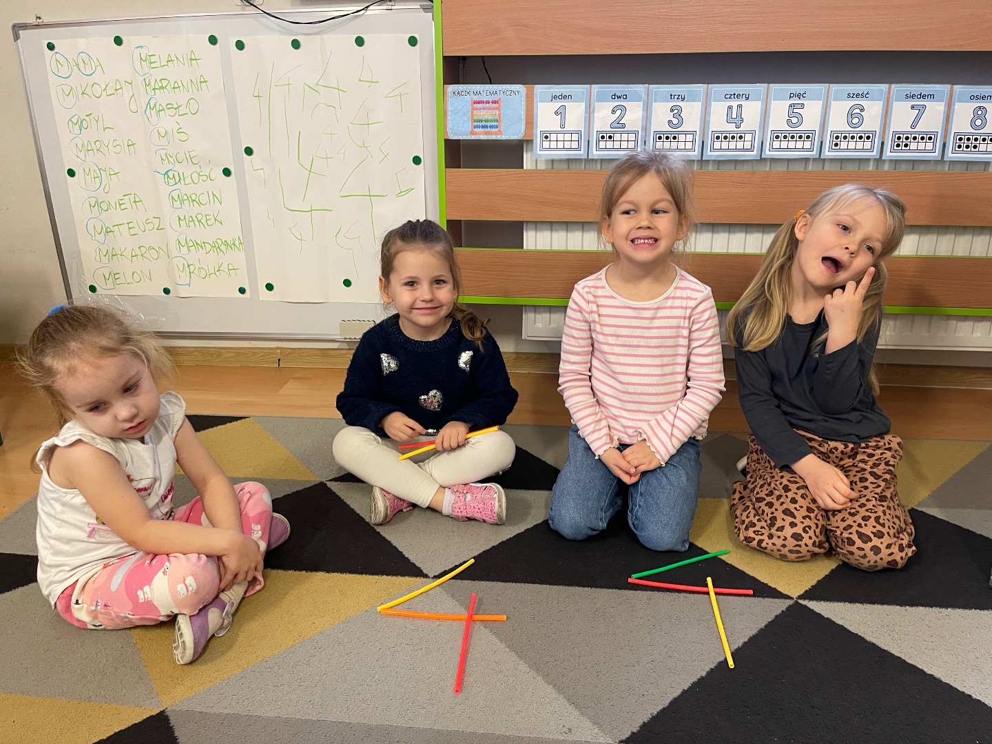 Dziś, podczas zabawy matematycznej, nasze przedszkolaki poznały cyfrę 4. Przedszkolaki poznały wygląd cyfry 4 i ćwiczyły jej zapis mazakiem na tablicy magnetycznej. Największą atrakcją było jednak, układanie cyfry 4 z słomek konstrukcyjnych, przy czym nasze przedszkolaki poradziły sobie świetnie!