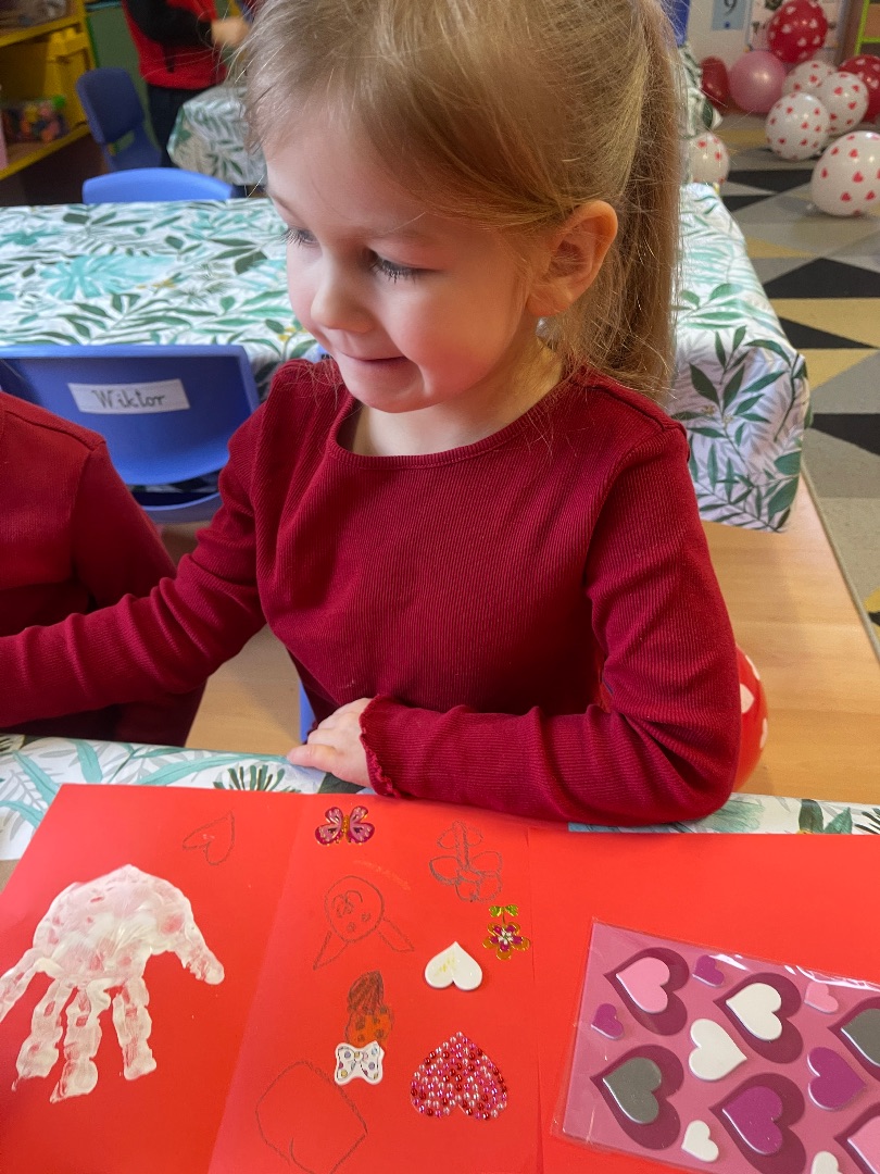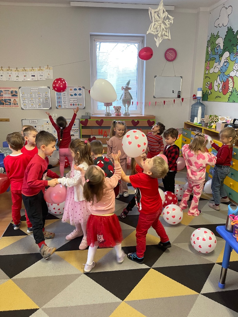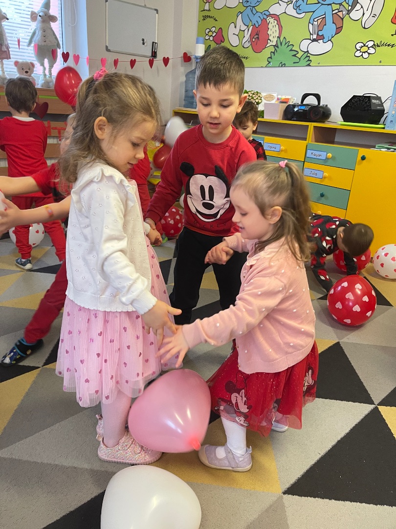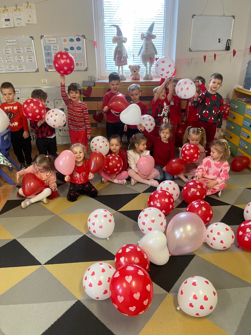 Dnia 13 lutego (piątek) w naszej przedszkolnej grupie odbyły się Walentynki. Tego dnia dzieci uczestniczyły w zabawach ruchowych, zabawach integracyjnych, zabawach tanecznych oraz w zajęciach plastycznych, podczas których samodzielnie wykonywały walentynki