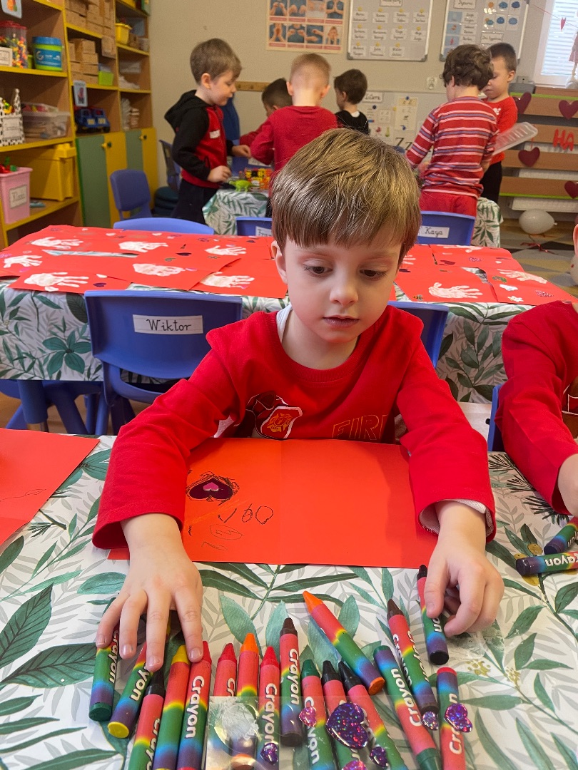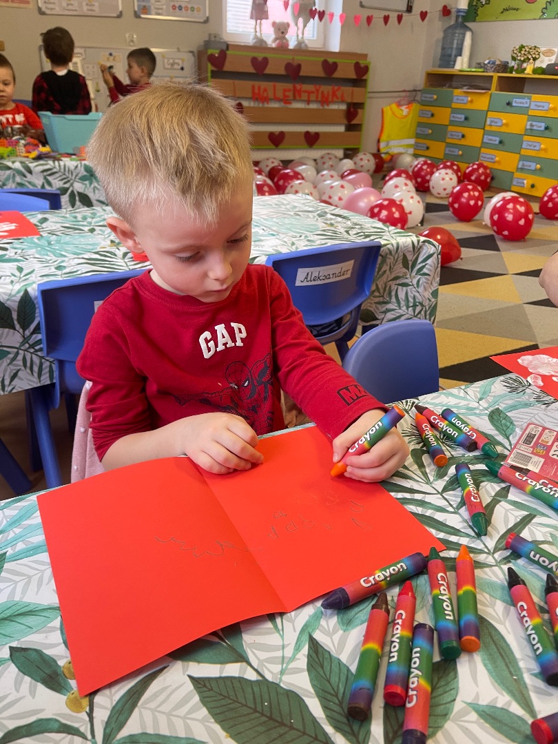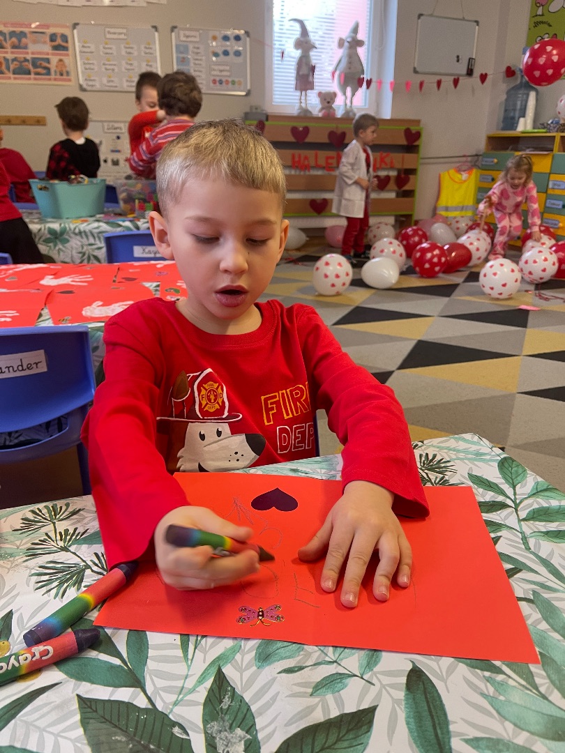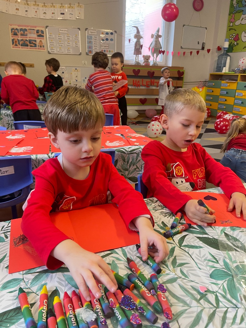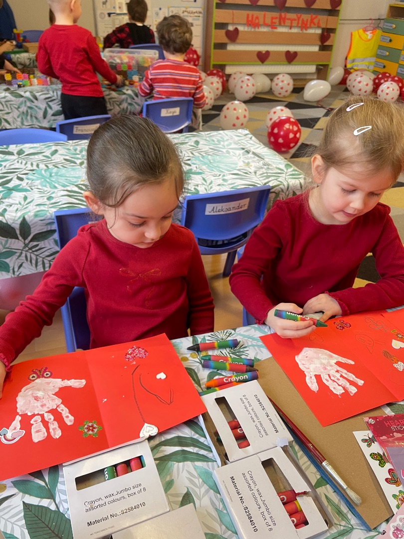 Dnia 13 lutego (piątek) w naszej przedszkolnej grupie odbyły się Walentynki. Tego dnia dzieci uczestniczyły w zabawach ruchowych, zabawach integracyjnych, zabawach tanecznych oraz w zajęciach plastycznych, podczas których samodzielnie wykonywały walentynki