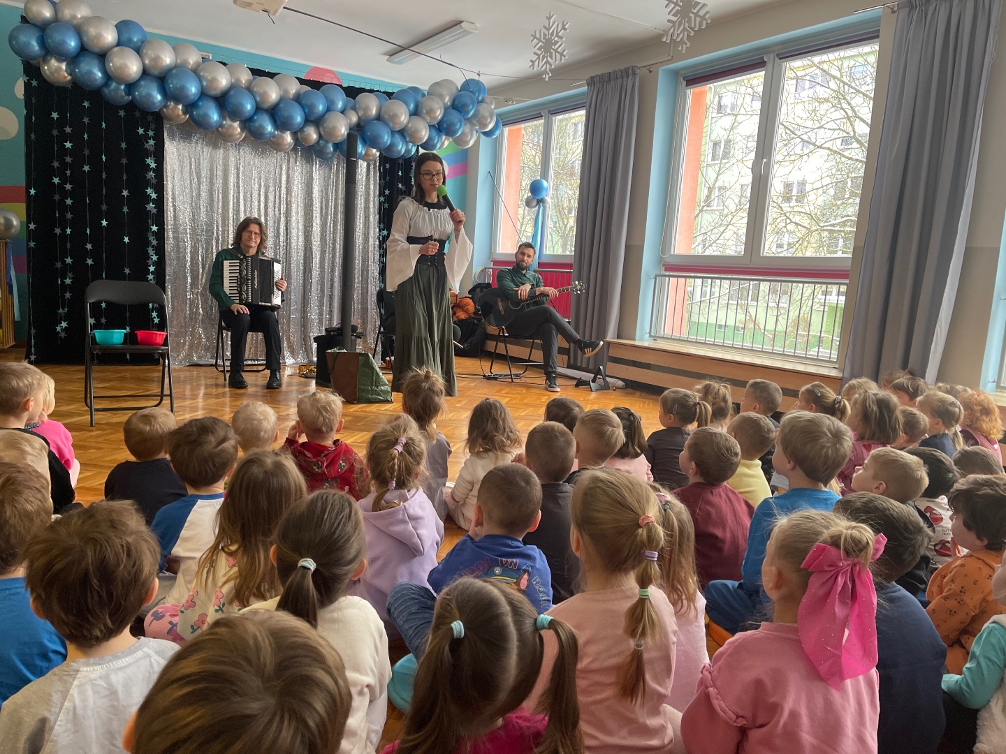 Dnia 5 marca (czwartek) w naszym przedszkolu odbyło się spotkanie z siatkarzami Białostockiej Akademii Siatkówki BAS Białystok. Spotkanie rozpoczęło się powitaniem siatkarzy przez Panią Dyrektor. Następnie, zawodnicy przedstawili się dzieciom i krótko omówili swoje osiągnięcia sportowe. Podczas spotkania dzieci poznały najważniejsze zasady gry w siatkówkę. Siatkarze zaprezentowali techniki odbijania piłki, a następnie przeprowadzili krótką rozgrzewkę, w której aktywnie uczestniczyły wszystkie dzieci. Następnie, wybrane dzieci miały okazję wykonać podstawowe ćwiczenia odbijania piłki pod czujnym okiem siatkarzy. Występ przedszkolnego chóru „Karmelek” pod kierunkiem Pani Ewy Sz. był wyjątkowym momentem spotkania – dzieci podziękowały siatkarzom piosenką pt. „We Are the Champions”. Na zakończenie wszystkie grupy przedszkolne wykonały pamiątkowe zdjęcia z siatkarzami, aby uwiecznić to niezwykłe spotkanie.