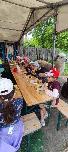 Po intensywnych zabawach na świeżym powietrzu nadszedł czas na posiłek – przygotowane przez panie kucharki kiełbaski zniknęły z talerzy bardzo szybko, co było najlepszym dowodem na to, jak bardzo przedszkolaki doceniły ten smaczny obiad.
